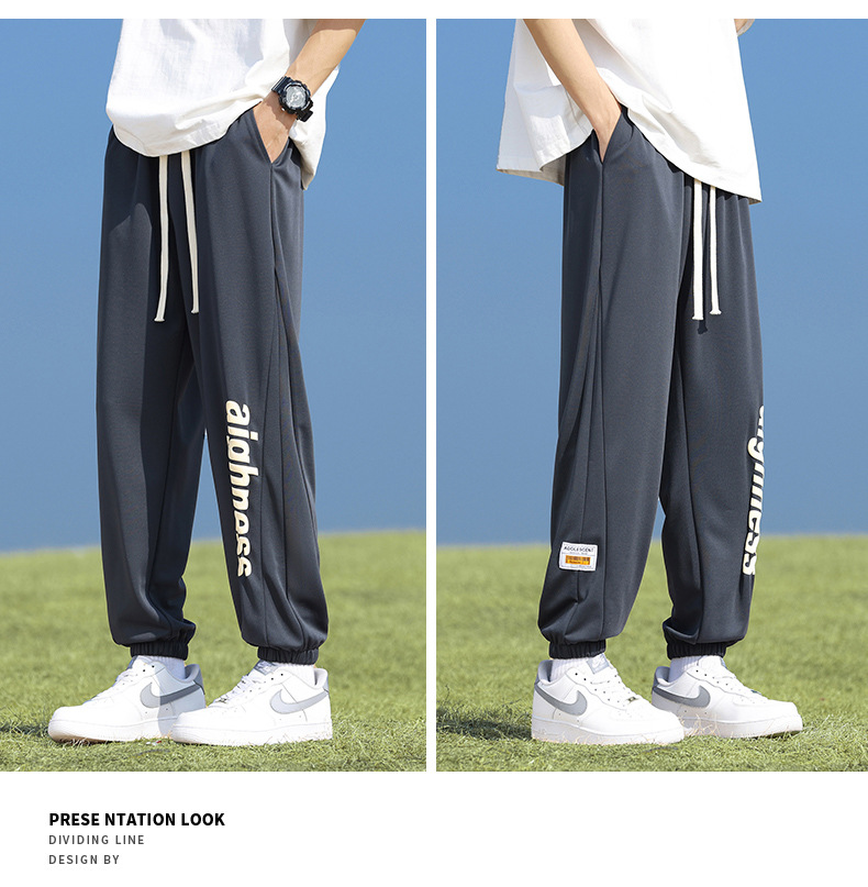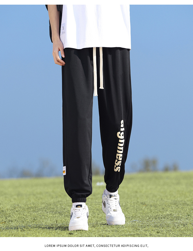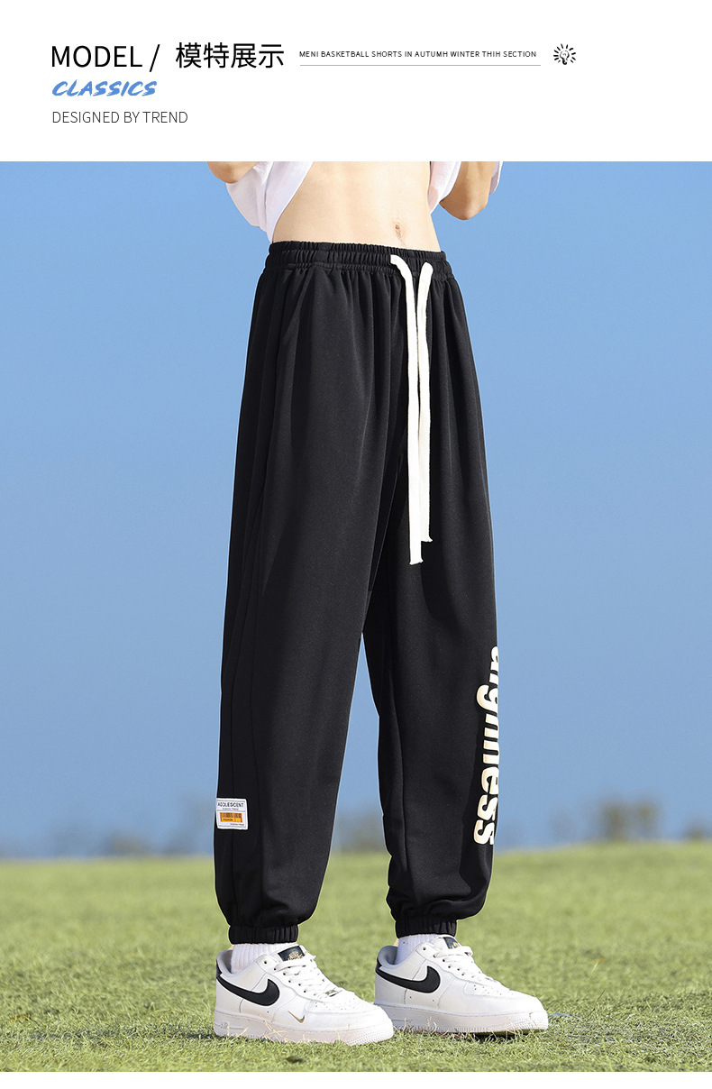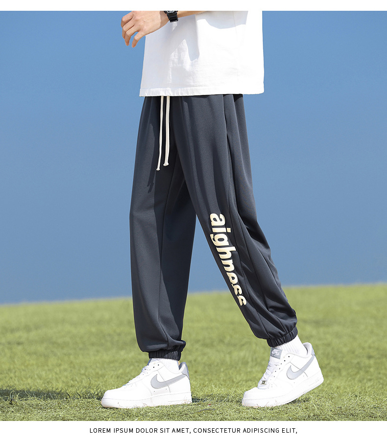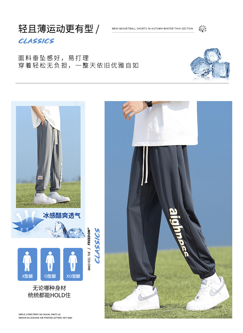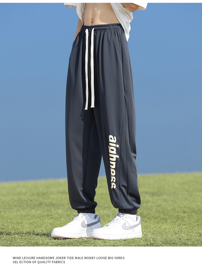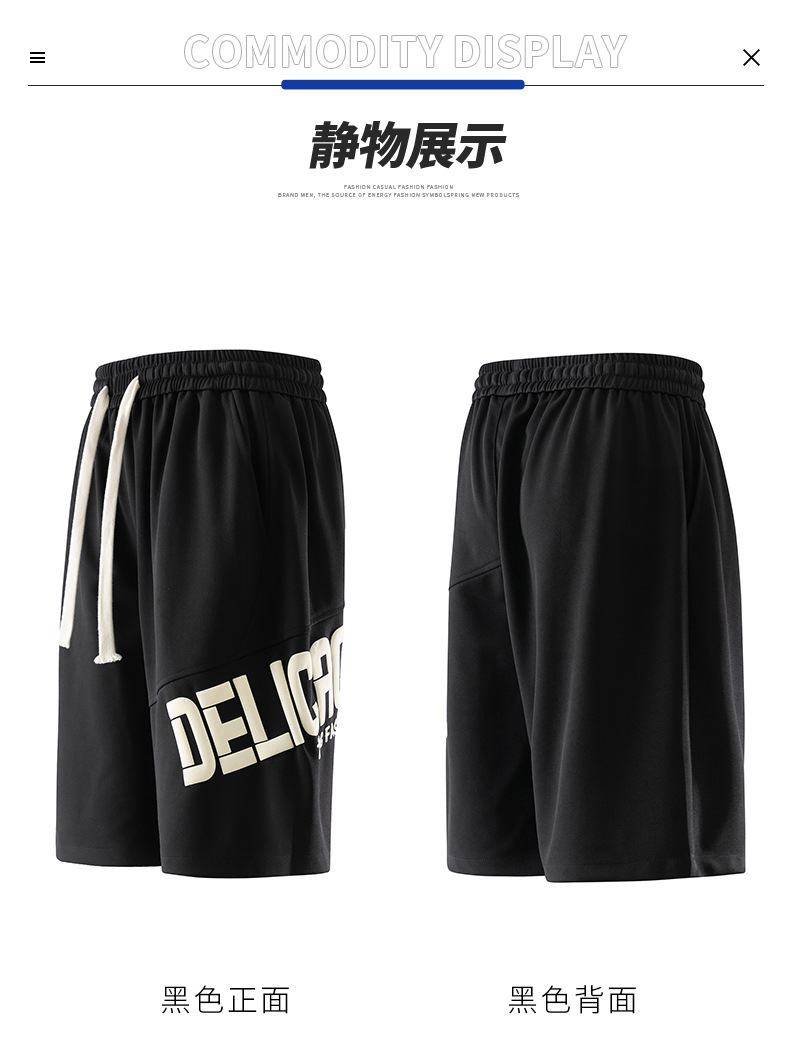 Pantalones cortos deportivos de hielo negro para hombres verano 2024 nueva marca de moda americana suelta rápida secado recto pantalones casuales de cinco puntos
