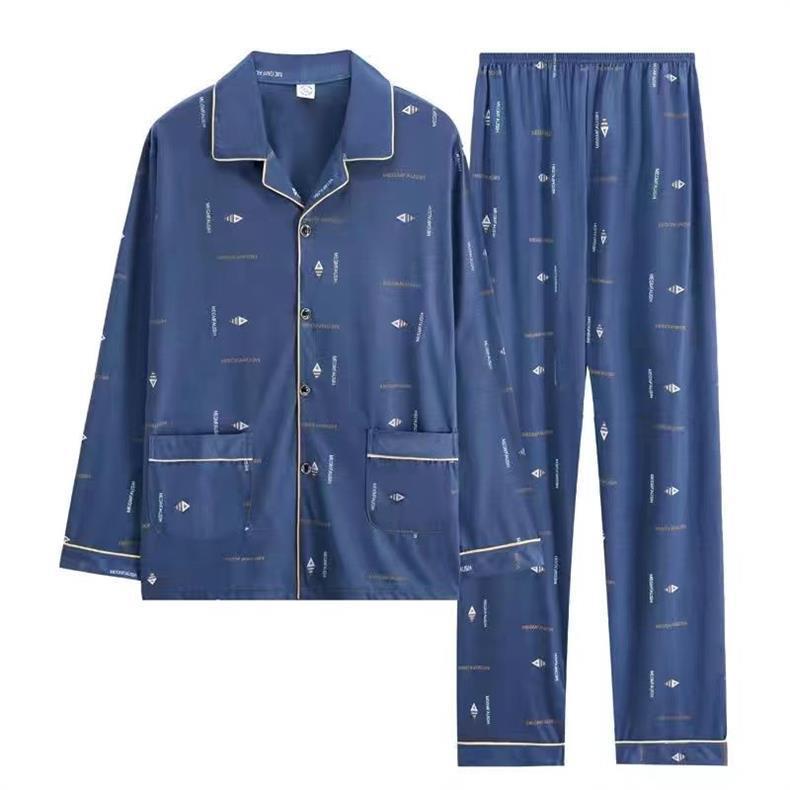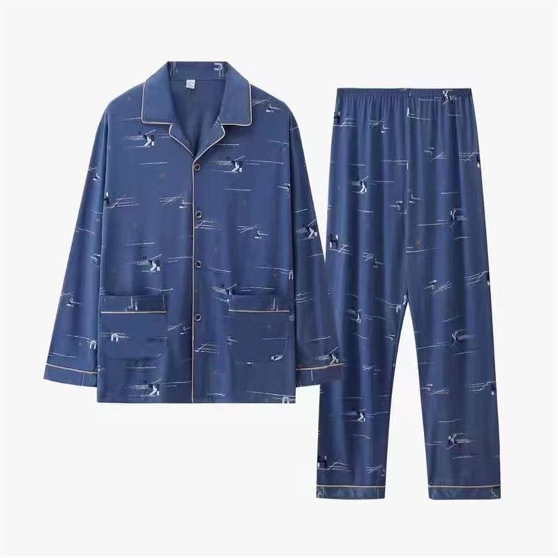 Pijama de hombre primavera y otoño algodón pantalones de manga larga cardigan de verano delgado de mediana edad, edad avanzada, ropa para el hogar de cuatro estaciones