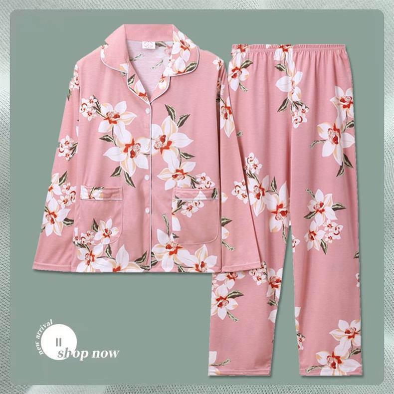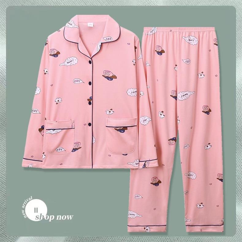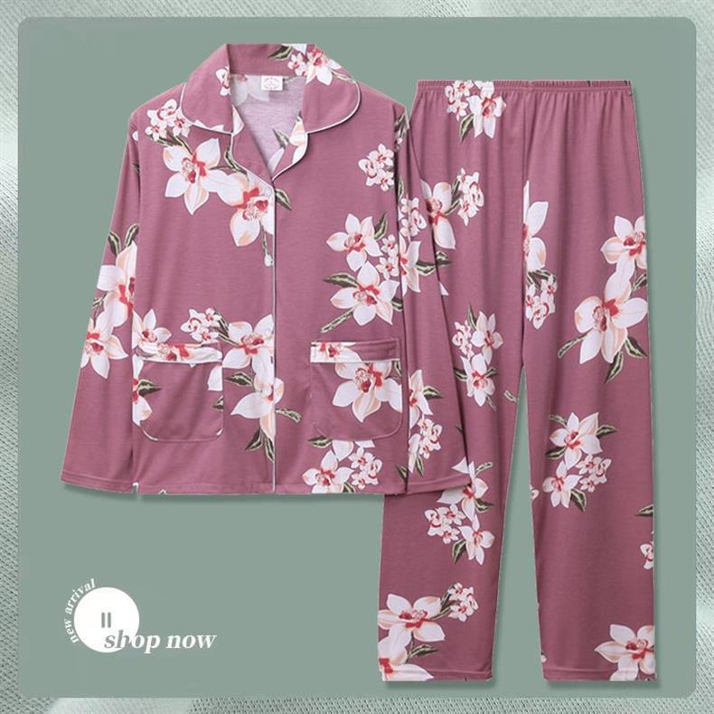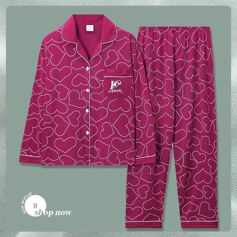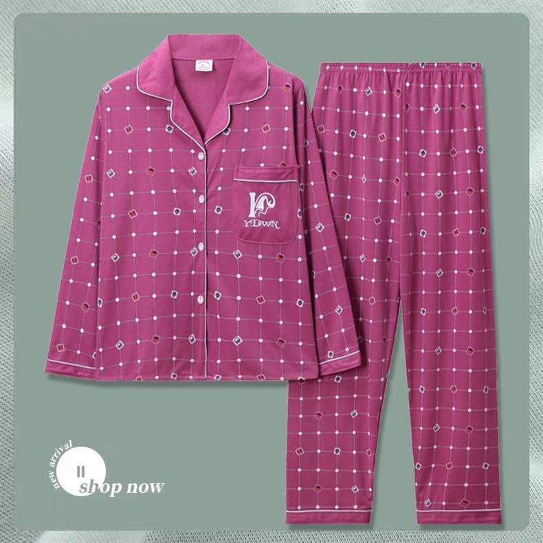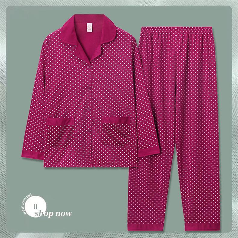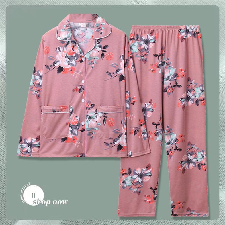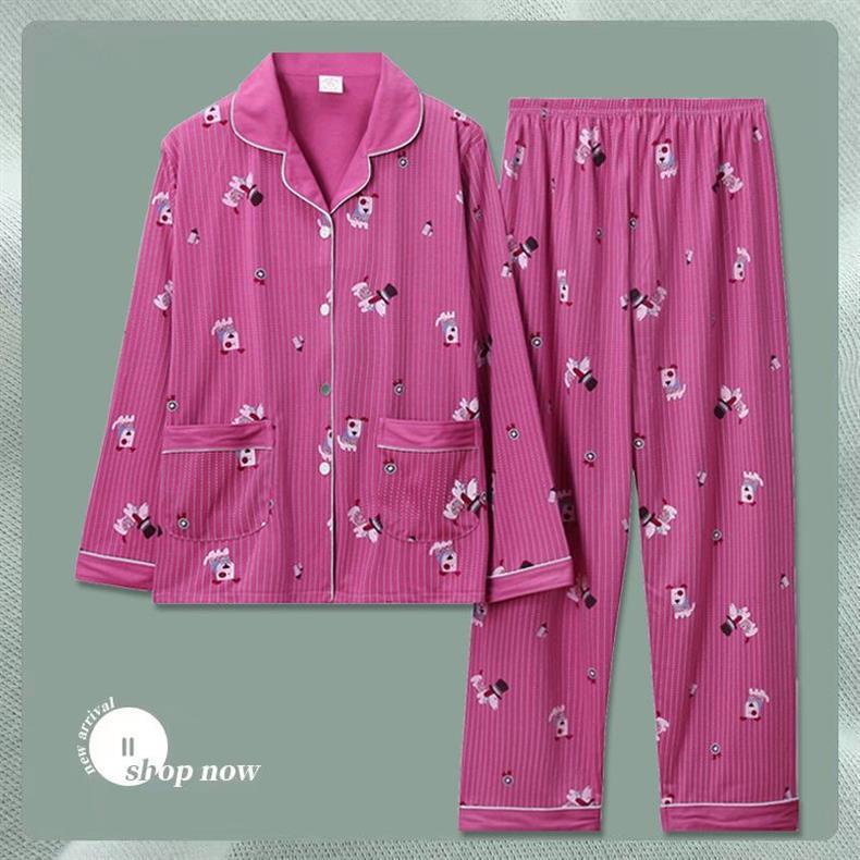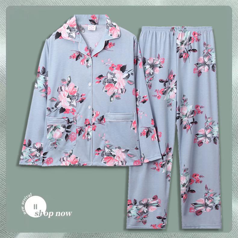 Pijama de dama algodón primavera y otoño ropa de hogar de manga larga madres de mediana edad delgada cardigan se puede usar dos conjuntos