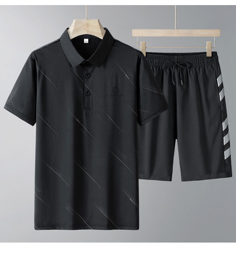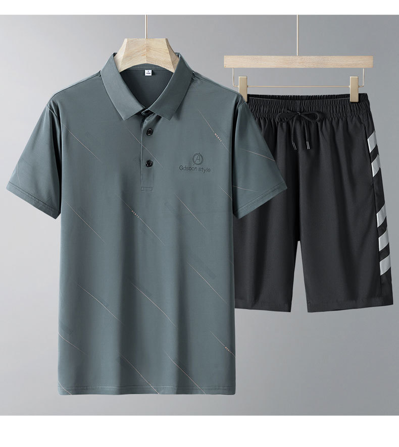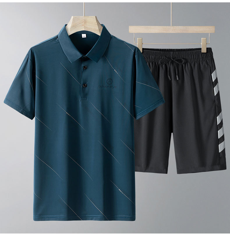 Verano nuevo juego deportivo casual de mediana edad hielo polo camiseta hombre mangas cortas hielo pantalones cortos dos piezas al por mayor