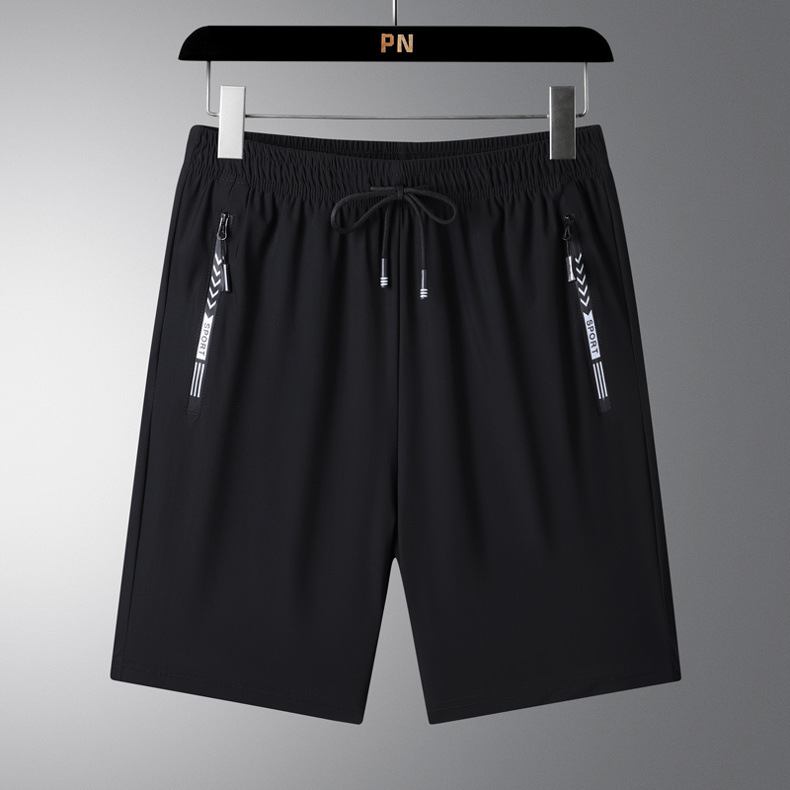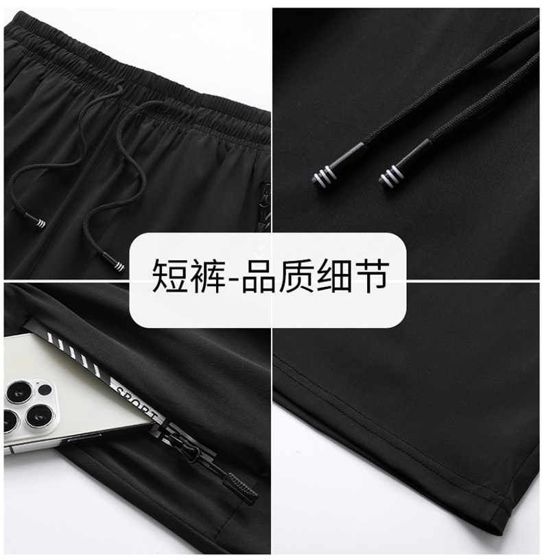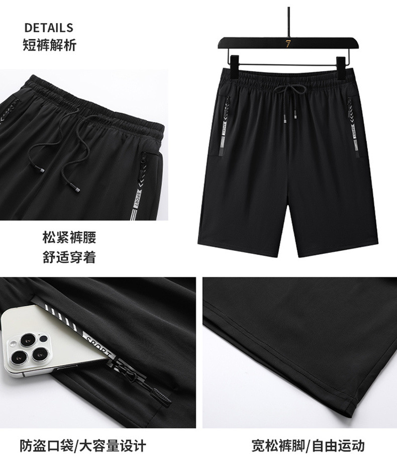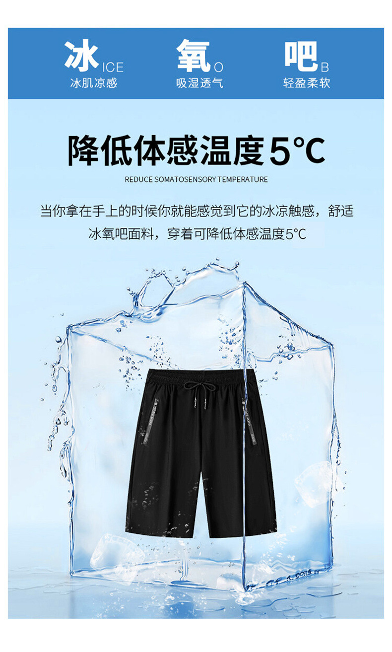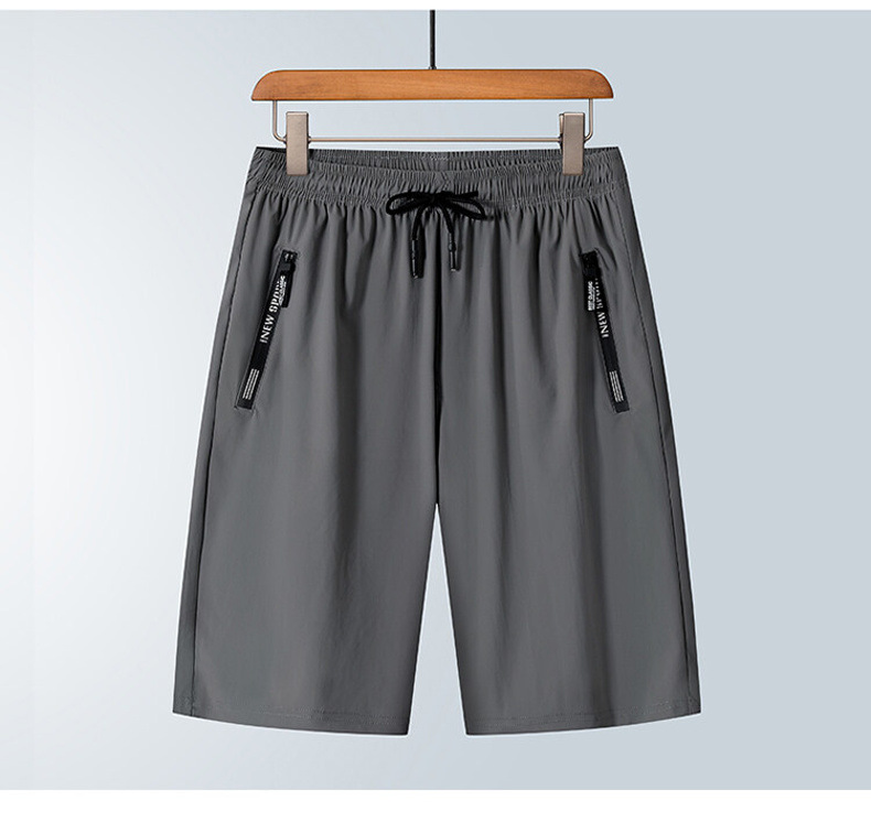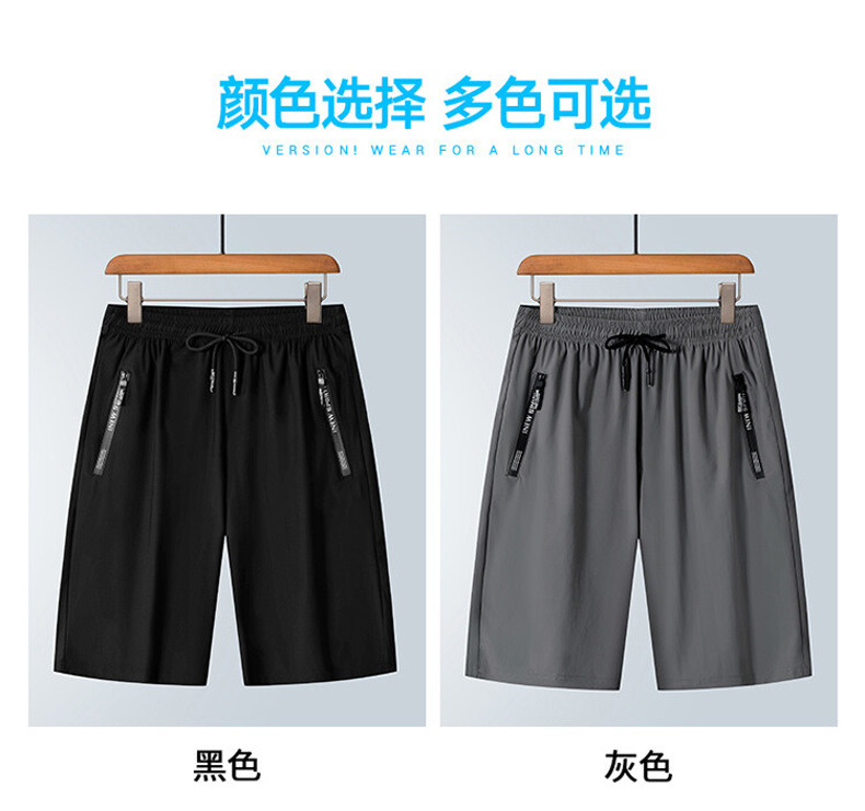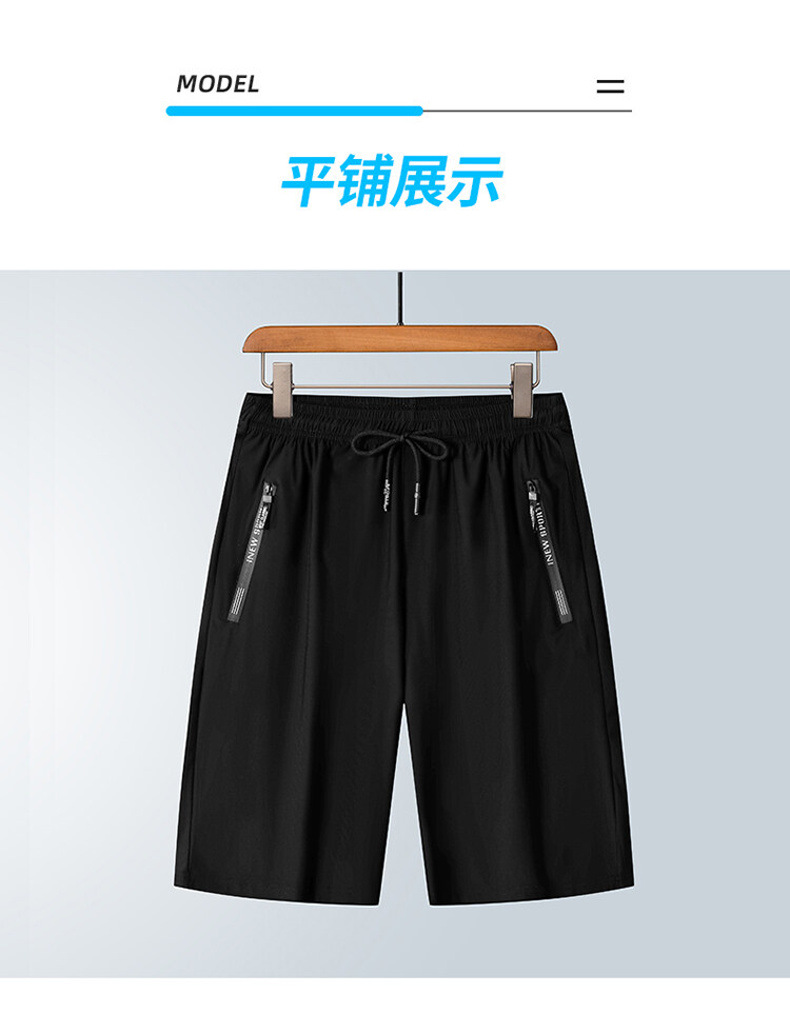 Pantalones cortos de hielo delgados de verano para hombres, bolsas de cremallera, cinturón elástico, correa, pantalones de hielo secos rápidos de tamaño grande para hombres