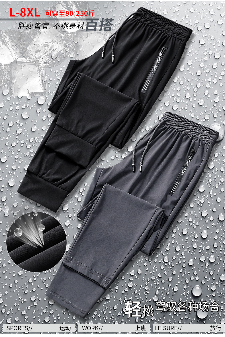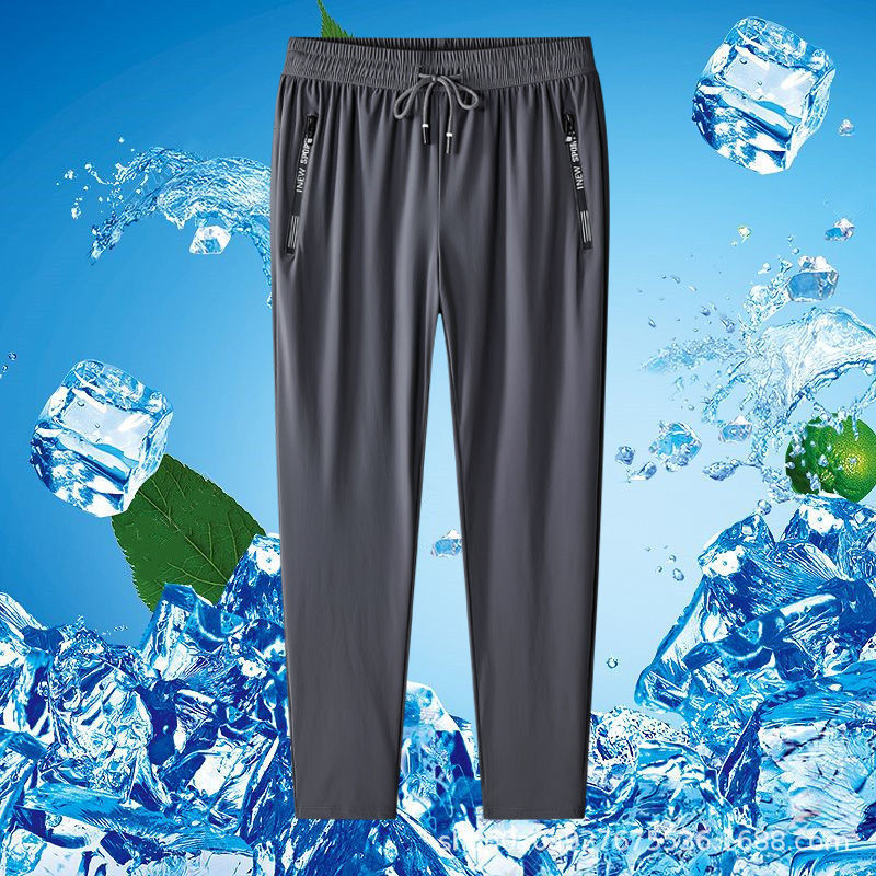 Pantalones de hielo para hombres de verano delgados elásticos transpirables rápidos secos rectos sueltos grandes pantalones de corredor al por mayor