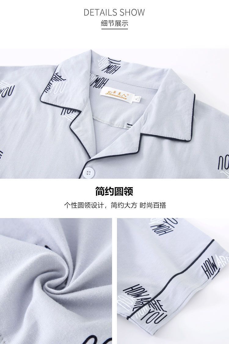 Pijamas de hombre de manga corta pantalones de algodón de tres piezas juveniles de verano para aumentar el conjunto delgado de ropa de hogar de hombre