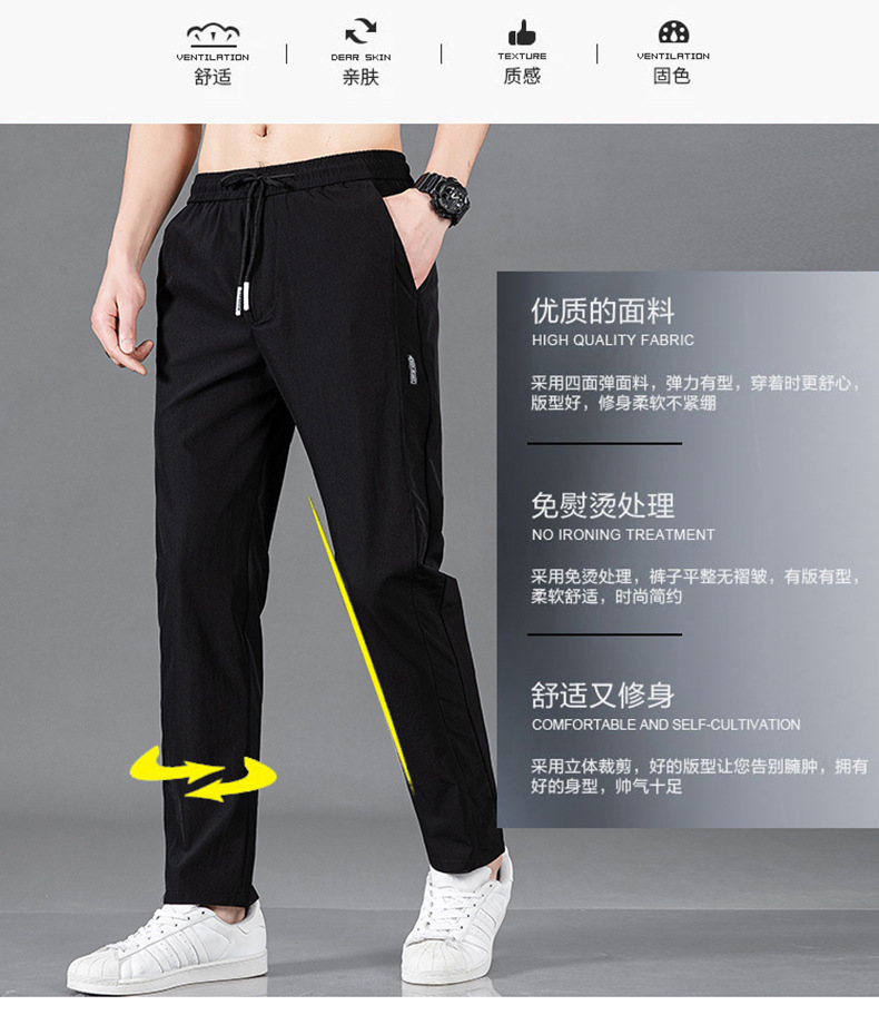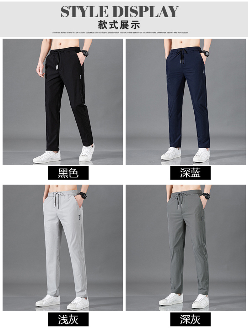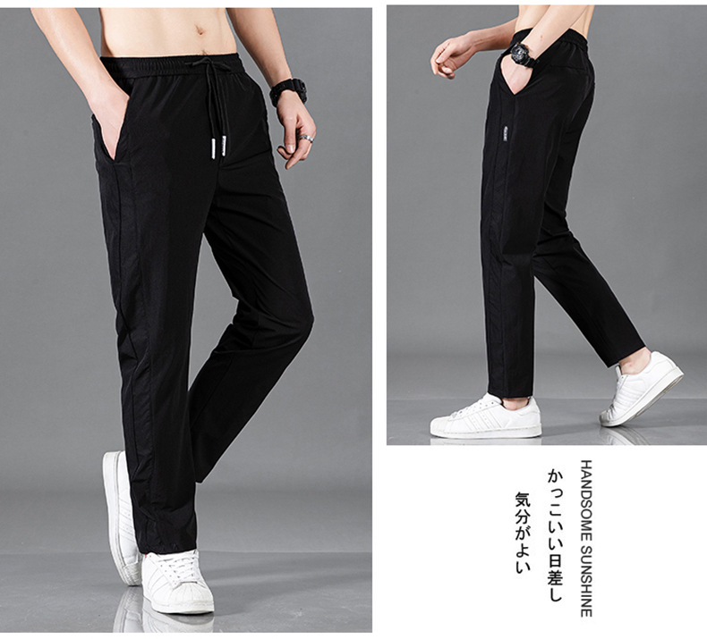 Pantalones largos delgados de verano para hombres tendencia universal de hielo rápido secado deportivo relajado grande pantalones casuales al por mayor
