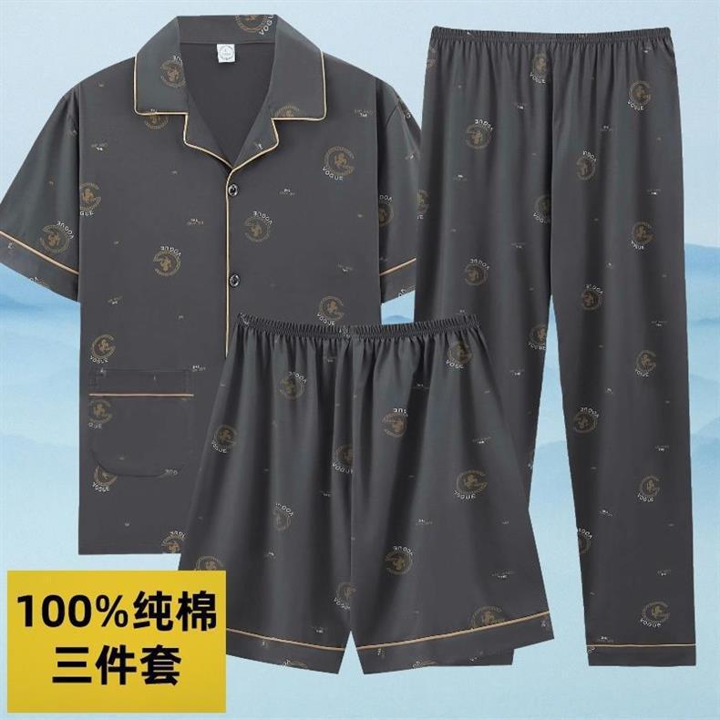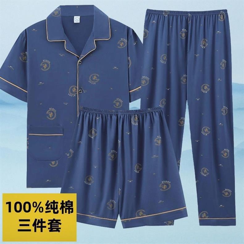 Nuevo algodón de tres piezas para hombres pijamas de verano de manga larga para hombres simple de tamaño grande conjunto de ropa de mediana edad