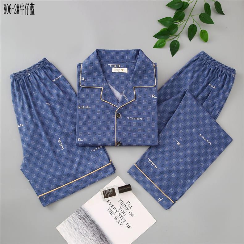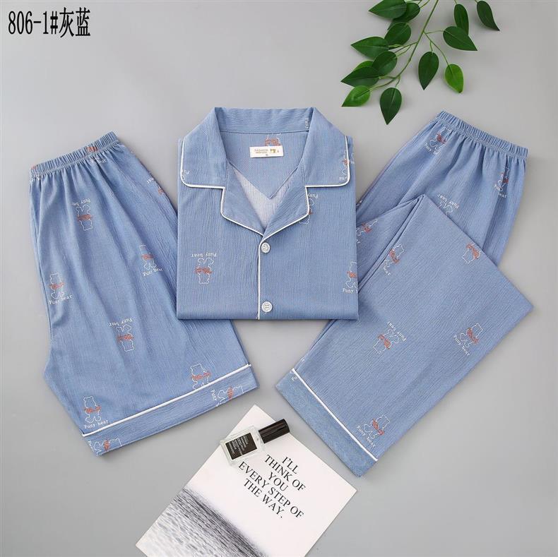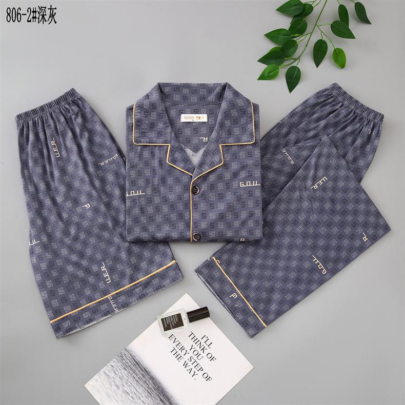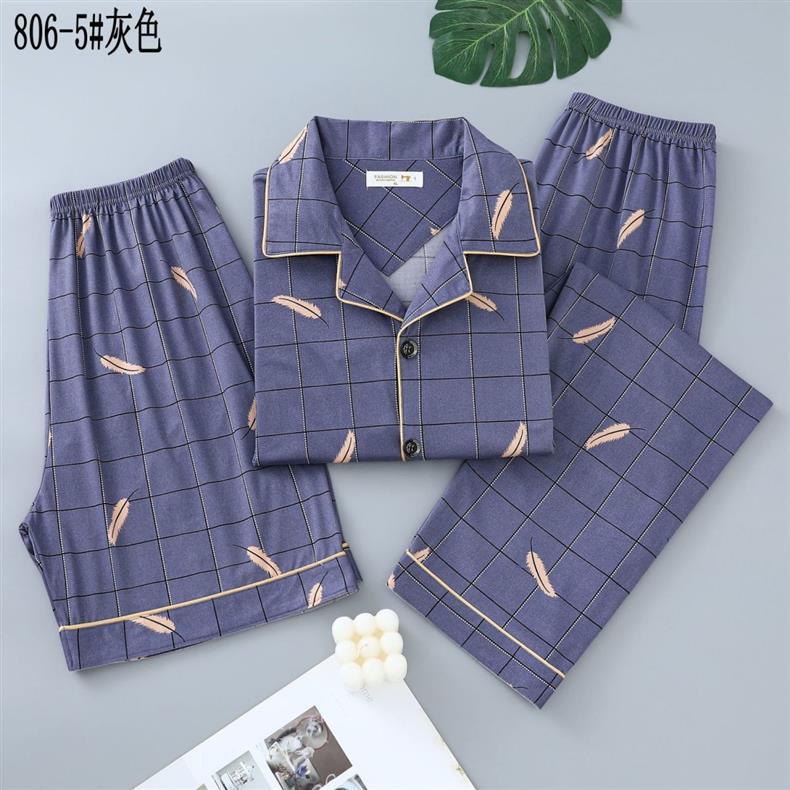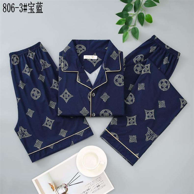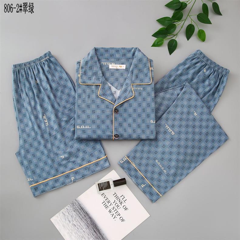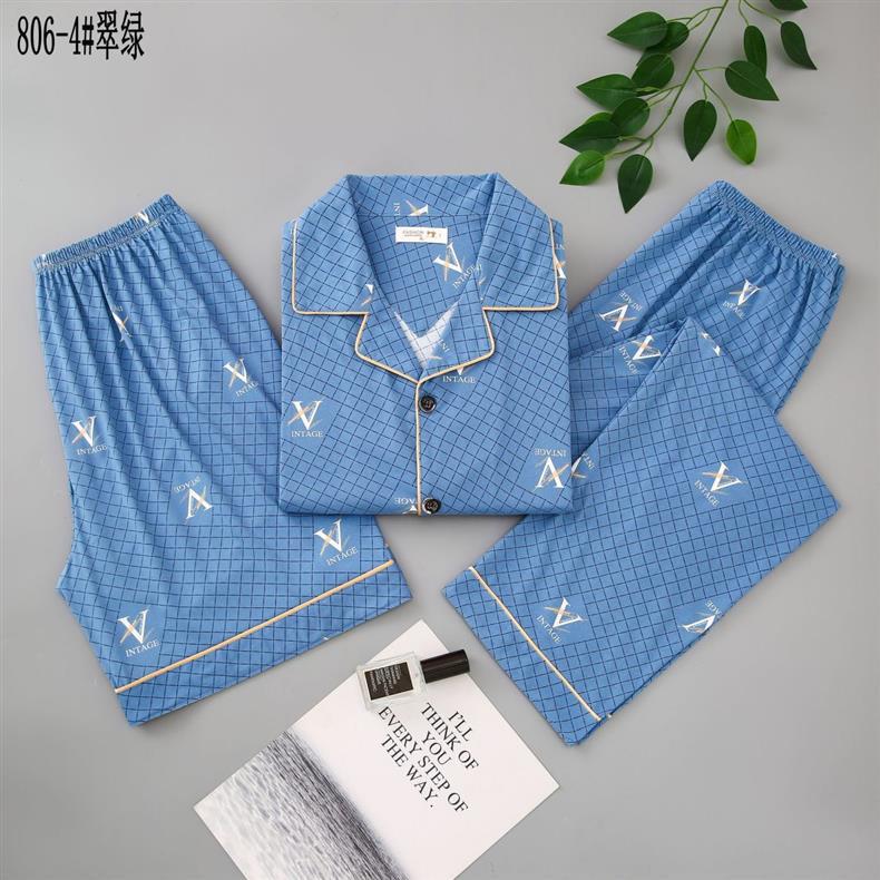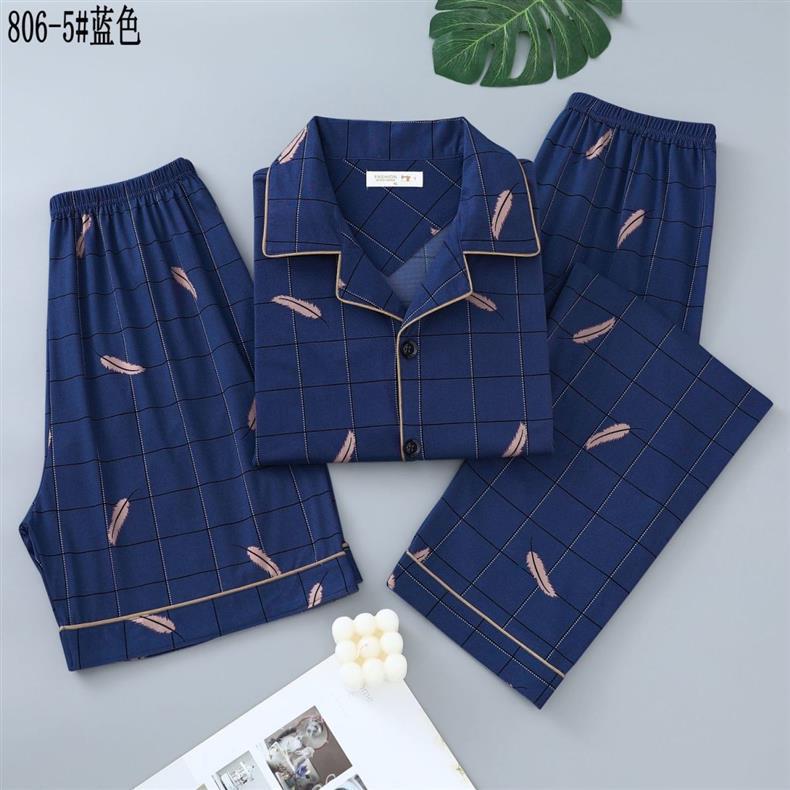 Pijamas de algodón para hombres de verano tres piezas de manga corta pantalones cortos de primavera y verano delgados ropa de casa