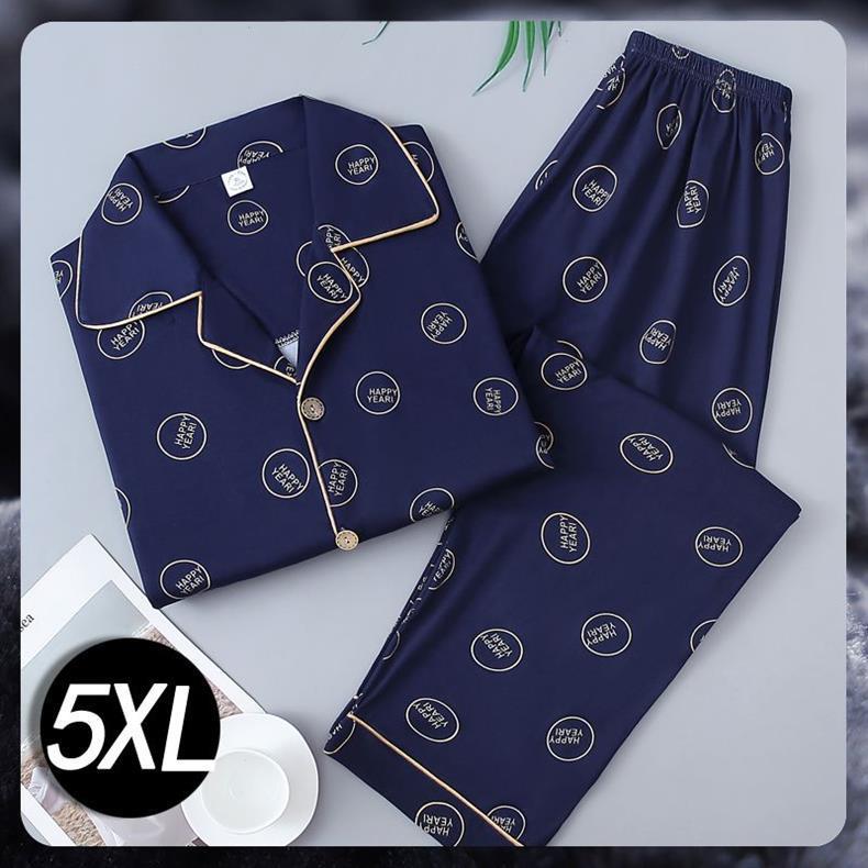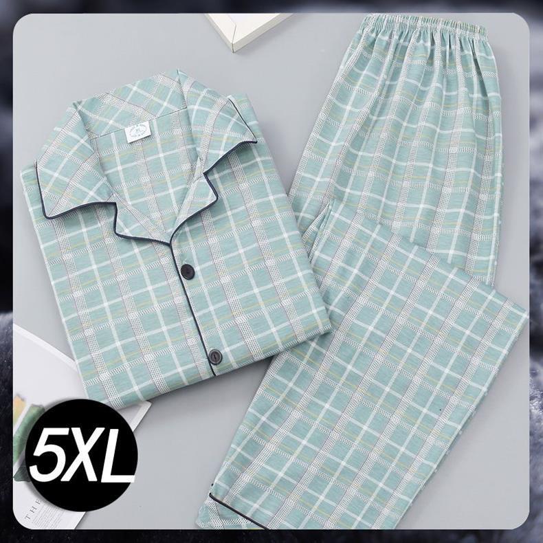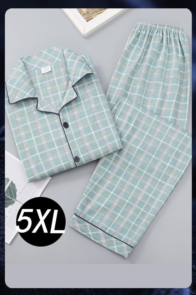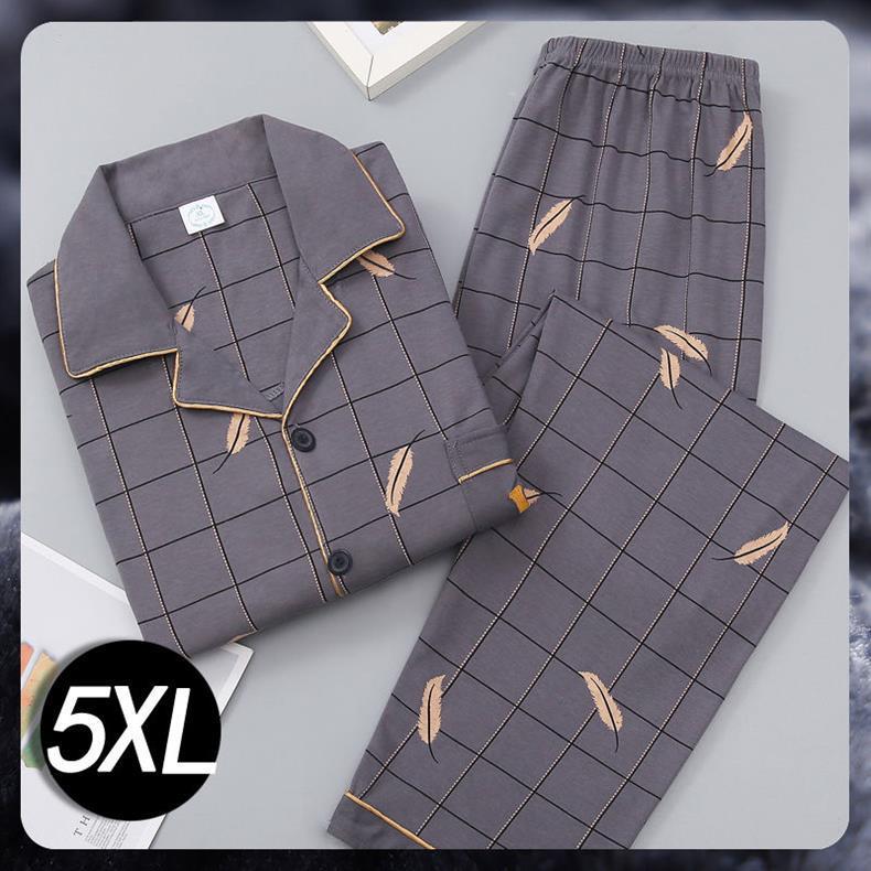 Pijamas de algodón para hombres primavera y otoño de manga larga juventud de mediana edad suelta grande se puede usar fuera del conjunto de ropa de casa