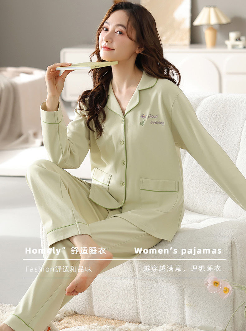 Pijamas de nuevo estilo para mujer primavera y otoño cardigan de manga larga de gran tamaño, las madres de mediana edad pueden usar trajes exteriores, servicio a domicilio de alta gama