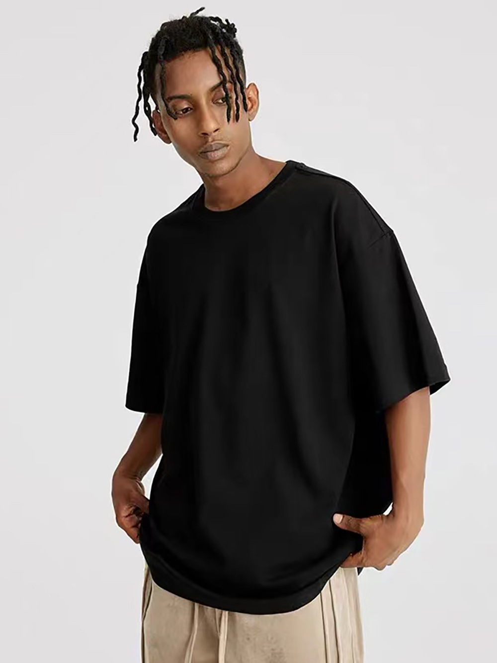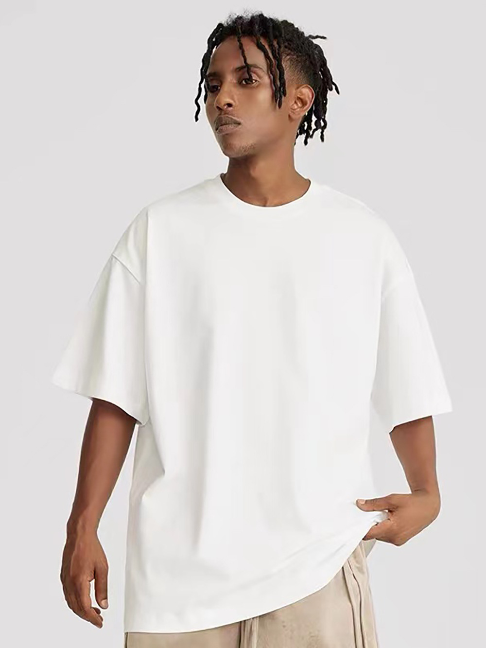 230g camiseta transfronteriza pesada marca de moda caída hombro camiseta de mangas cortas hombre universal suelta Europa y América in pareja camiseta de moda