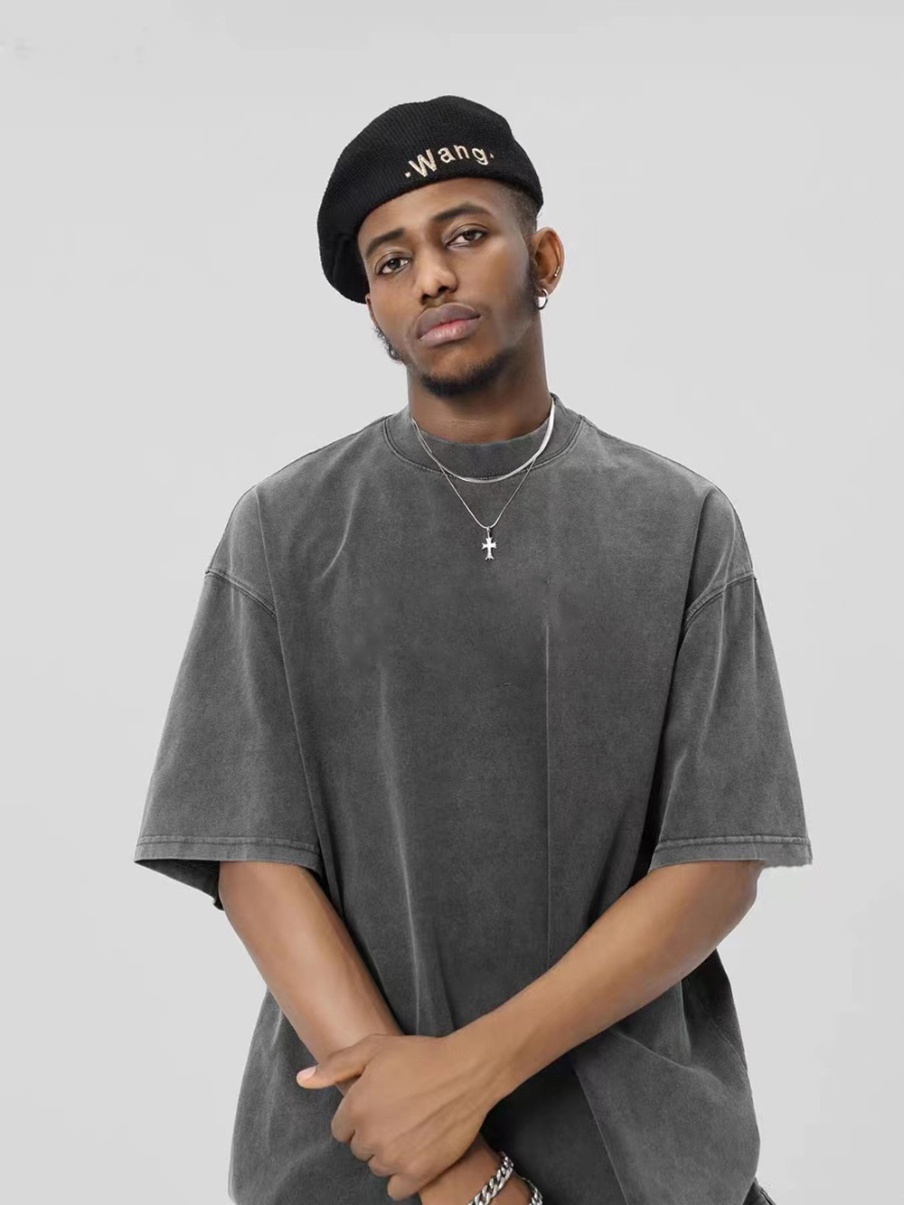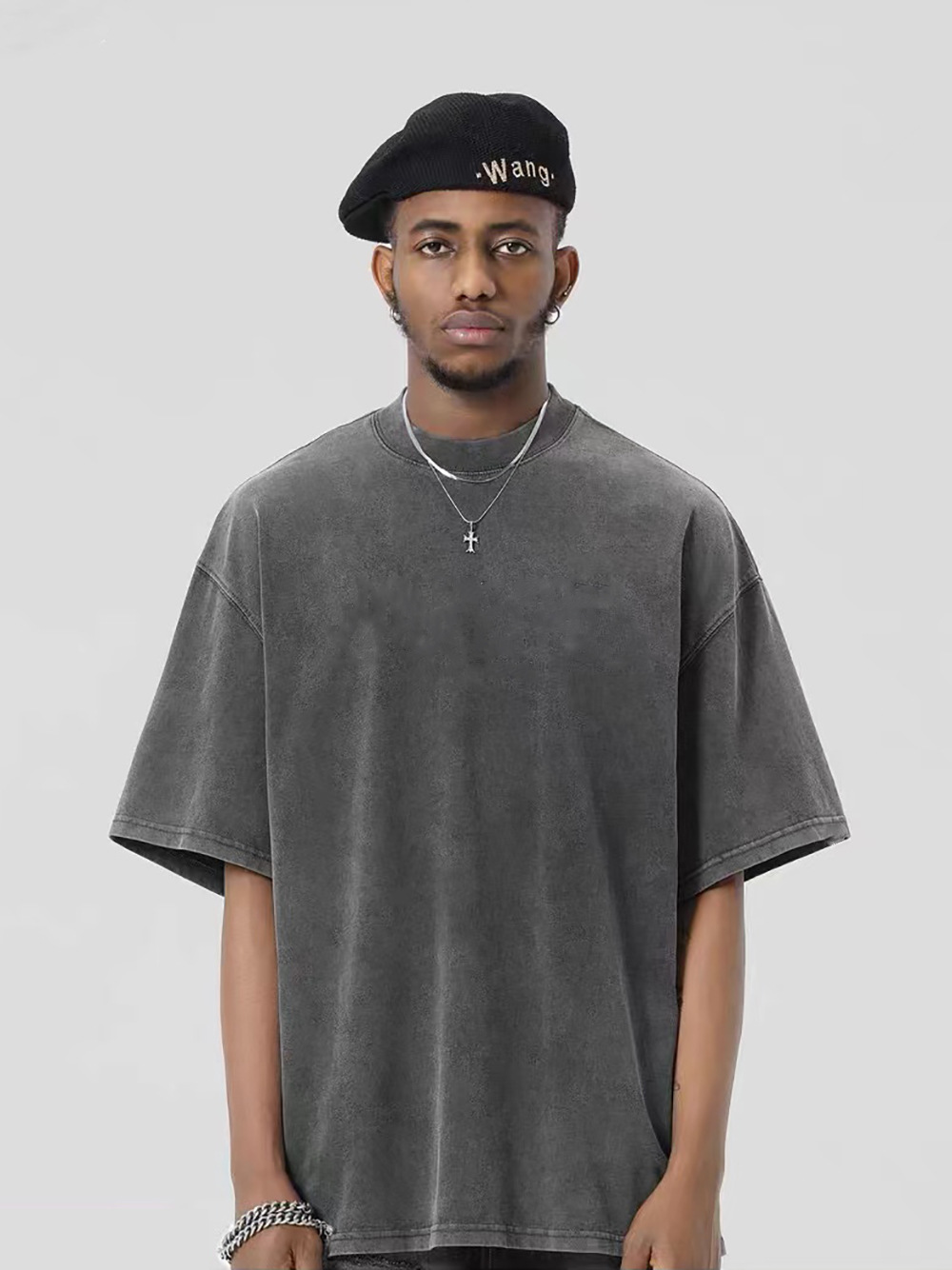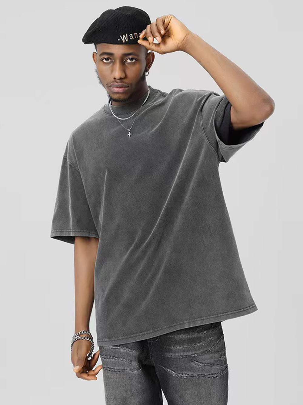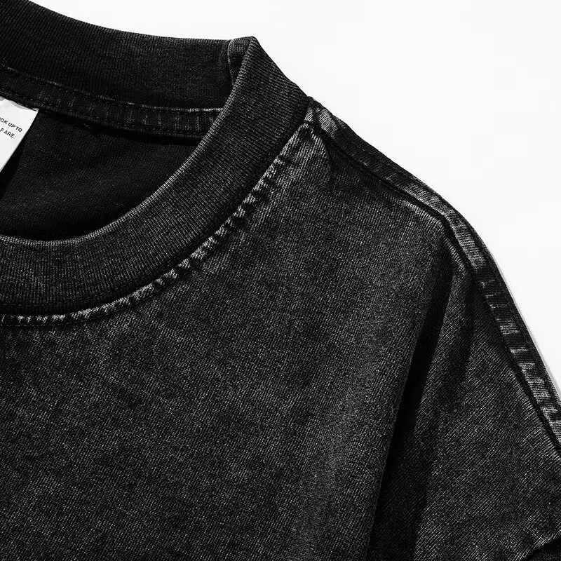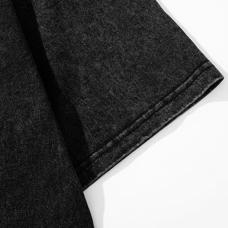 300g de peso pesado lavado con agua para hacer camisetas de manga corta de hombro de la marca de moda vieja para hombres, camisetas de moda de pareja holgas europeas y americanas