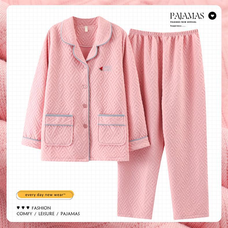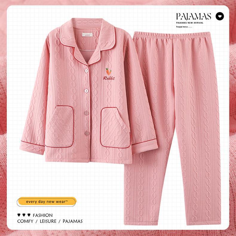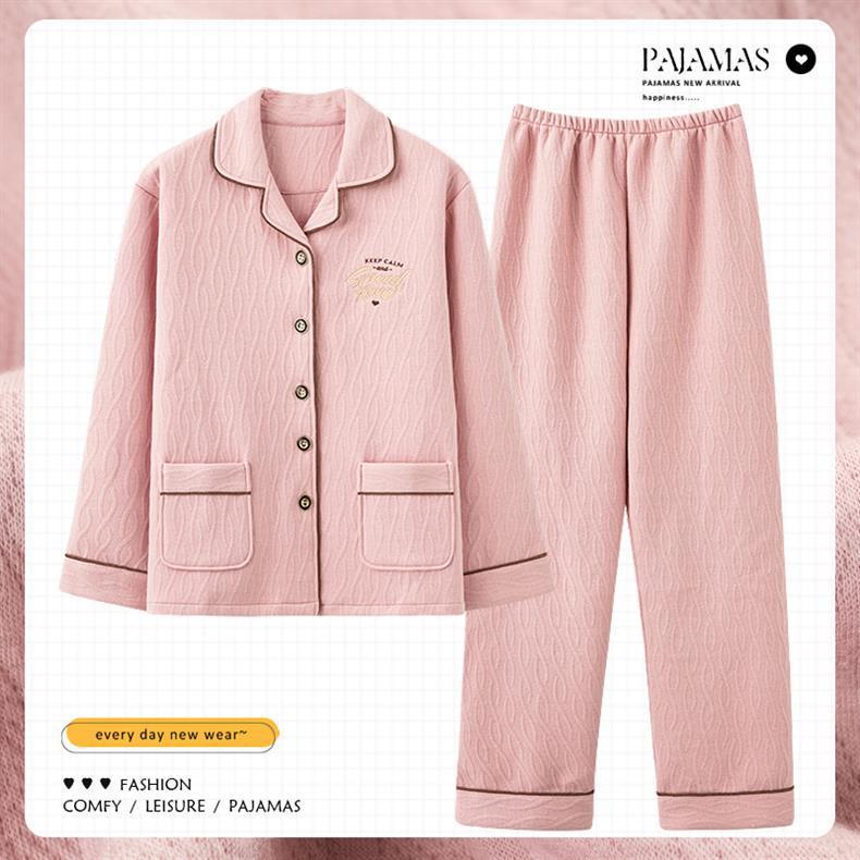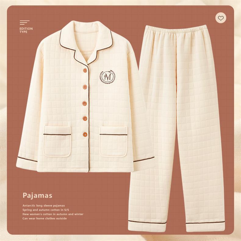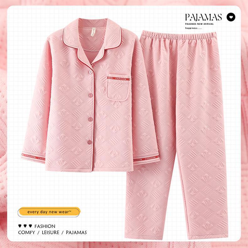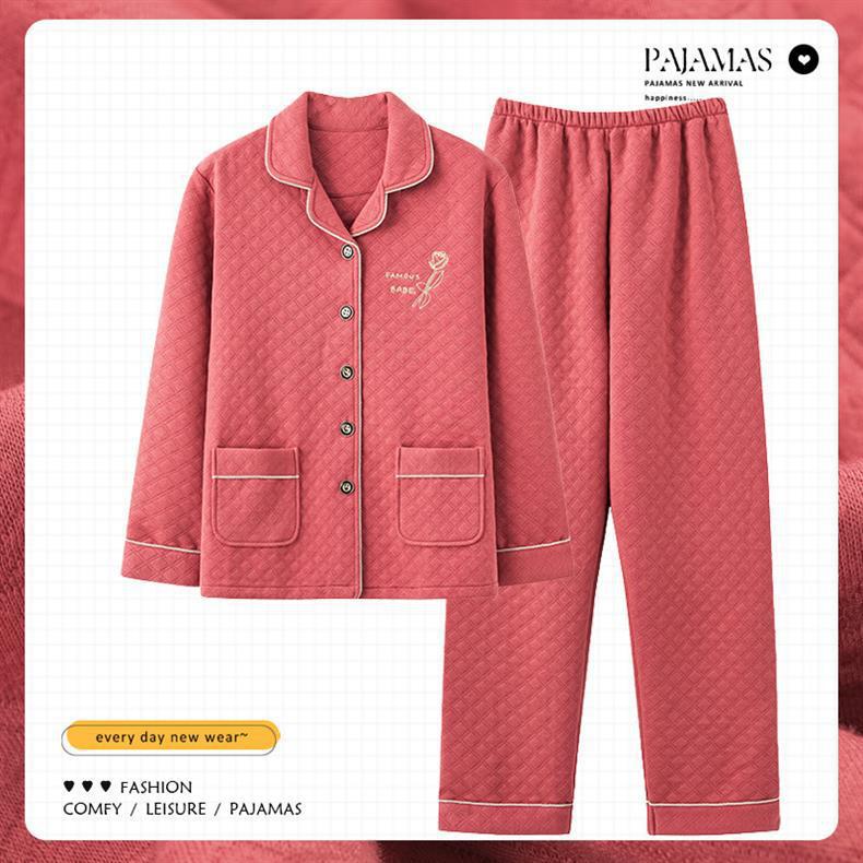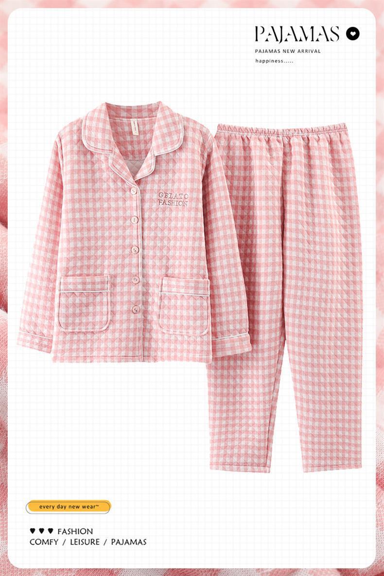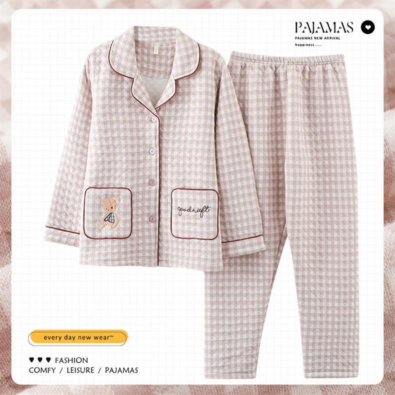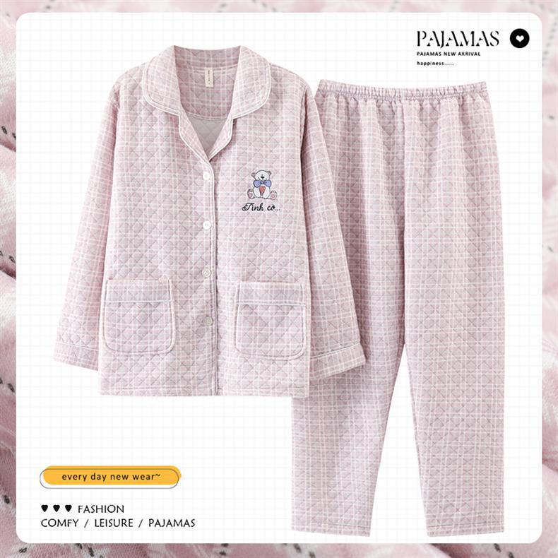 100% algodón pijamas de algodón de aire de las mujeres de otoño e invierno de manga larga engrosada de tres capas sándwich Delgado acolchado ropa para el hogar