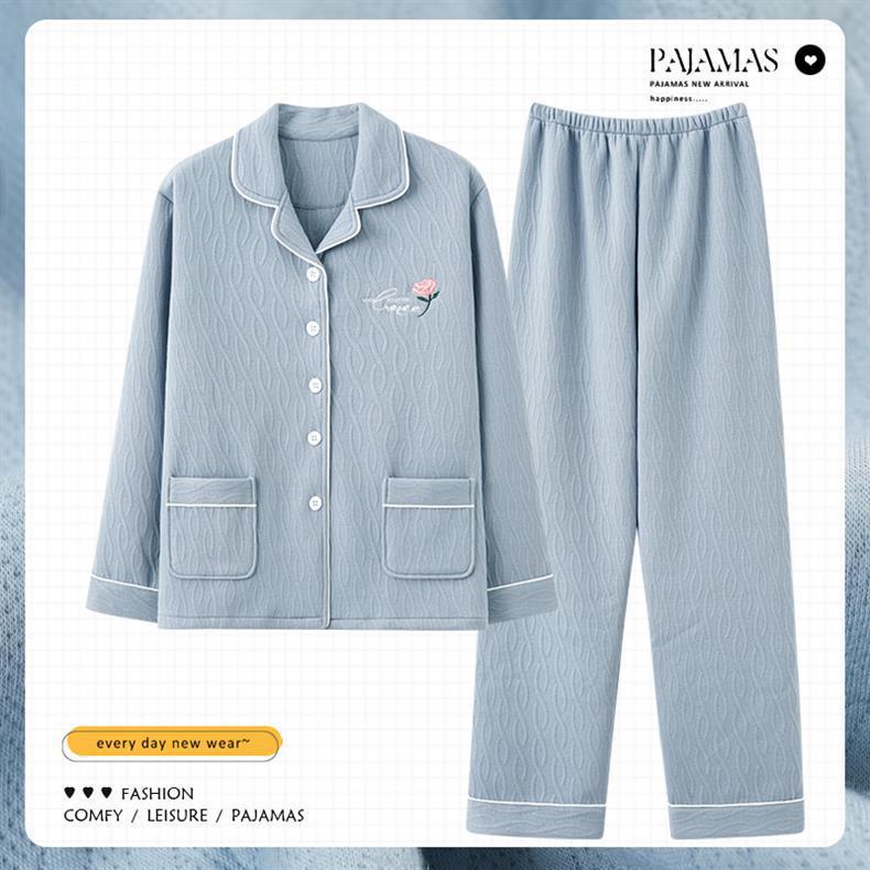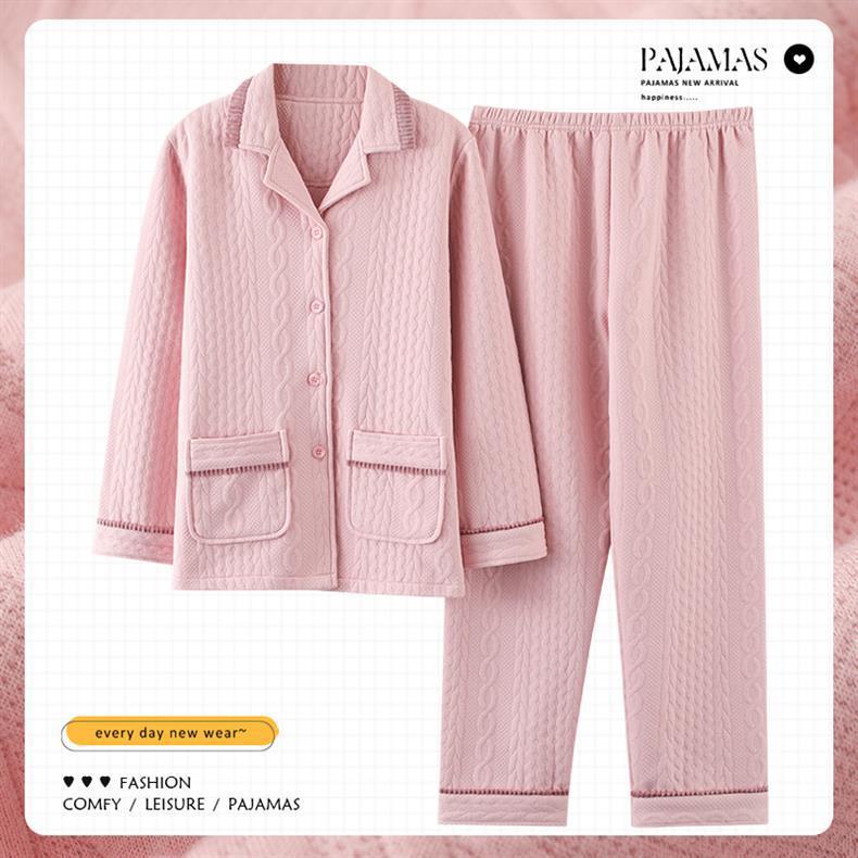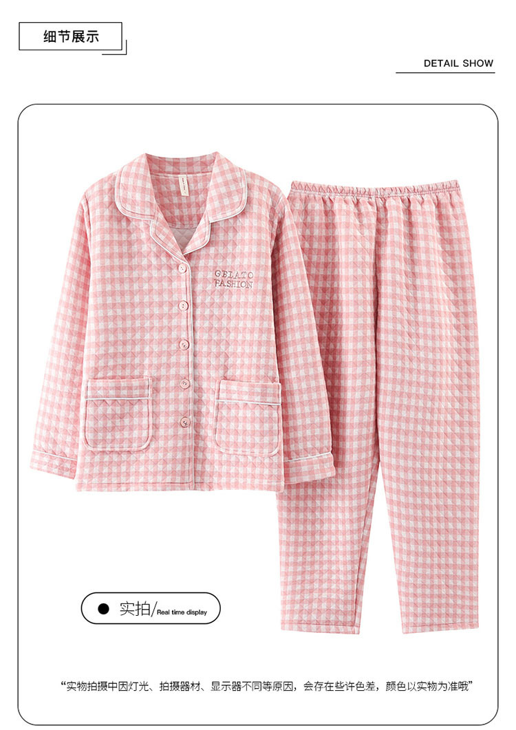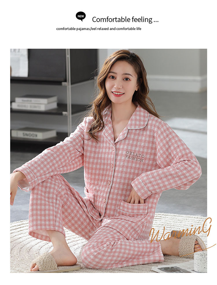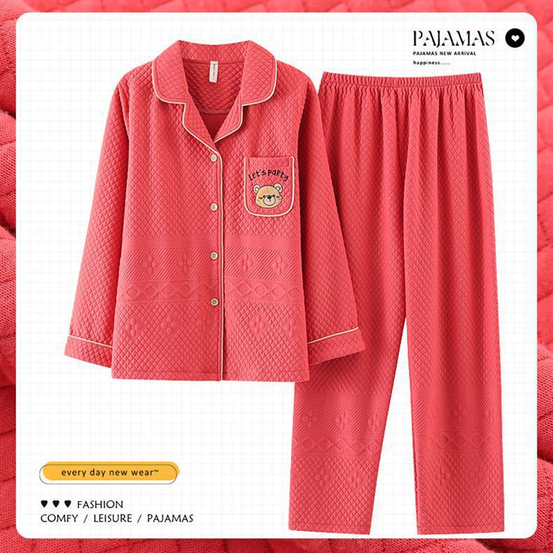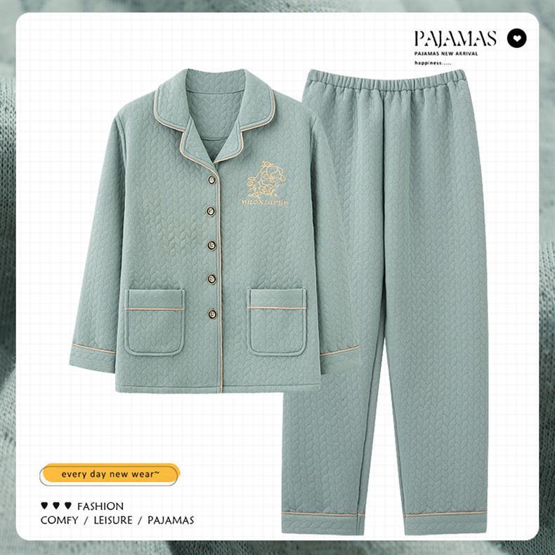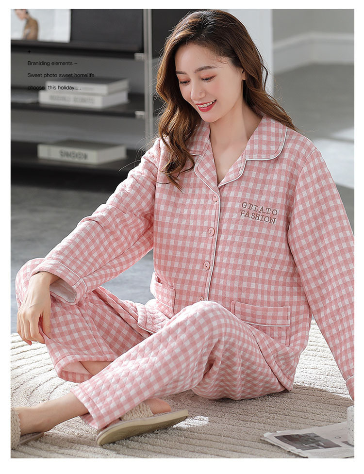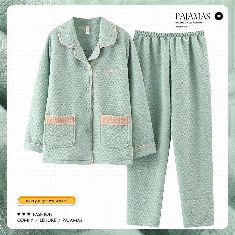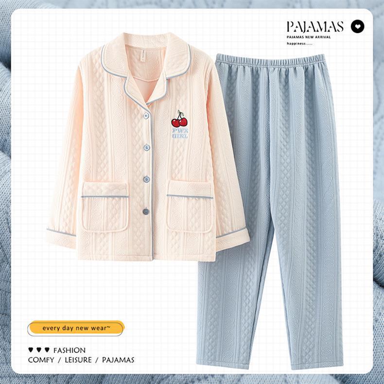 100% algodón pijamas de algodón de aire de las mujeres de otoño e invierno de manga larga engrosada de tres capas sándwich Delgado acolchado ropa para el hogar
