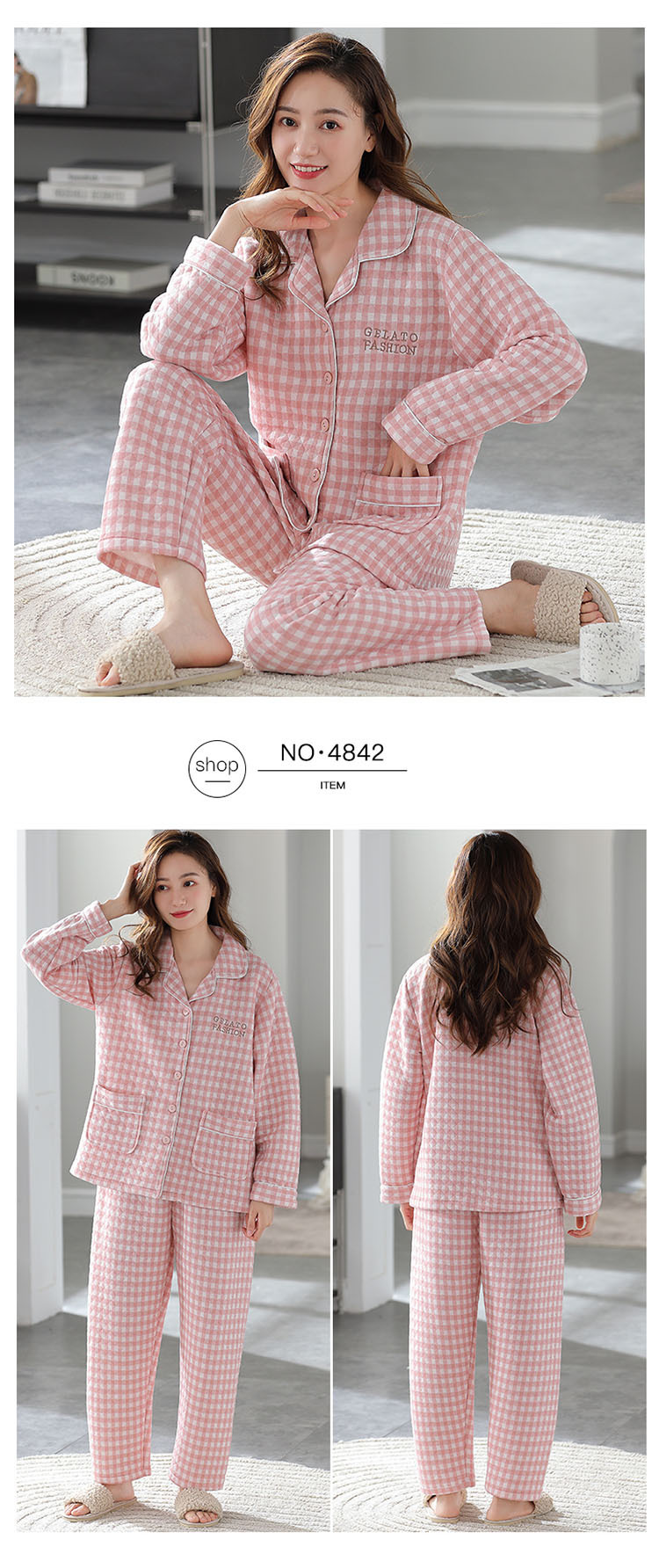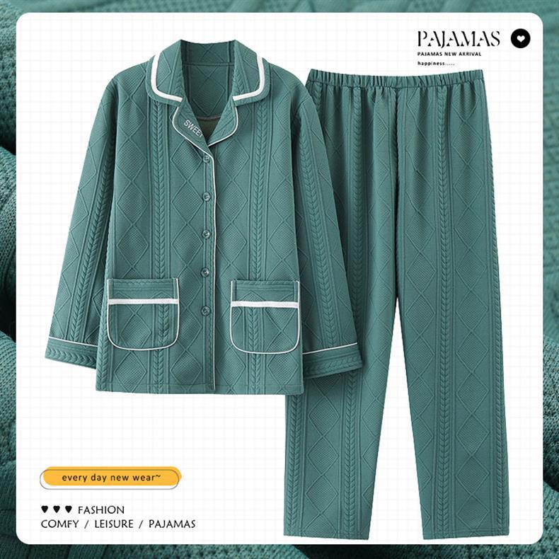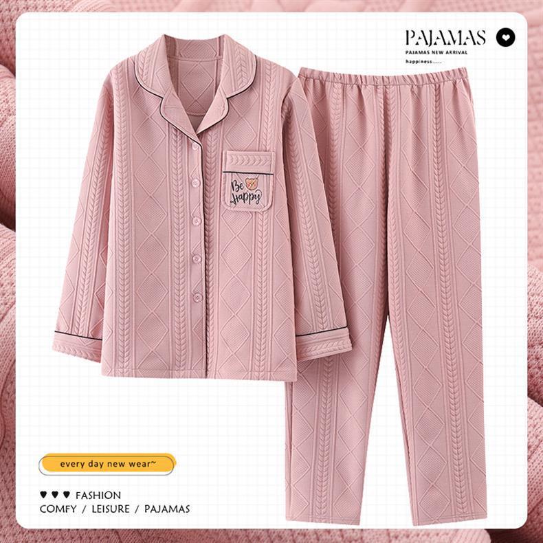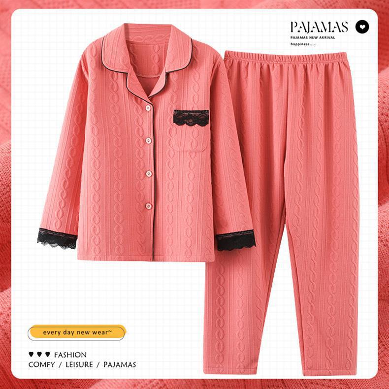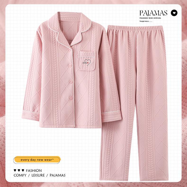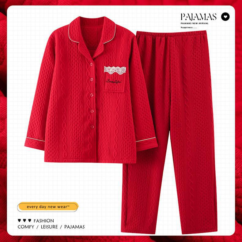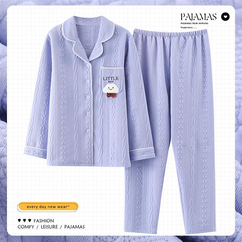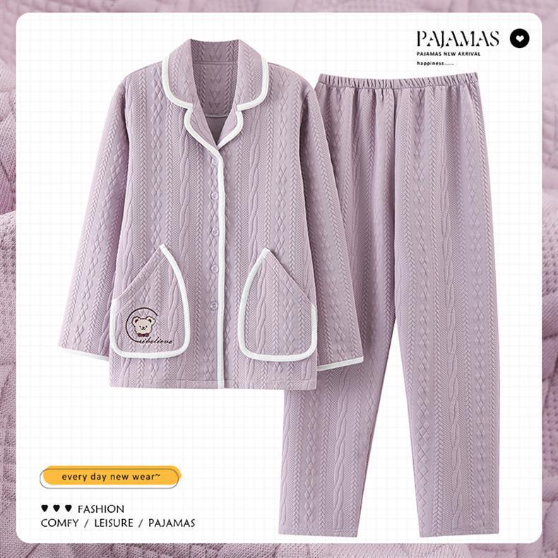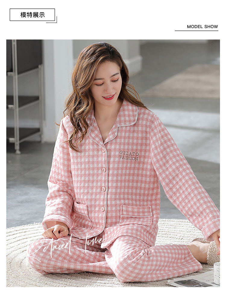 100% algodón pijamas de algodón de aire de las mujeres de otoño e invierno de manga larga engrosada de tres capas sándwich Delgado acolchado ropa para el hogar