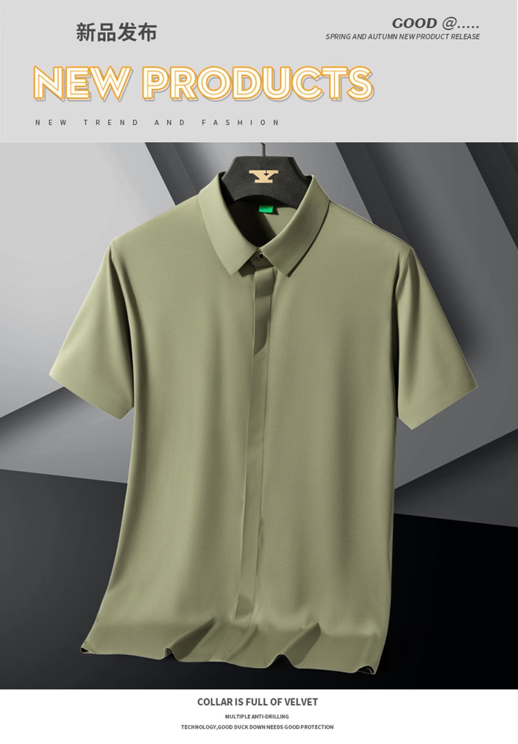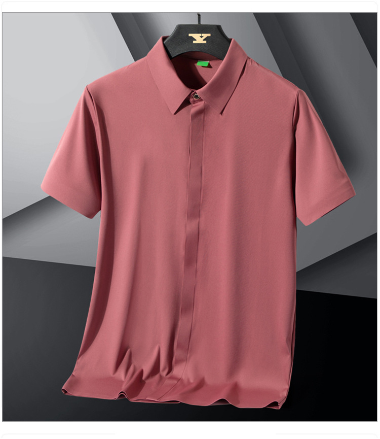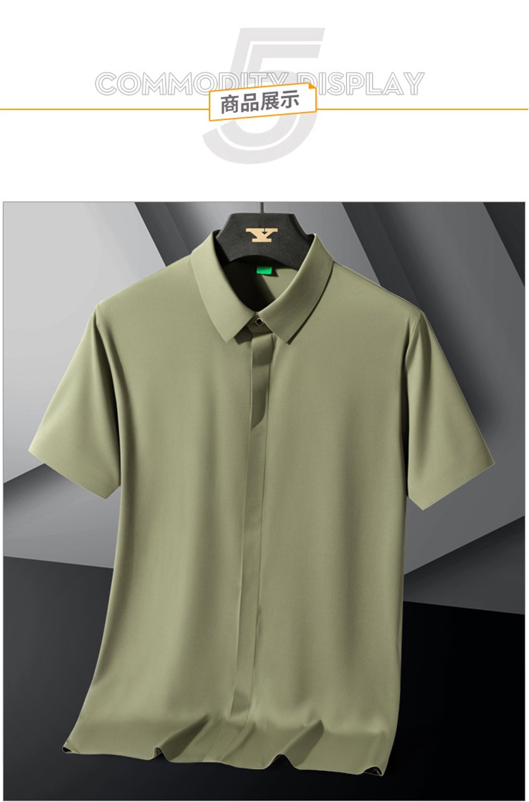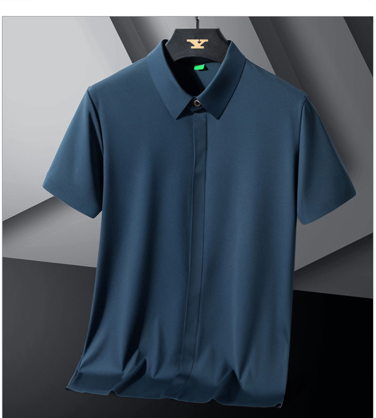 Camisas de manga corta de seda de hielo para hombres de negocios sin marcas sin escaldar chaqueta de verano delgada de secado rápido sin marcas prensado chaqueta al por mayor