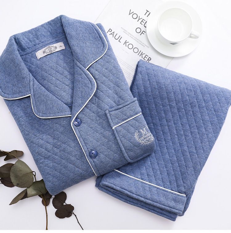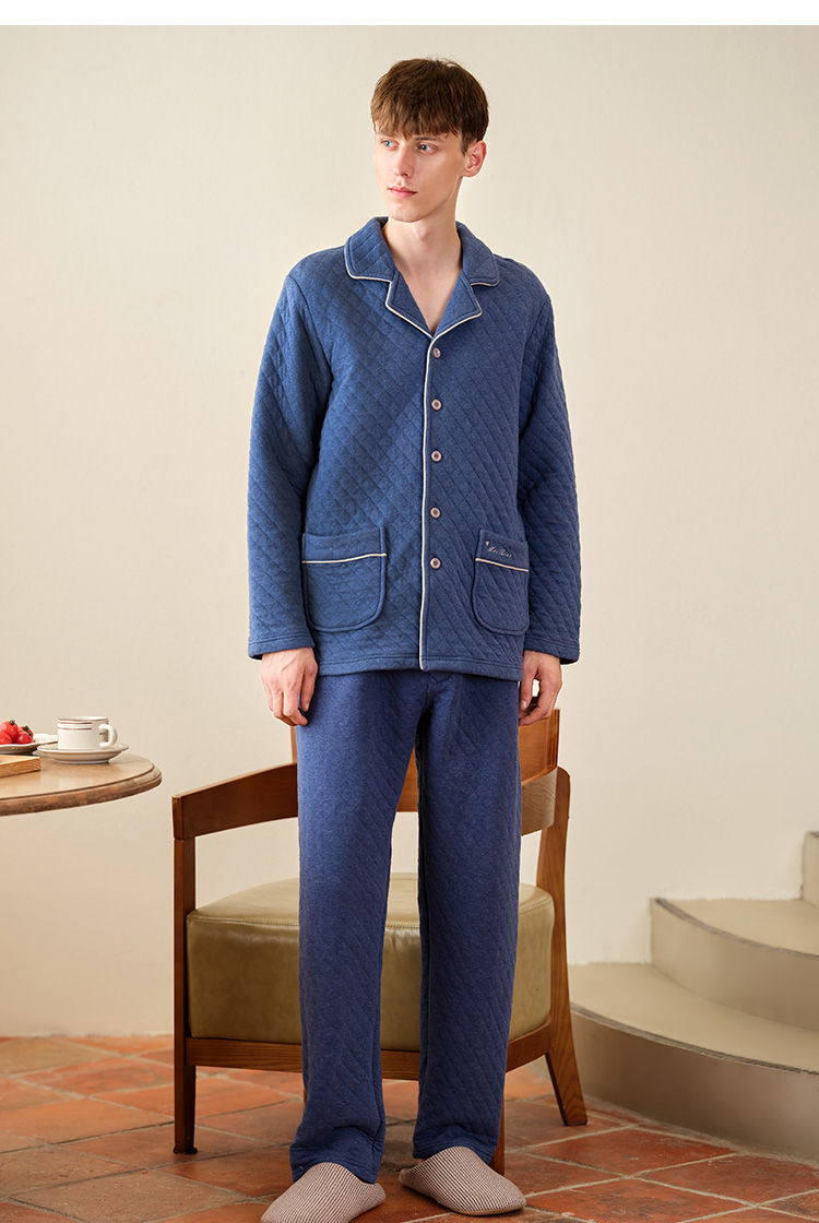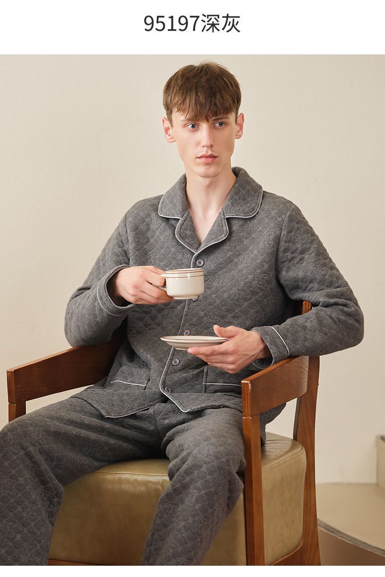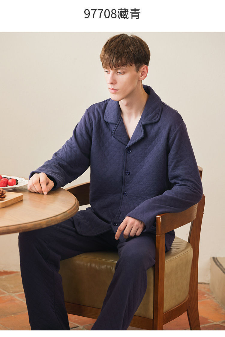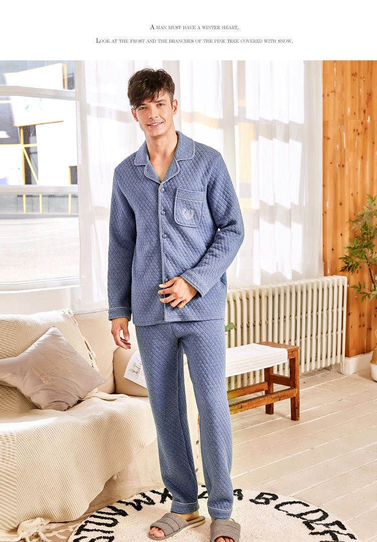 Capa de aire de tres capas traje acolchado pijamas hombres Otoño e Invierno carta bordado prendas de vestir exteriores homewear