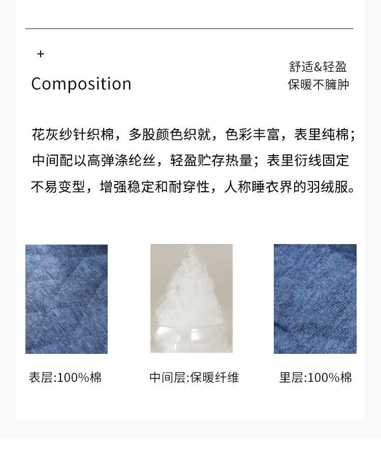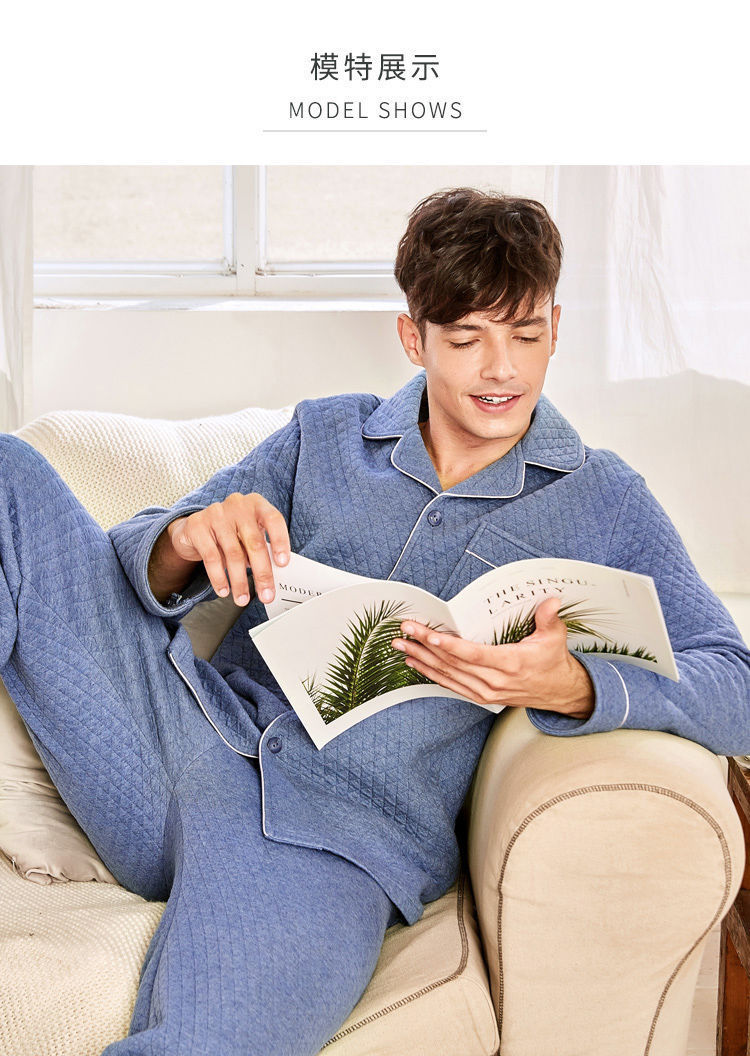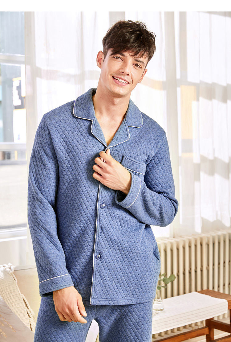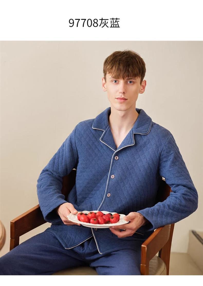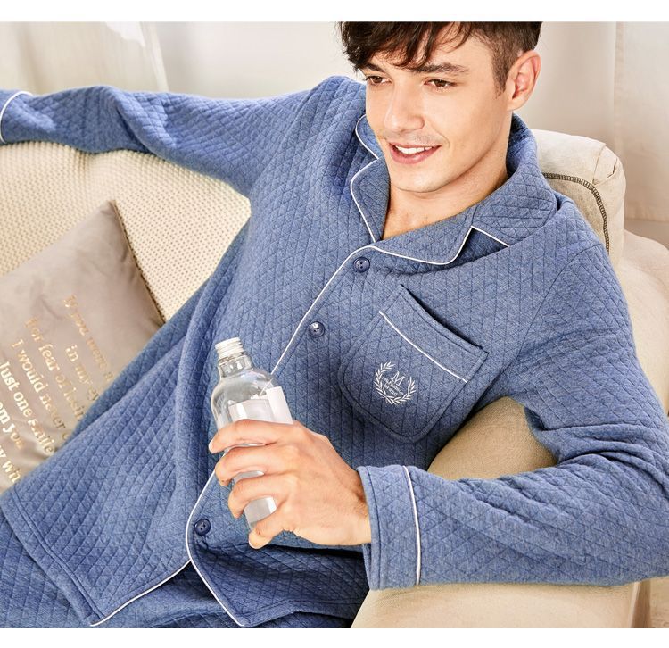 Capa de aire de tres capas traje acolchado pijamas hombres Otoño e Invierno carta bordado prendas de vestir exteriores homewear