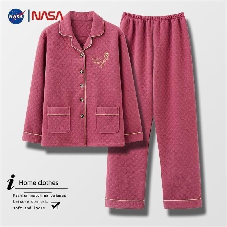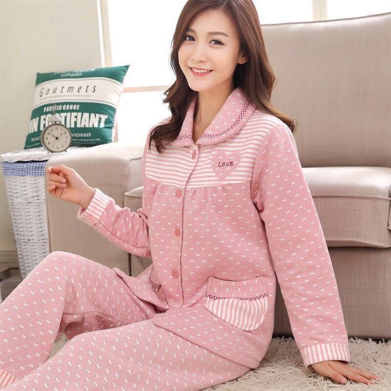 100% pijamas de algodón de las mujeres de otoño e invierno cardigan engrosado acolchado de manga larga sándwich de aire de Algodón de Primavera y Otoño desgaste del hogar