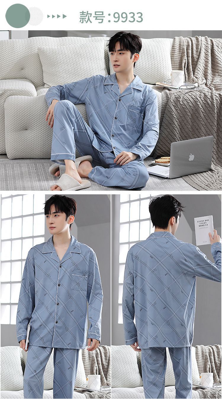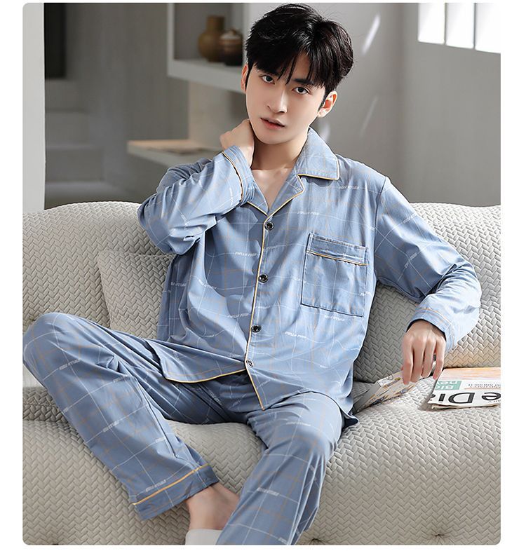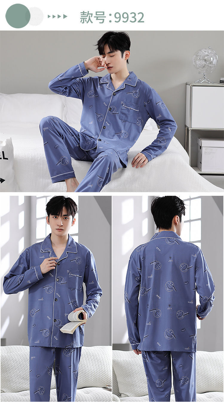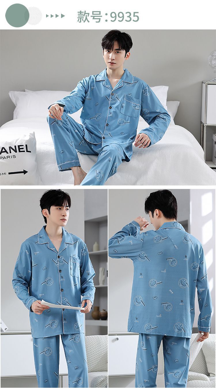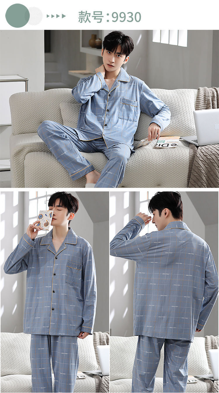 Pijamas de hombre primavera y otoño 100% algodón pantalones de manga larga delgada juventud más tamaño traje de verano homewear