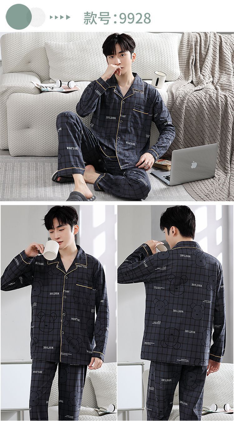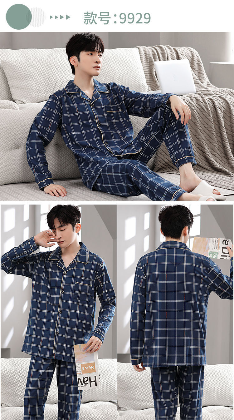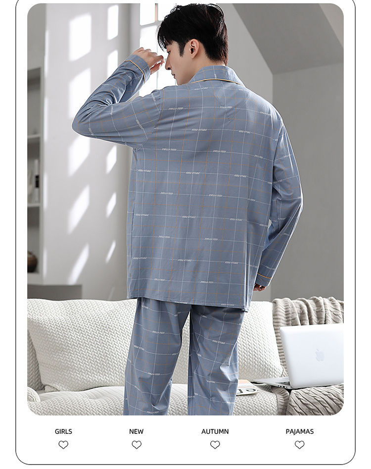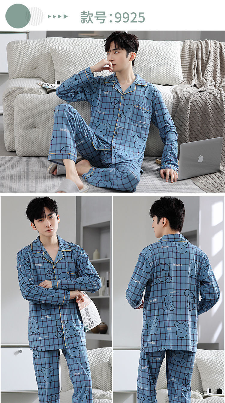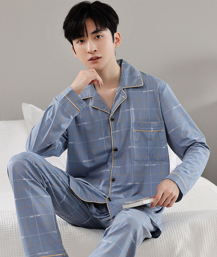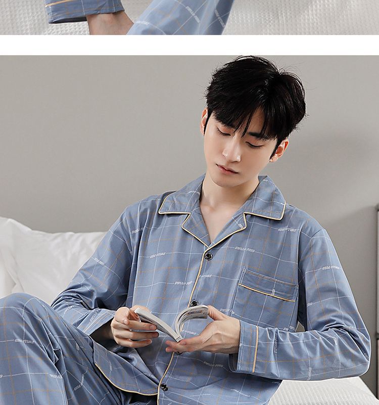 Pijamas de hombre primavera y otoño 100% algodón pantalones de manga larga delgada juventud más tamaño traje de verano homewear