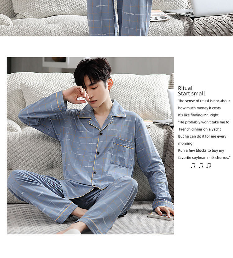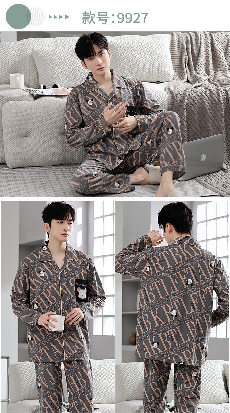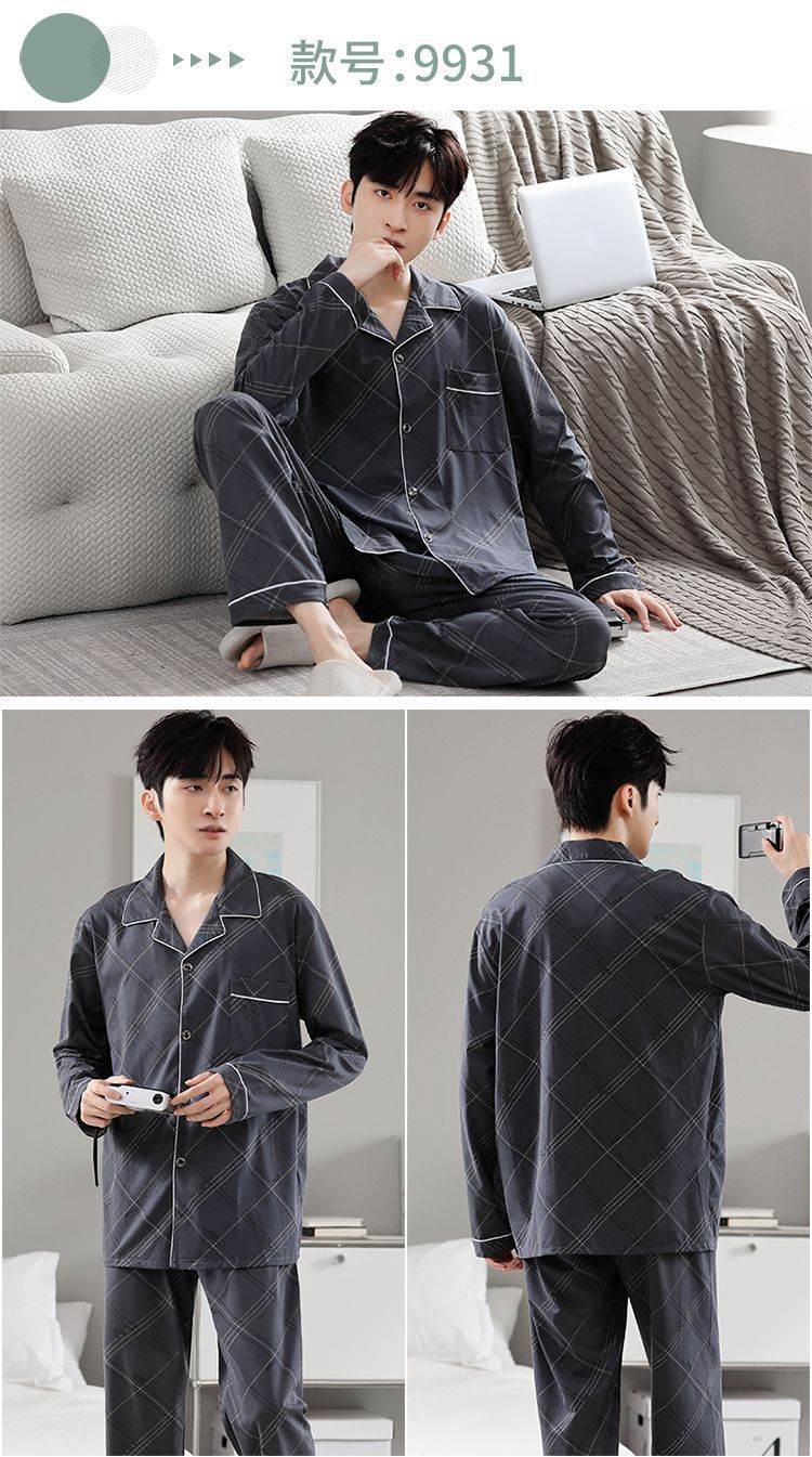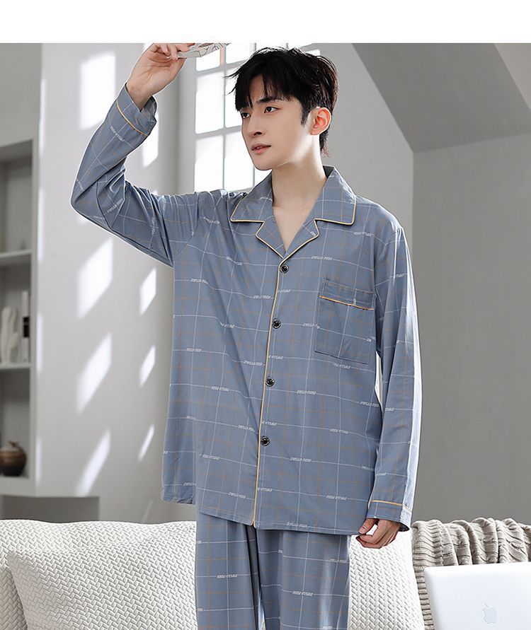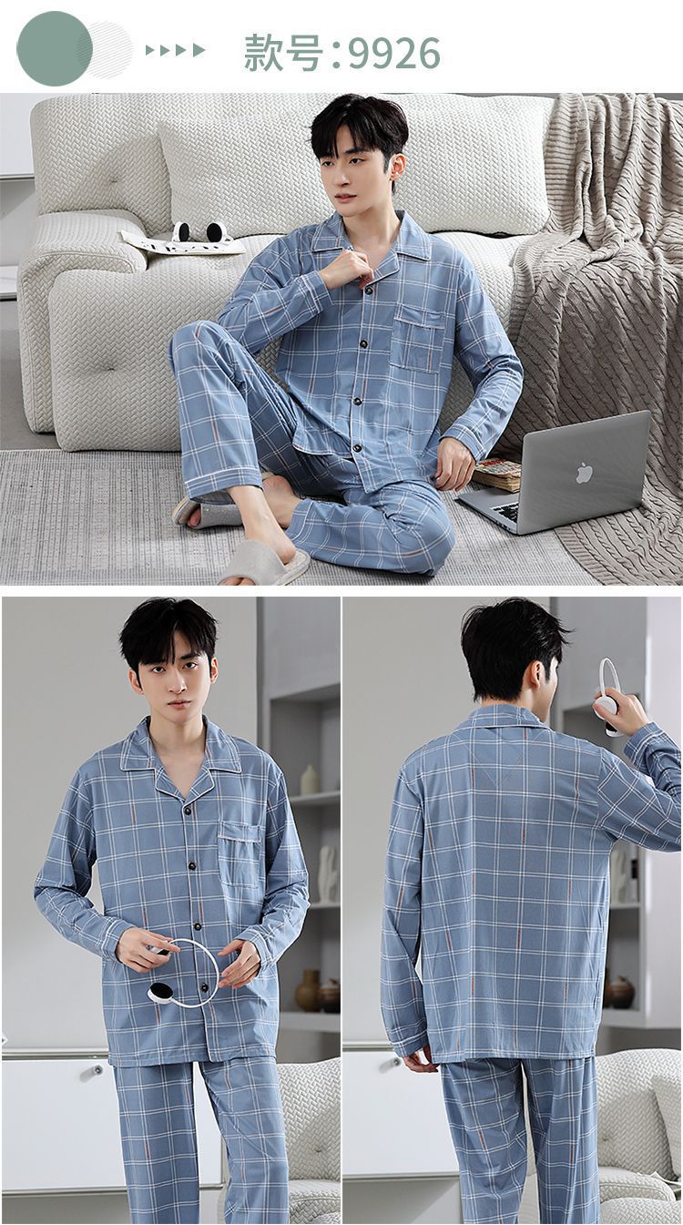 Pijamas de hombre primavera y otoño 100% algodón pantalones de manga larga delgada juventud más tamaño traje de verano homewear