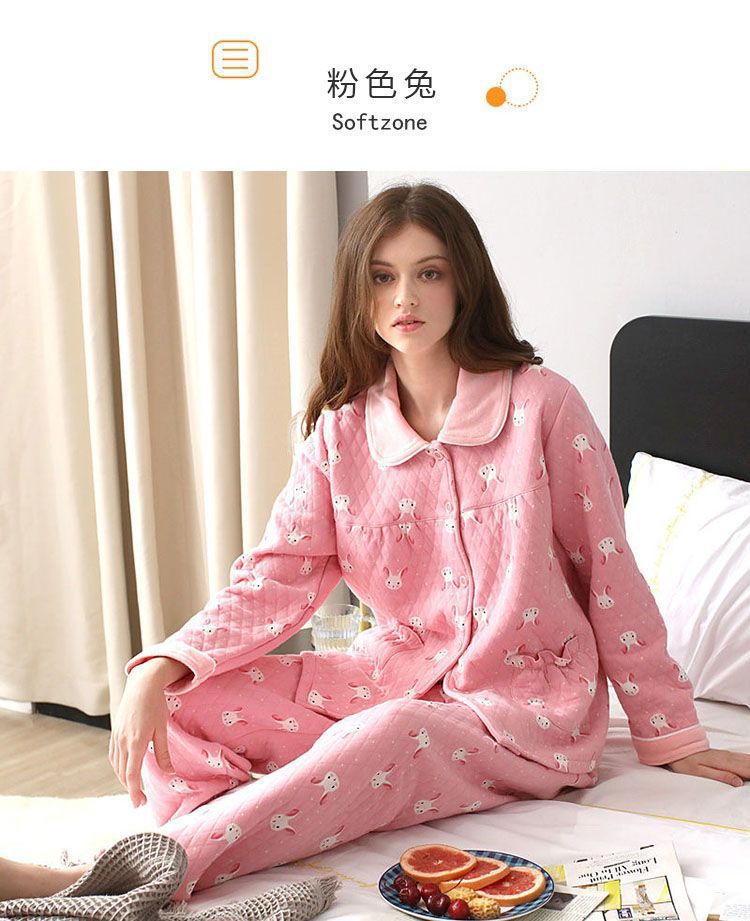 Invierno de aire algodón 100% pijamas de algodón grueso de las mujeres Primavera, Otoño e Invierno desgaste del hogar más tamaño desgaste exterior capa intermediaria