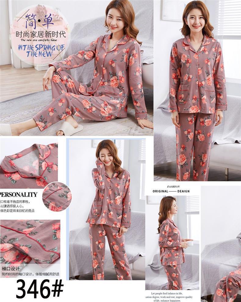 Pijama de algodón 100% de las mujeres con almohadilla en el pecho traje de primavera y otoño pantalones de manga larga primavera y otoño delgado más tamaño homewear