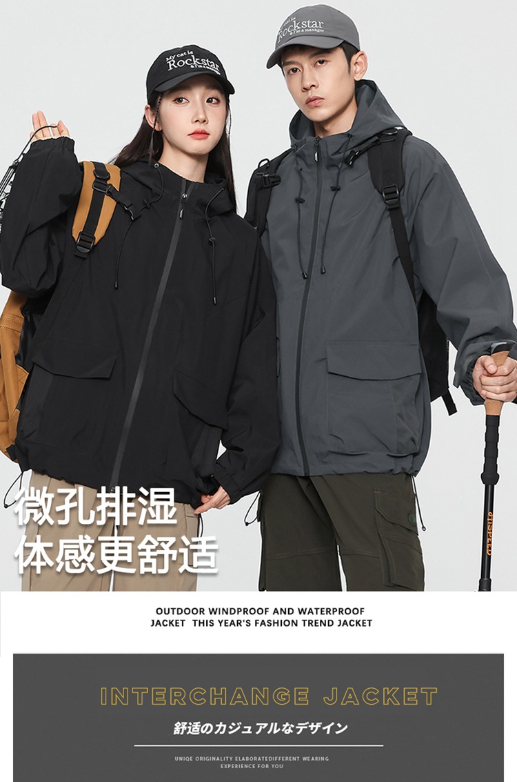 2024 Primavera al aire libre chaqueta con capucha de tres prueba pareja montañismo chaqueta de los hombres Hong Kong estilo chaqueta al por mayor
