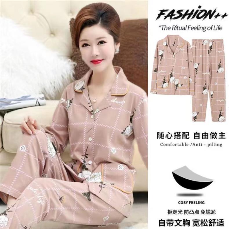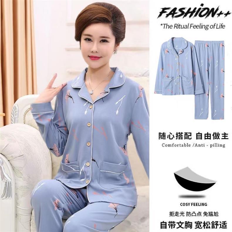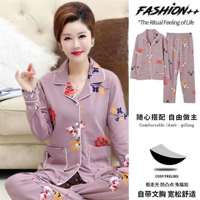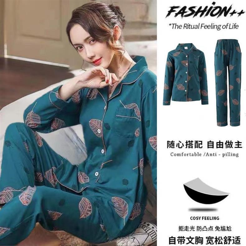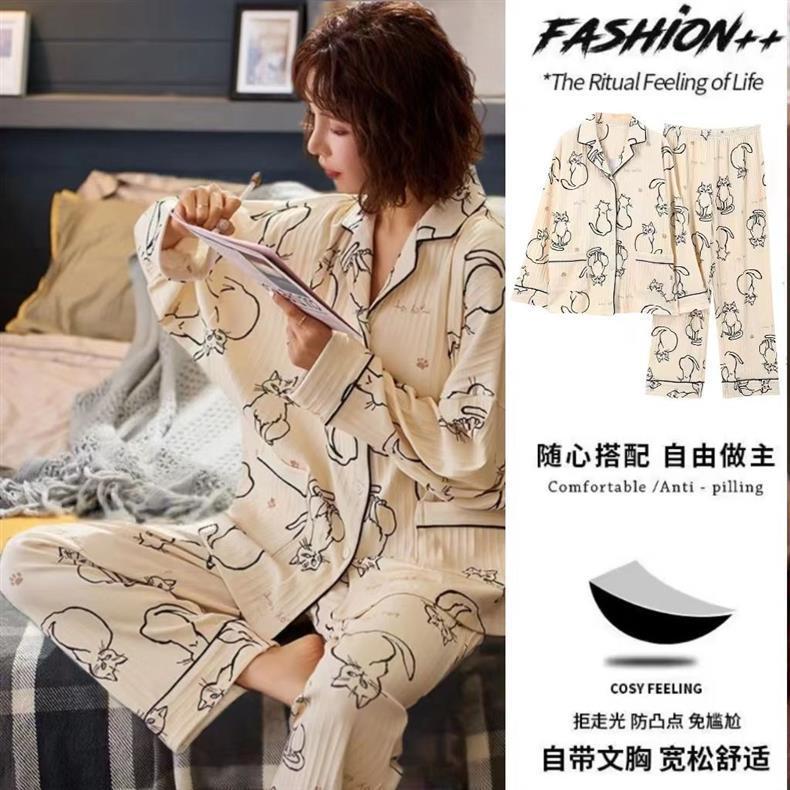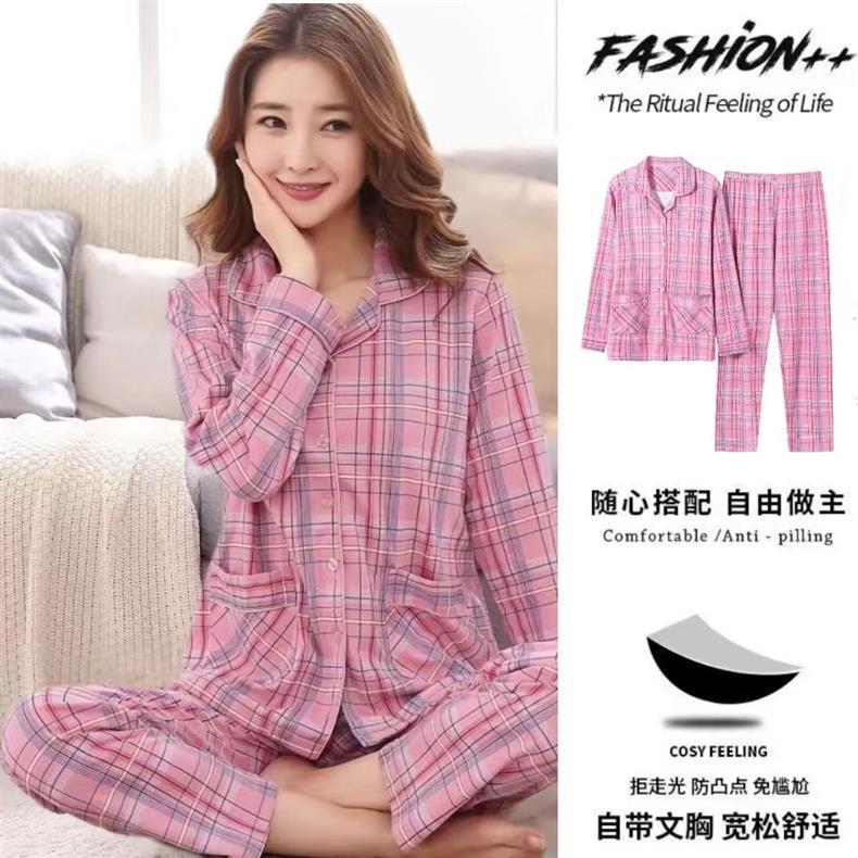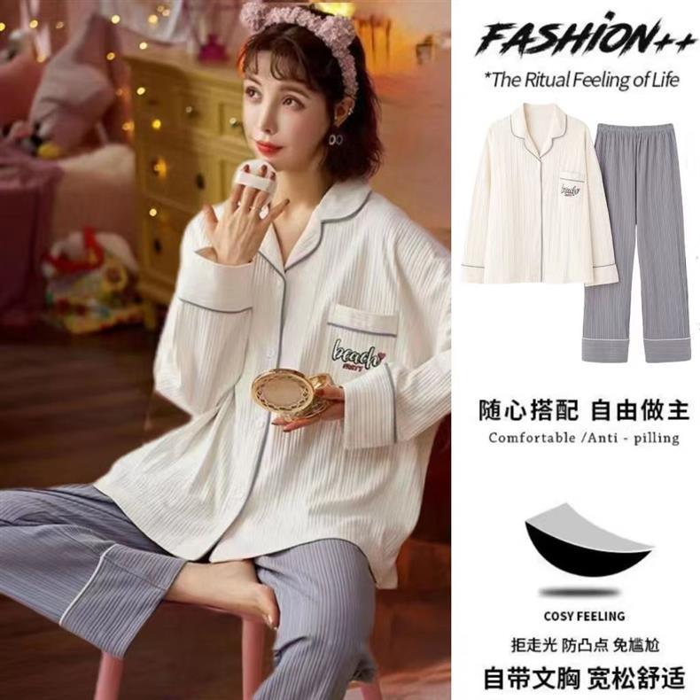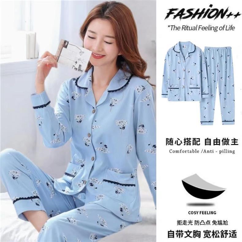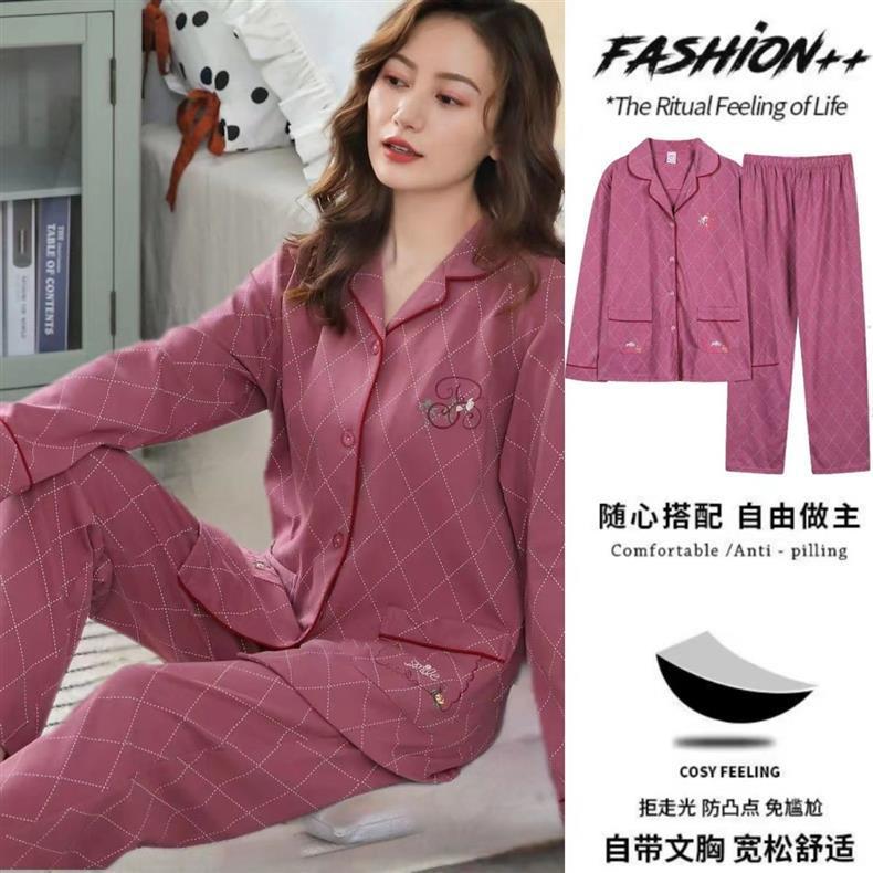 Pijamas 100% de algodón las mujeres con el cojín del pecho, la primavera y el otoño manga larga, más tamaño, desgaste casero al aire libre, traje