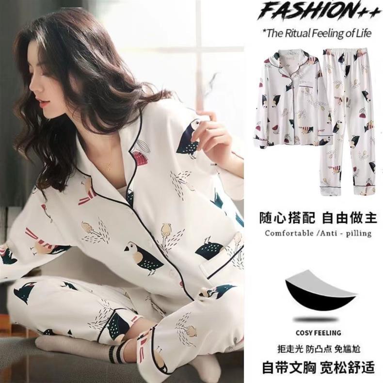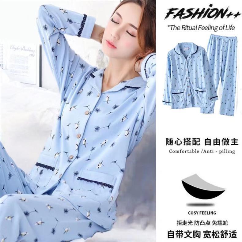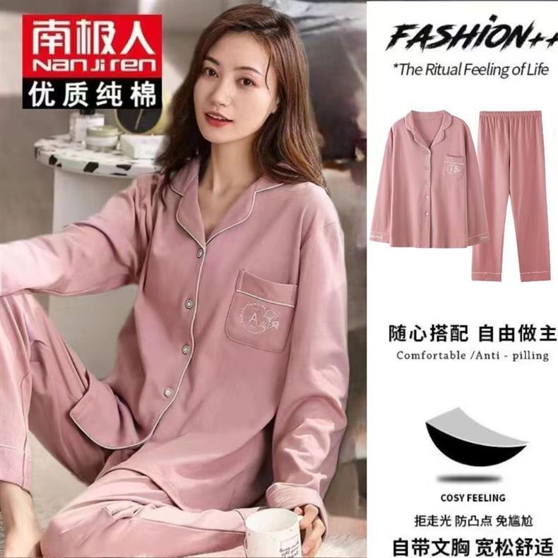 Pijamas de algodón 100% para mujer con almohadilla en el pecho, de manga larga de una pieza de primavera y otoño 2023 nuevo traje de desgaste para el hogar de las mujeres