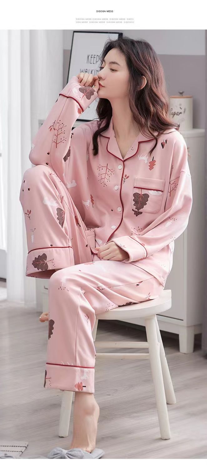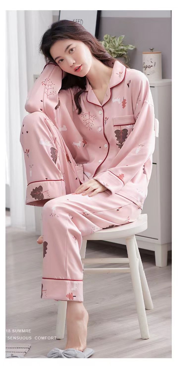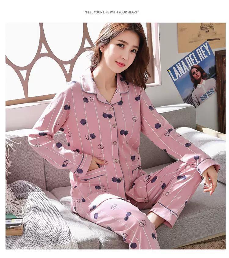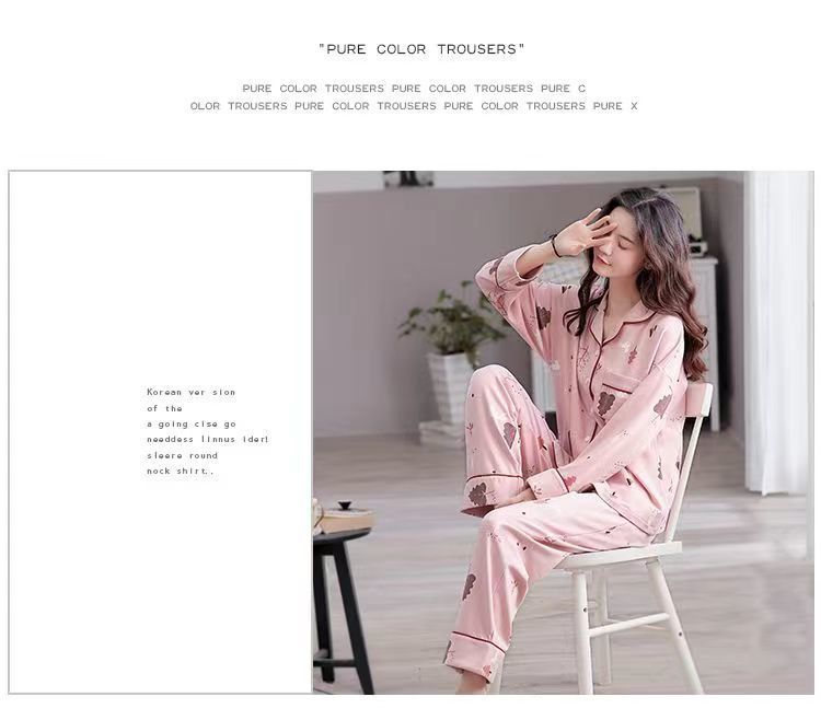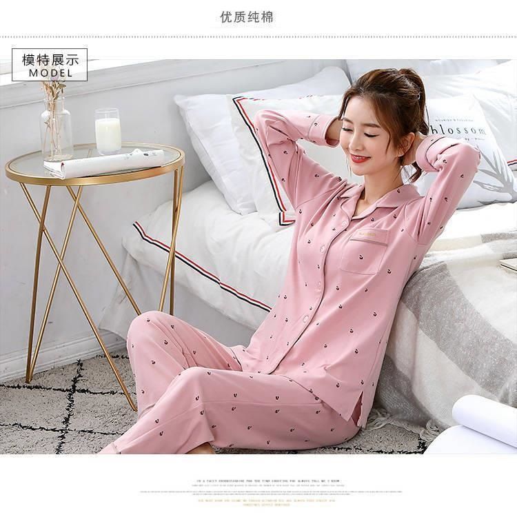 100% algodón otoño pijama de manga larga con almohadilla en el pecho de primavera y otoño de las mujeres pantalones delgados desgaste en el hogar anti-Bump Nuevo