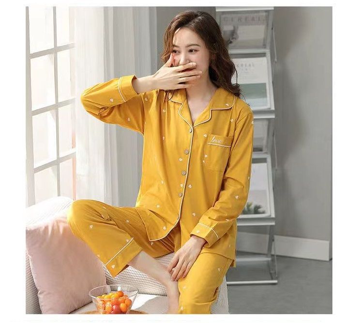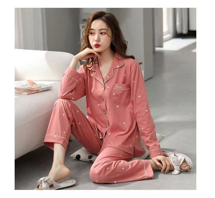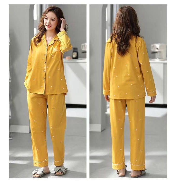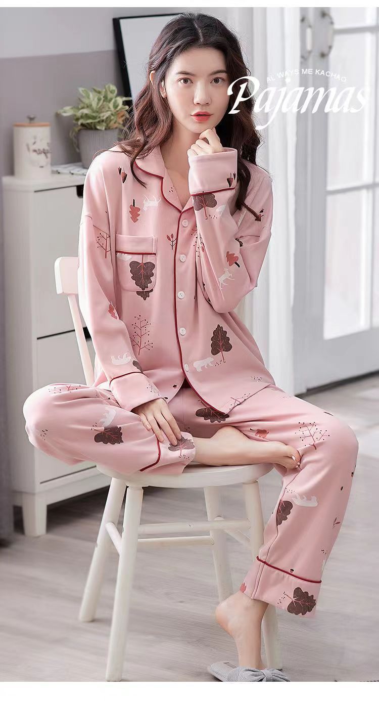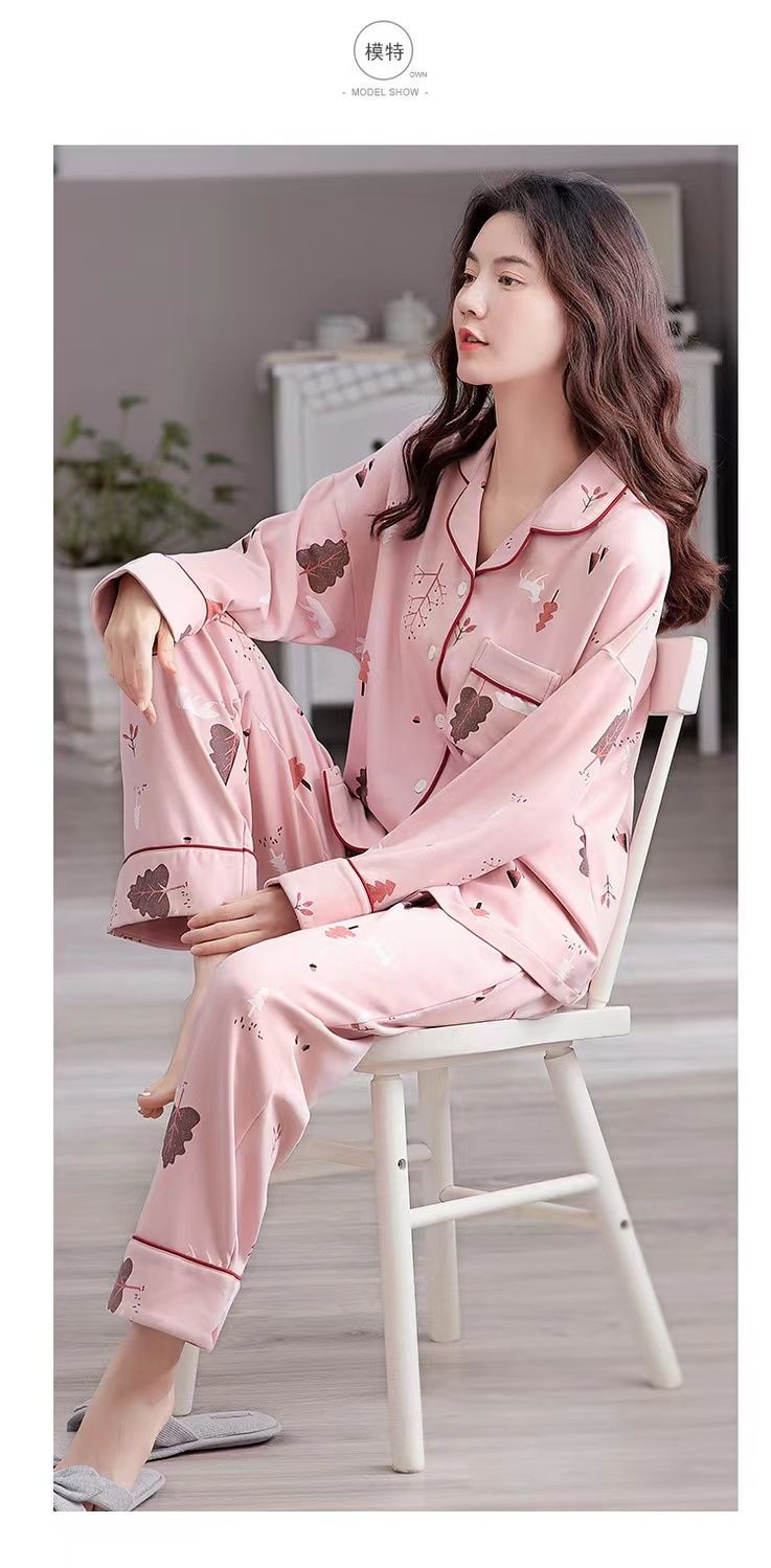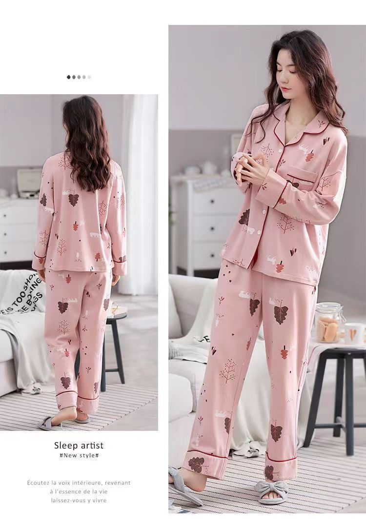 100% algodón otoño pijama de manga larga con almohadilla en el pecho de primavera y otoño de las mujeres pantalones delgados desgaste en el hogar anti-Bump Nuevo