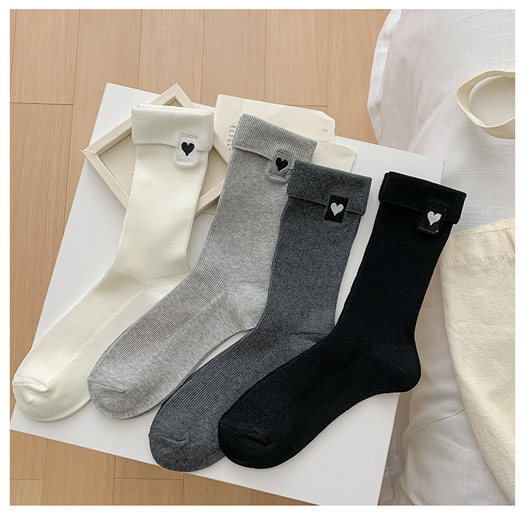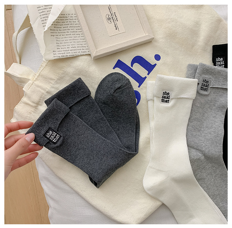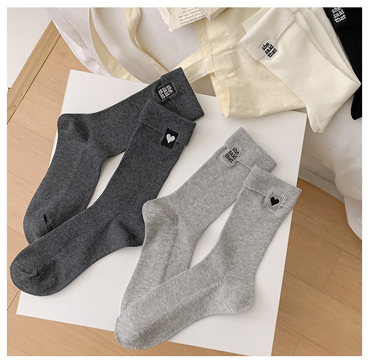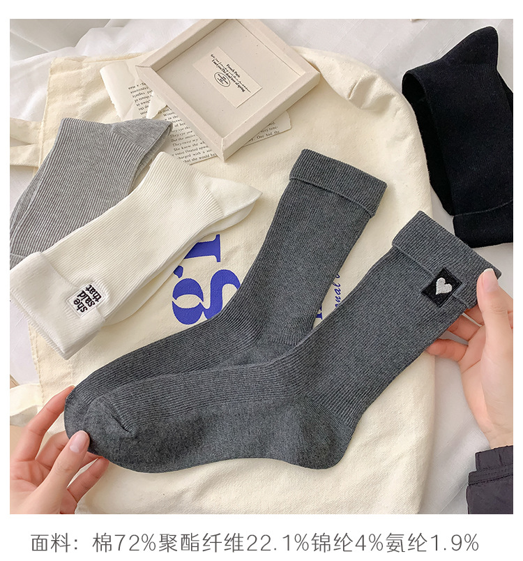 Calcetines de invierno de otoño sólido calcetines de algodón damas AB bordado tendencia vertical calcetines de pila Zhuji calcetines al por mayor
