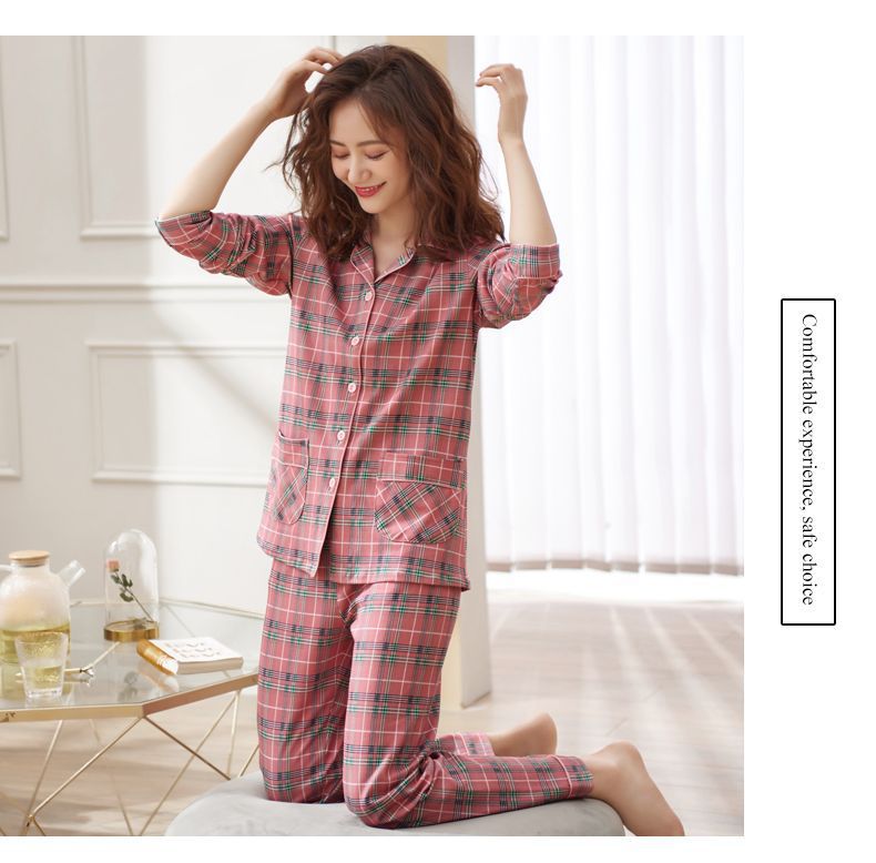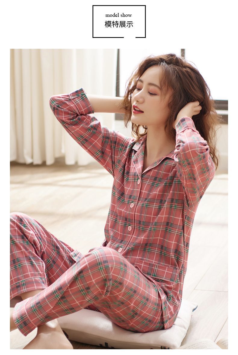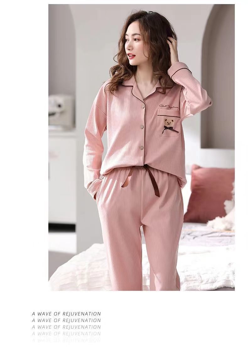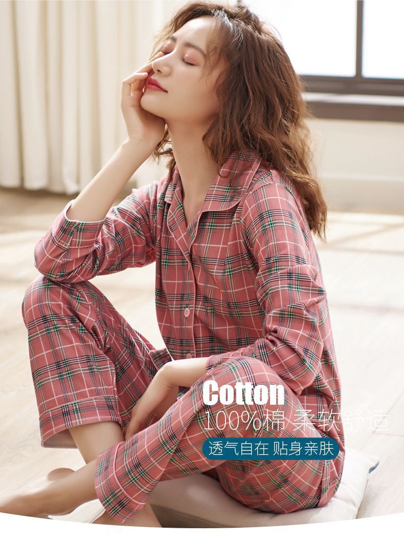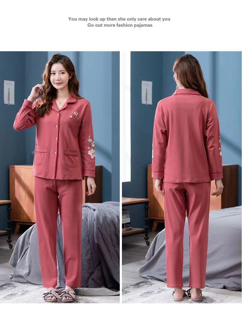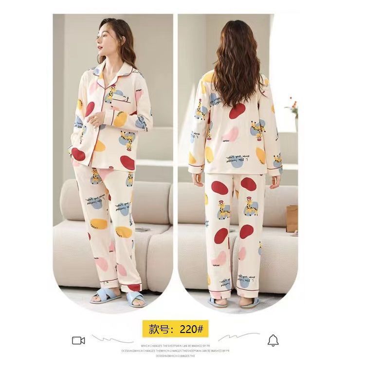 2023 Nuevo % pijamas de algodón puro para mujer de primavera y otoño con almohadilla en el pecho pantalones de manga larga de otoño traje de dos piezas de una pieza