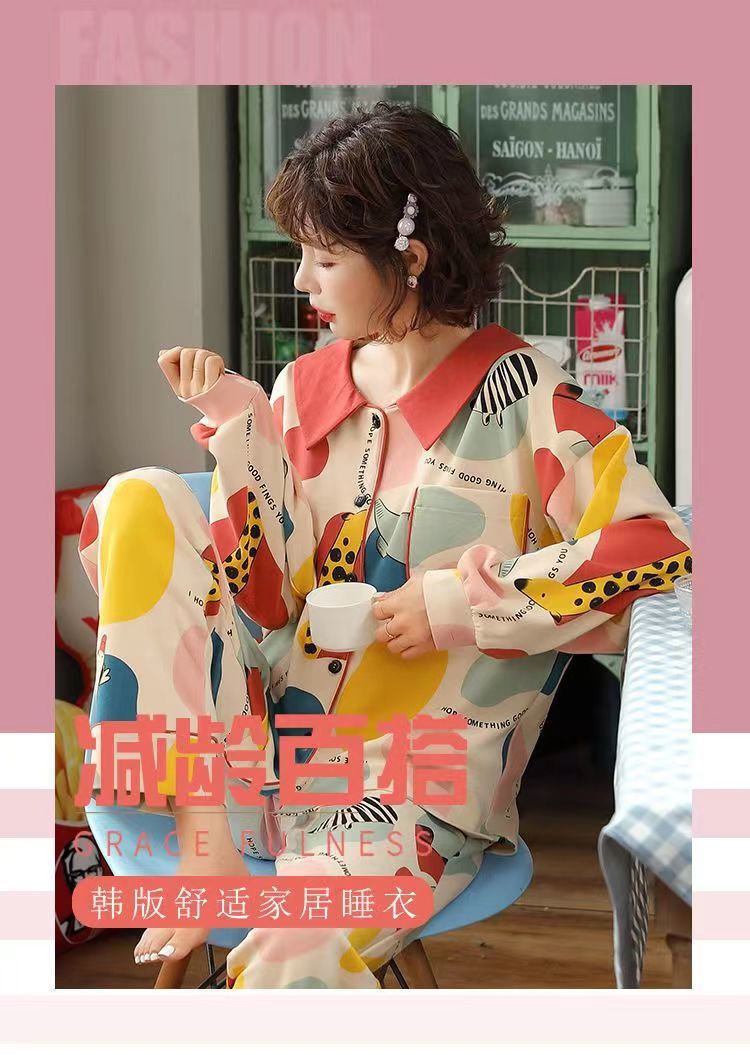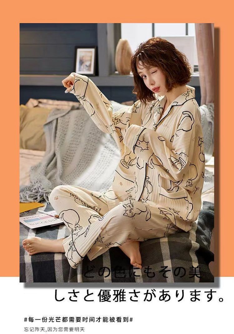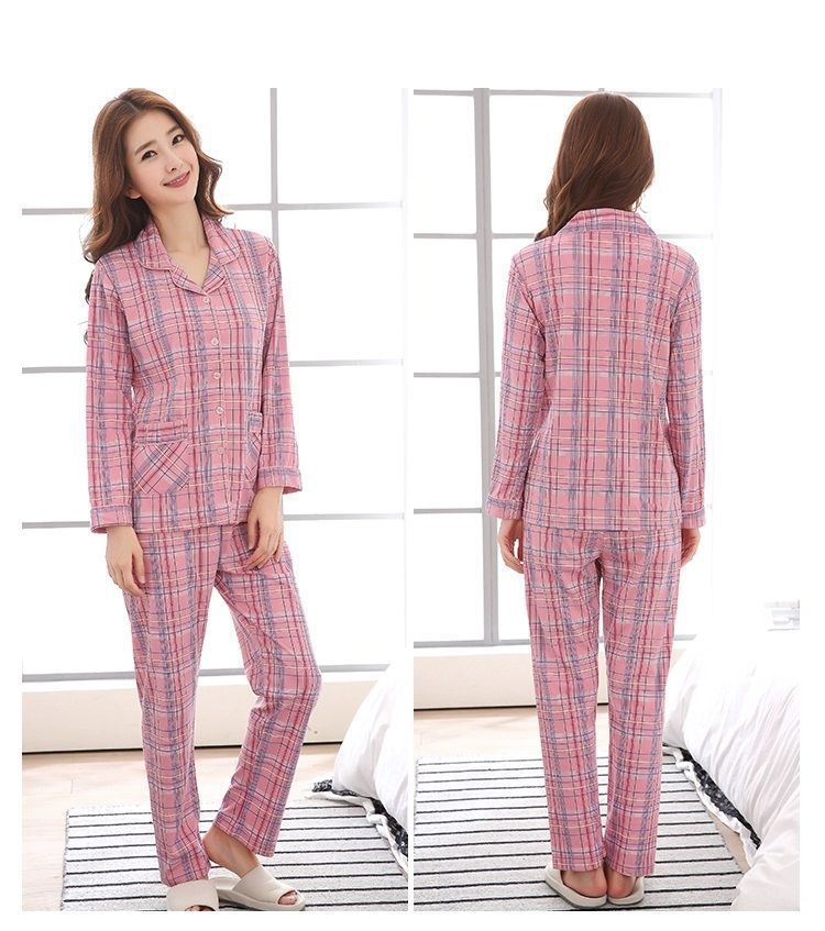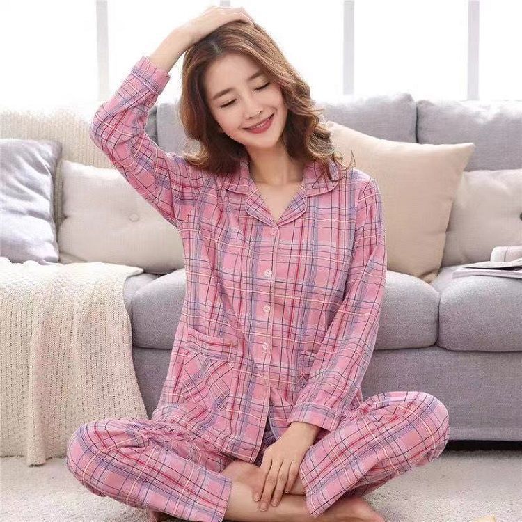 100% algodón puro pijamas de una pieza con almohadilla de pecho de primavera y otoño de las mujeres pantalones de manga larga en línea rojo nuevo estilo coreano se puede usar fuera del traje