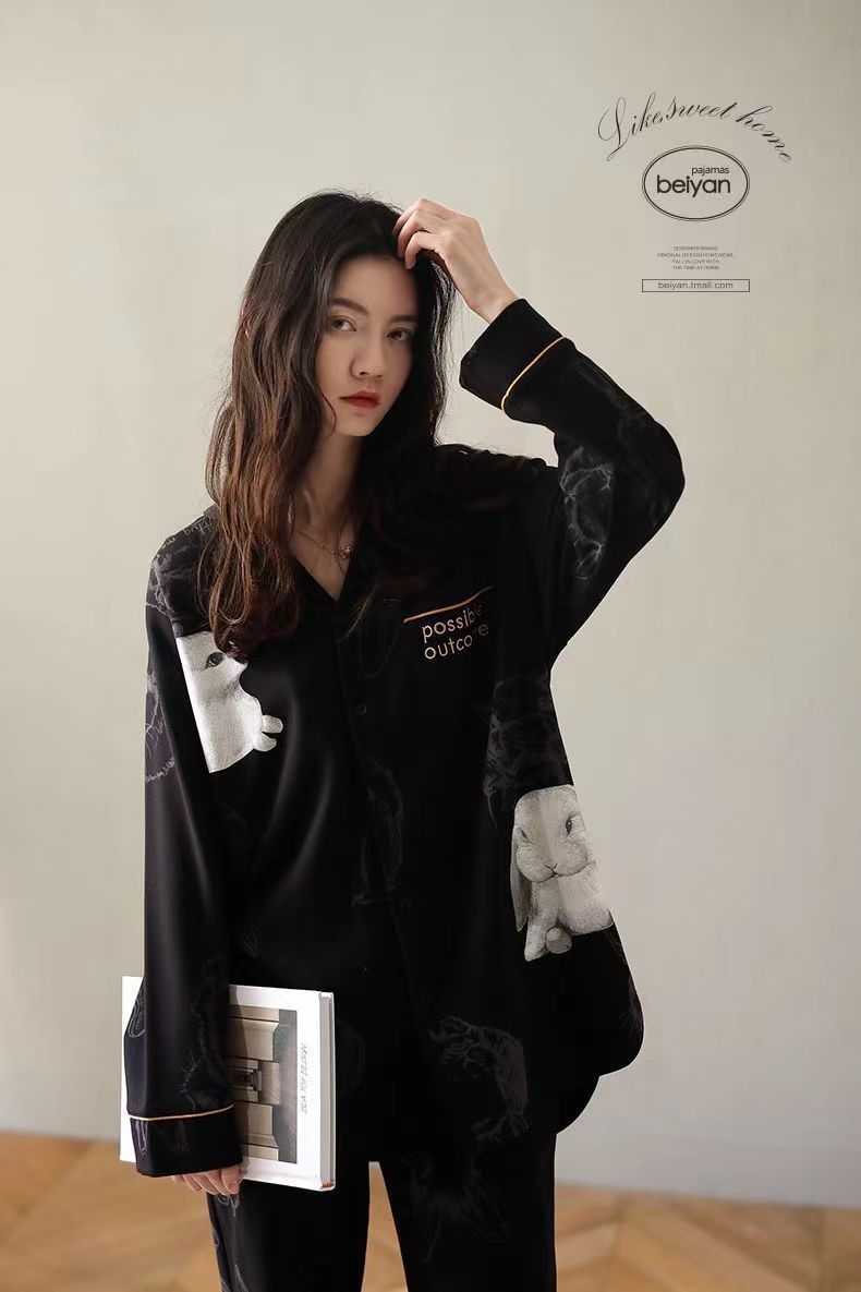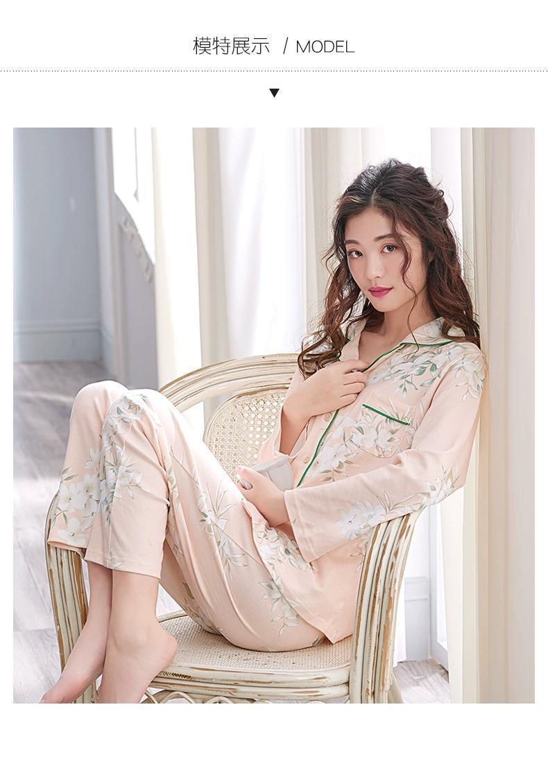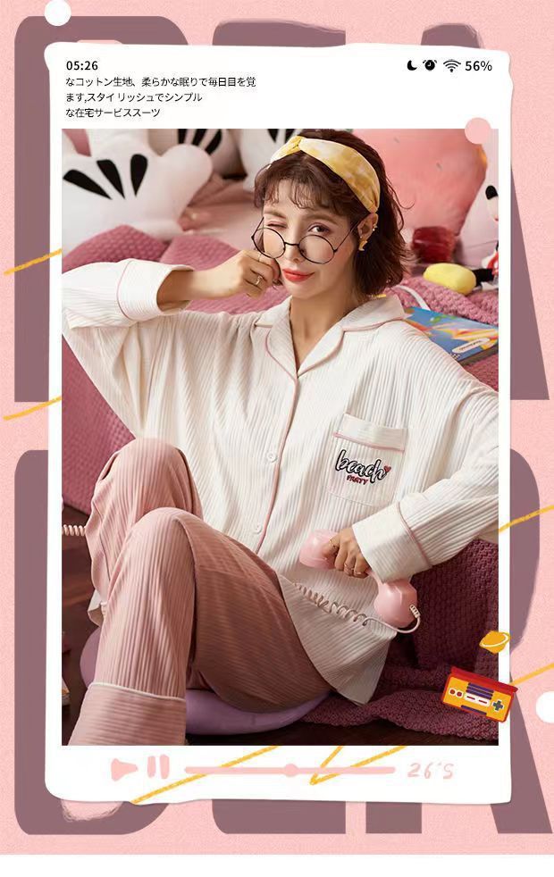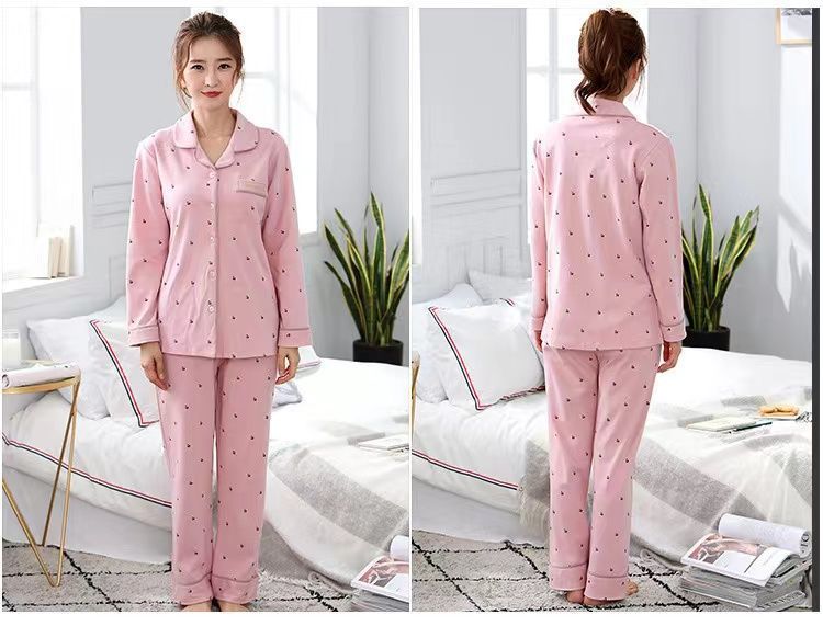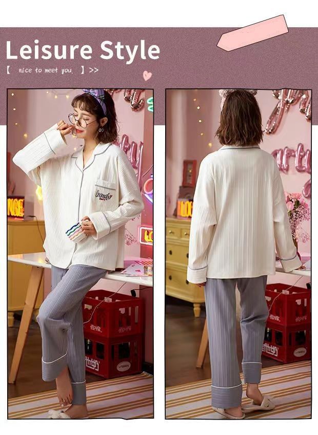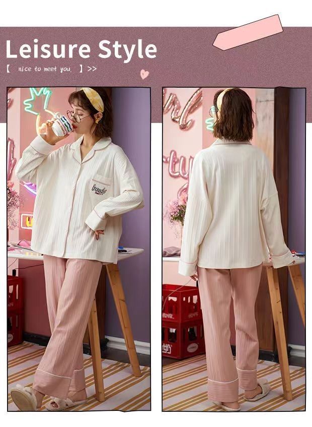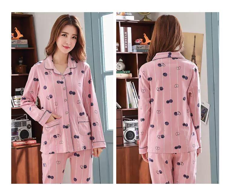 100% pijamas de algodón traje de mujer con almohadilla en el pecho Primavera y otoño pantalones de manga larga dulce simple de dibujos animados prendas de vestir exteriores homewear