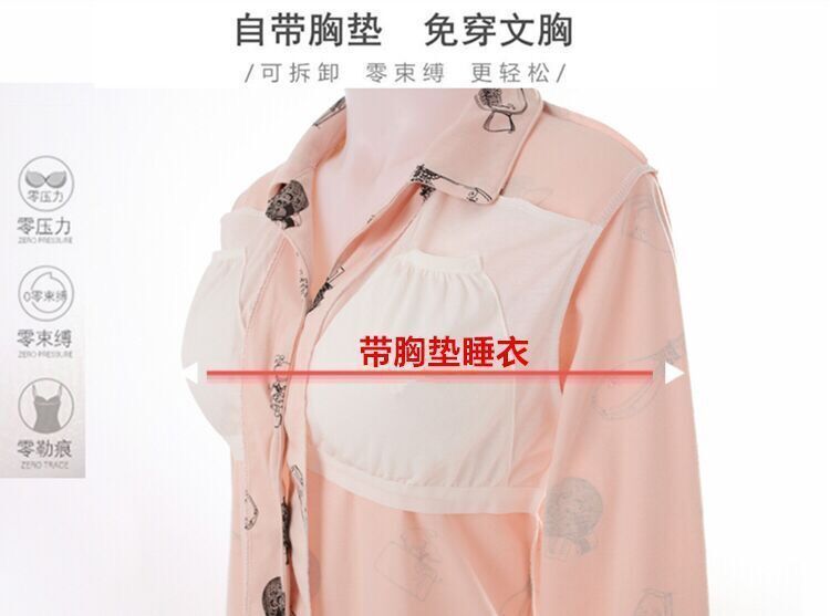 Pijamas de las mujeres con almohadilla en el pecho primavera y otoño cardigan Delgado manga larga más tamaño puro algodón 2023 nuevo estilo se puede usar fuera traje