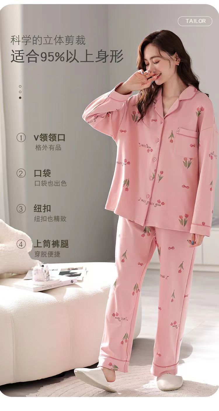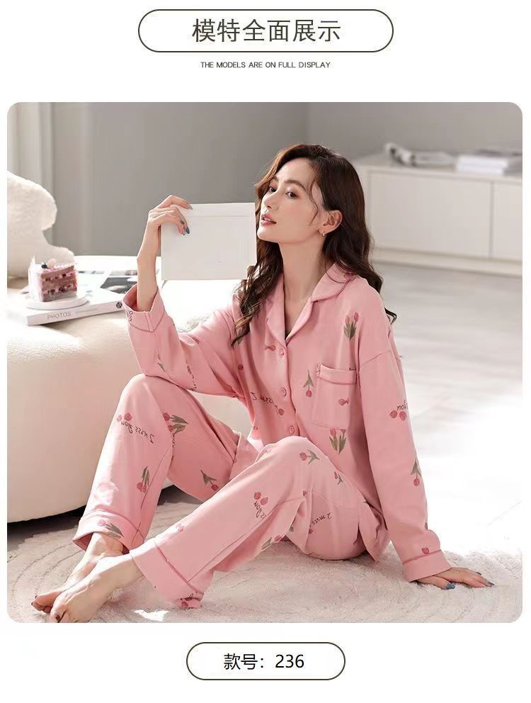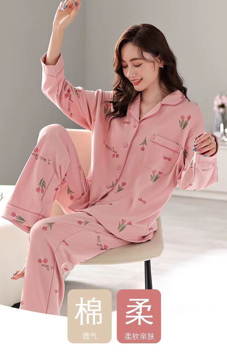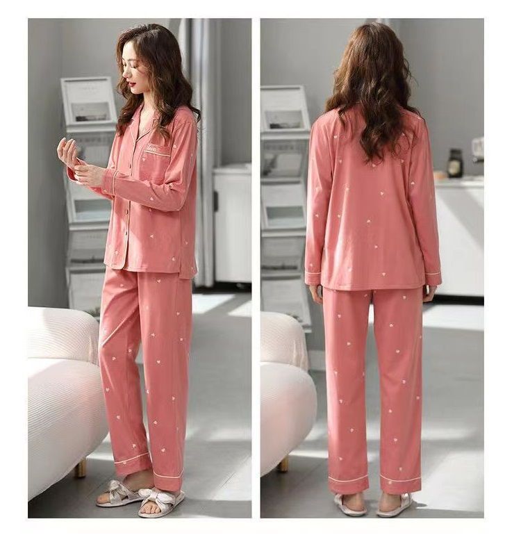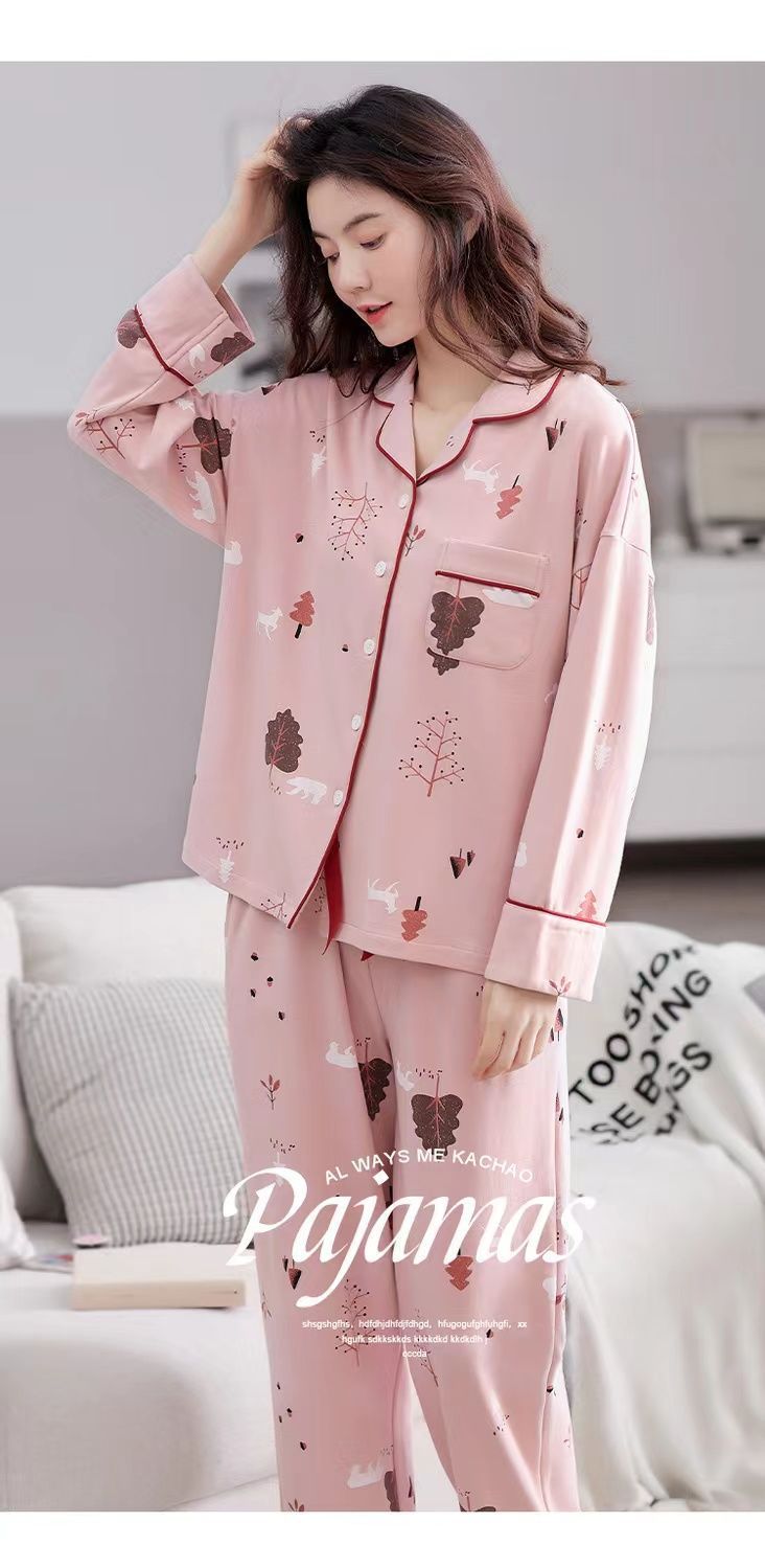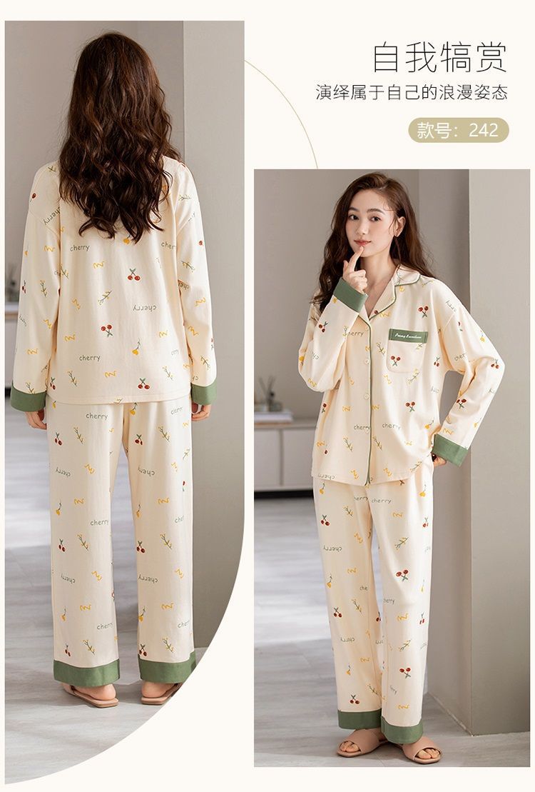 Pijamas de algodón 100% para mujer con almohadilla en el pecho, ropa para el hogar de primavera y otoño, 2023 nuevos pantalones de manga larga, conjunto de dos piezas para mamá