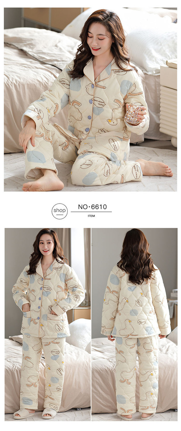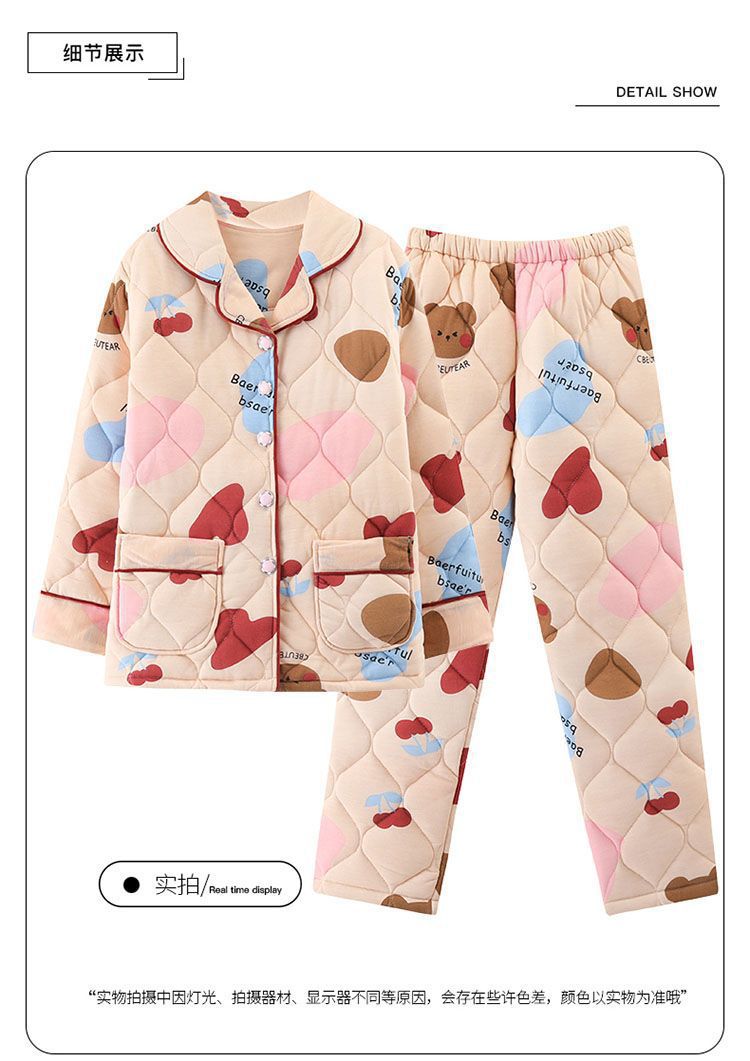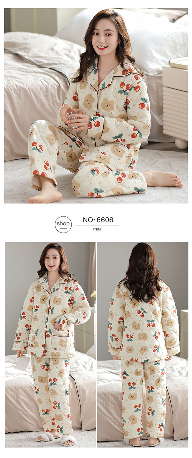 100% algodón engrosado de tres capas de las mujeres acolchadas de otoño e invierno pijamas estilo occidental simple traje de desgaste para el hogar