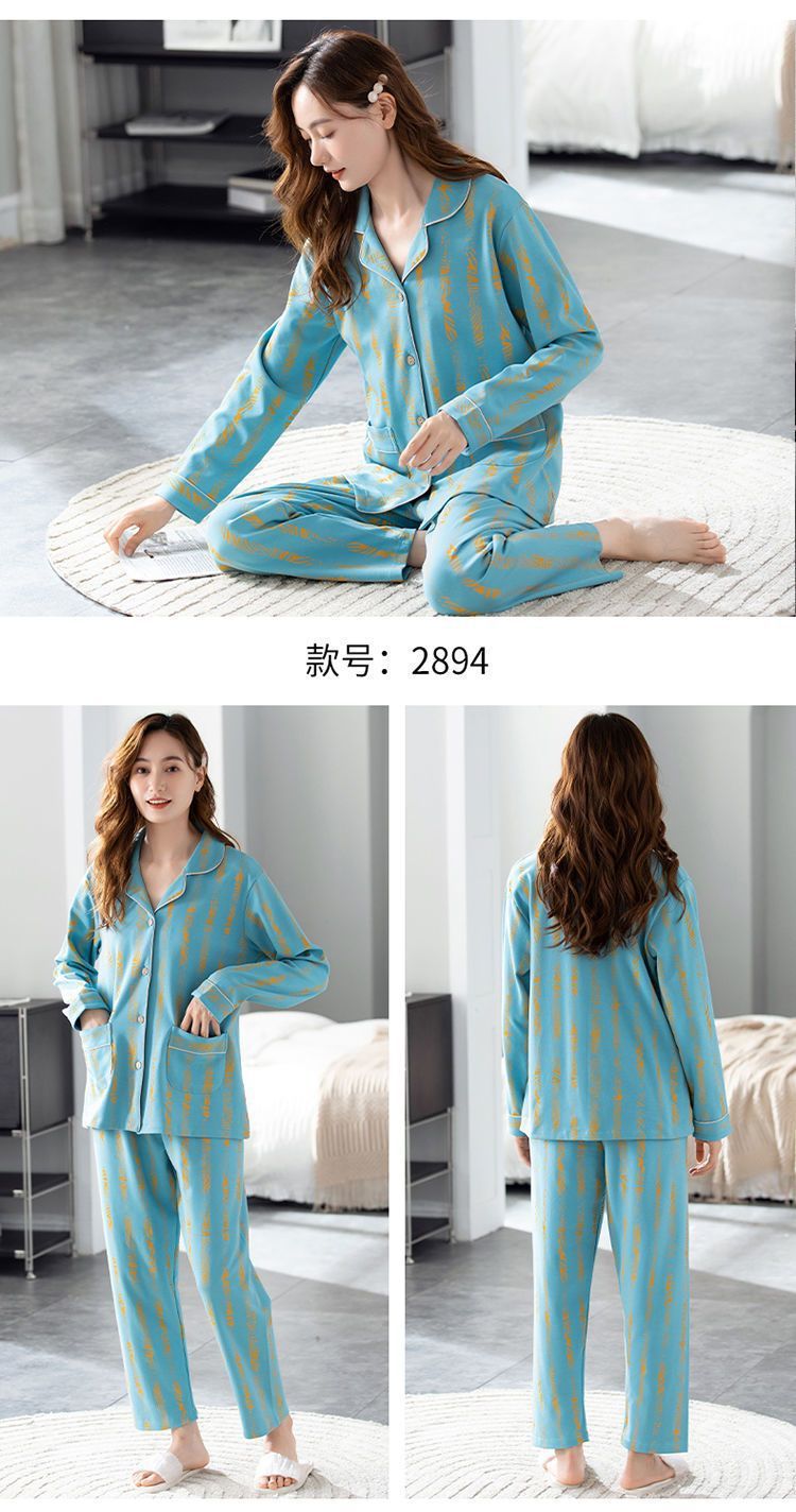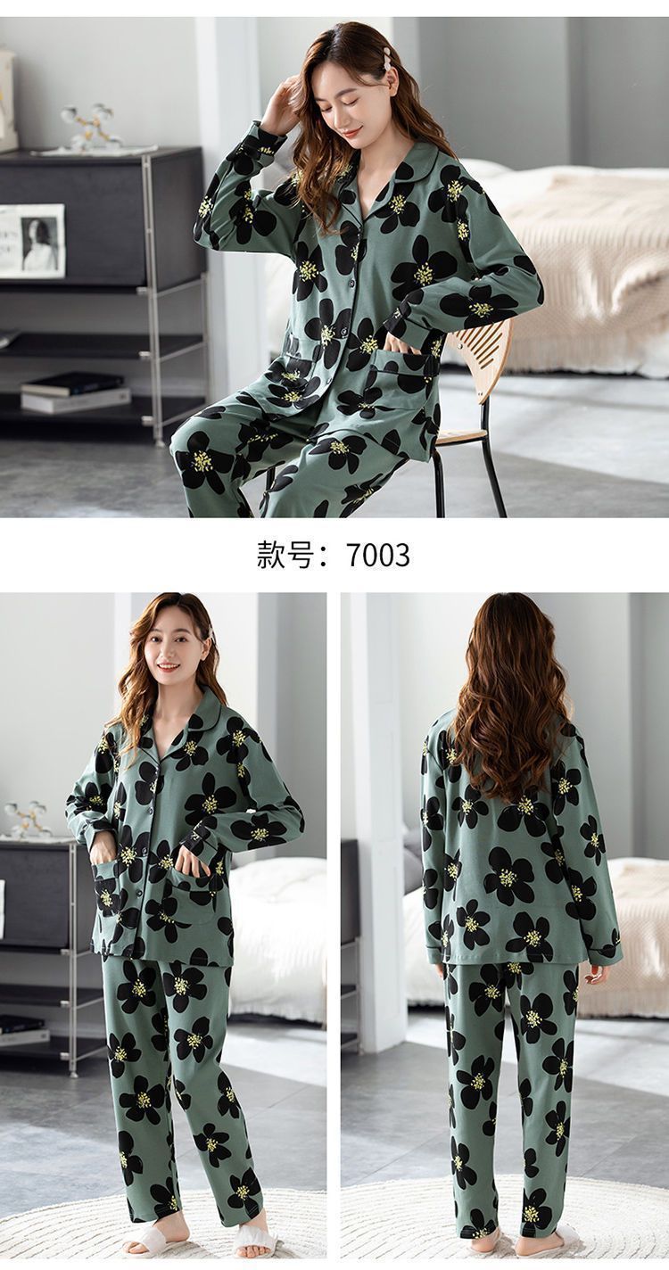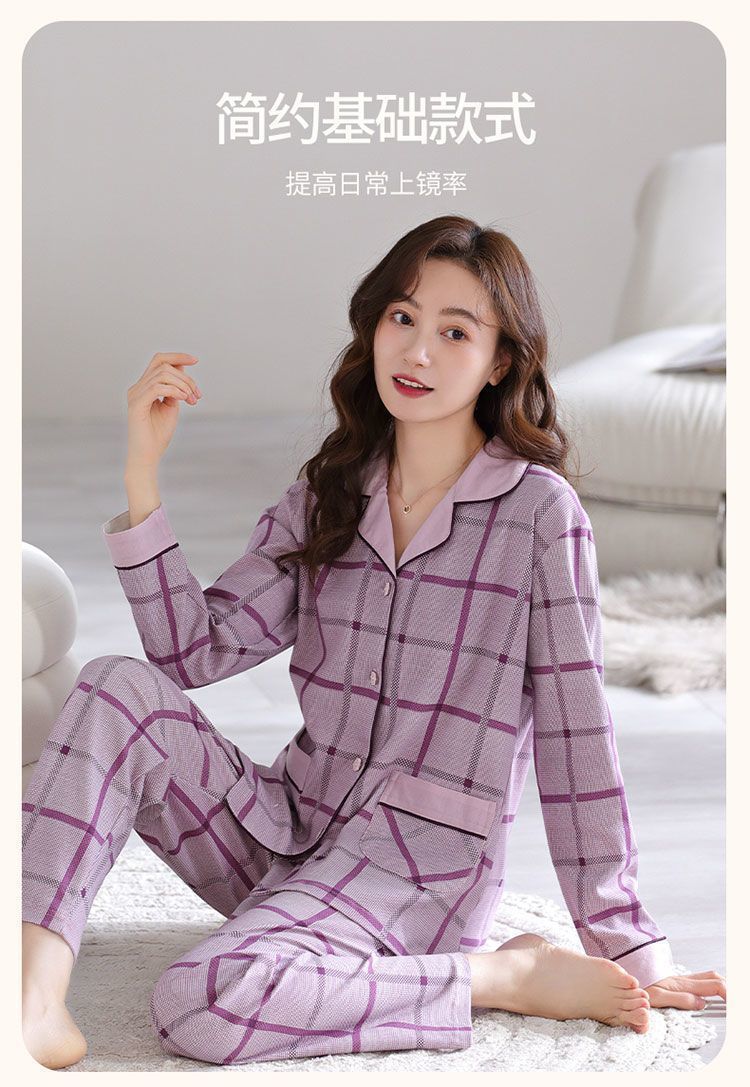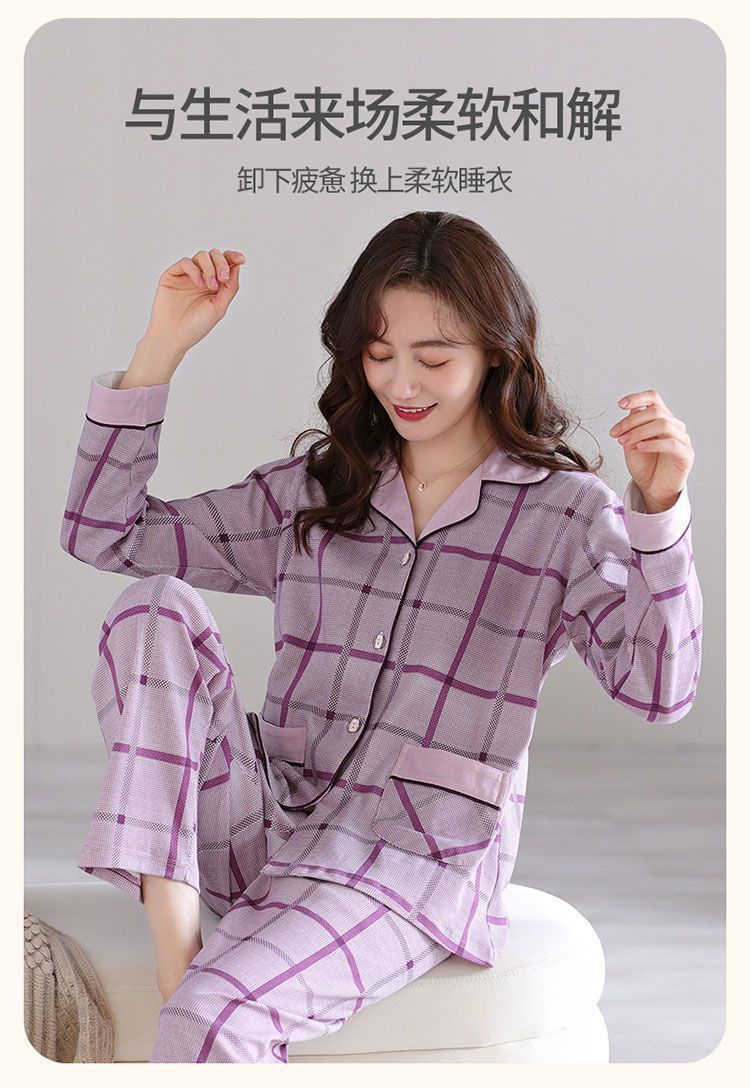 Pijamas Mujer Primavera y Otoño 2023 nuevo 100% algodón de manga larga a cuadros jóvenes y de mediana edad ropa para el hogar se puede usar fuera del traje