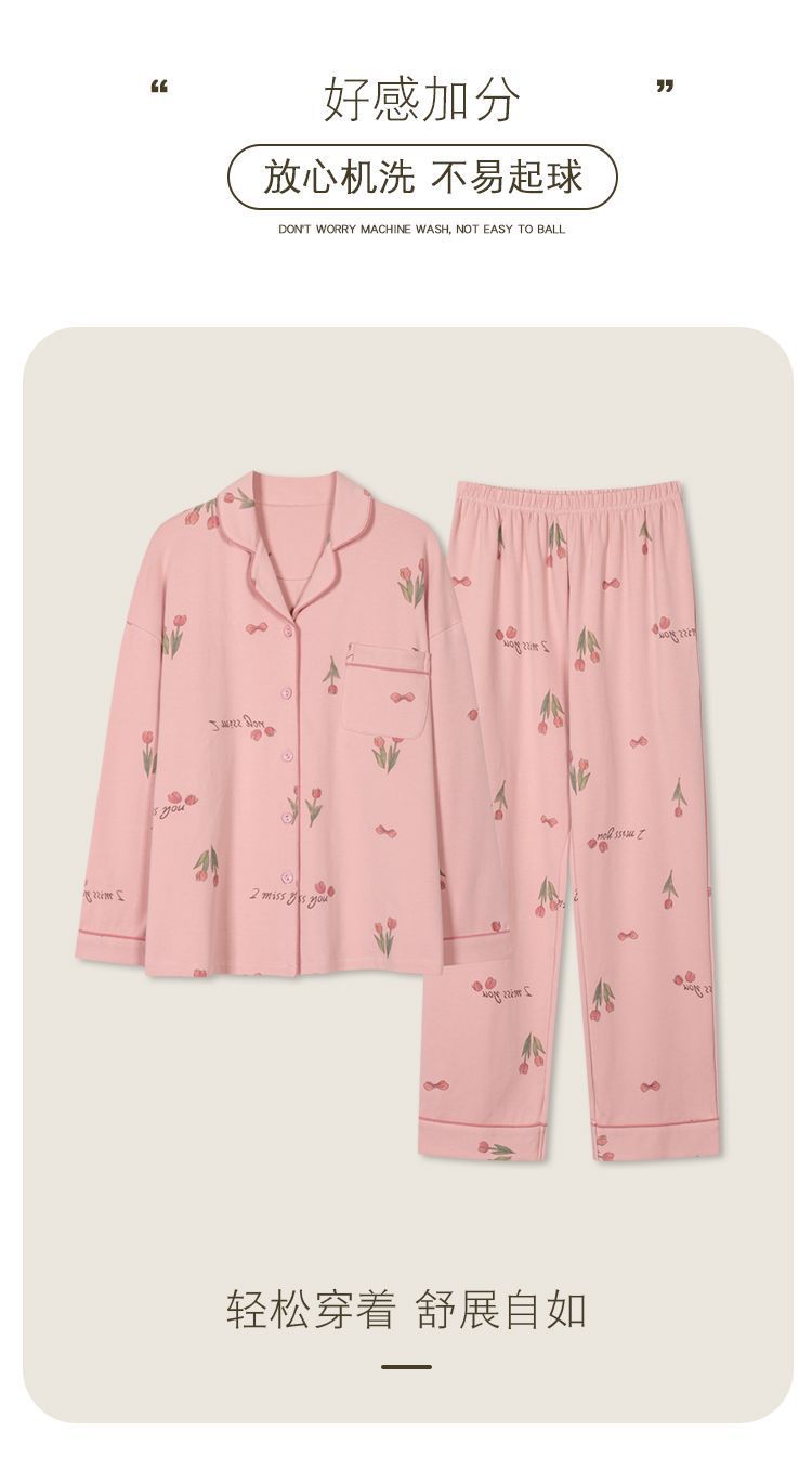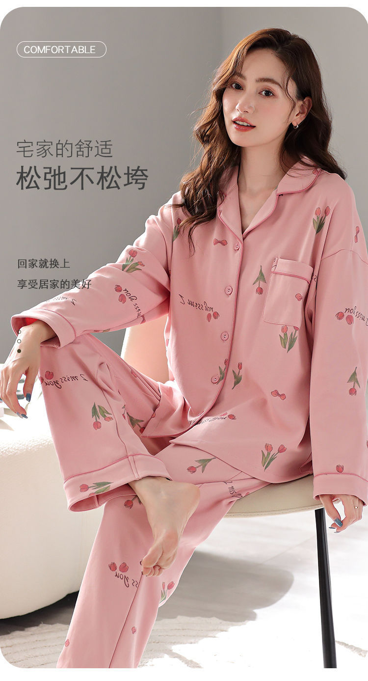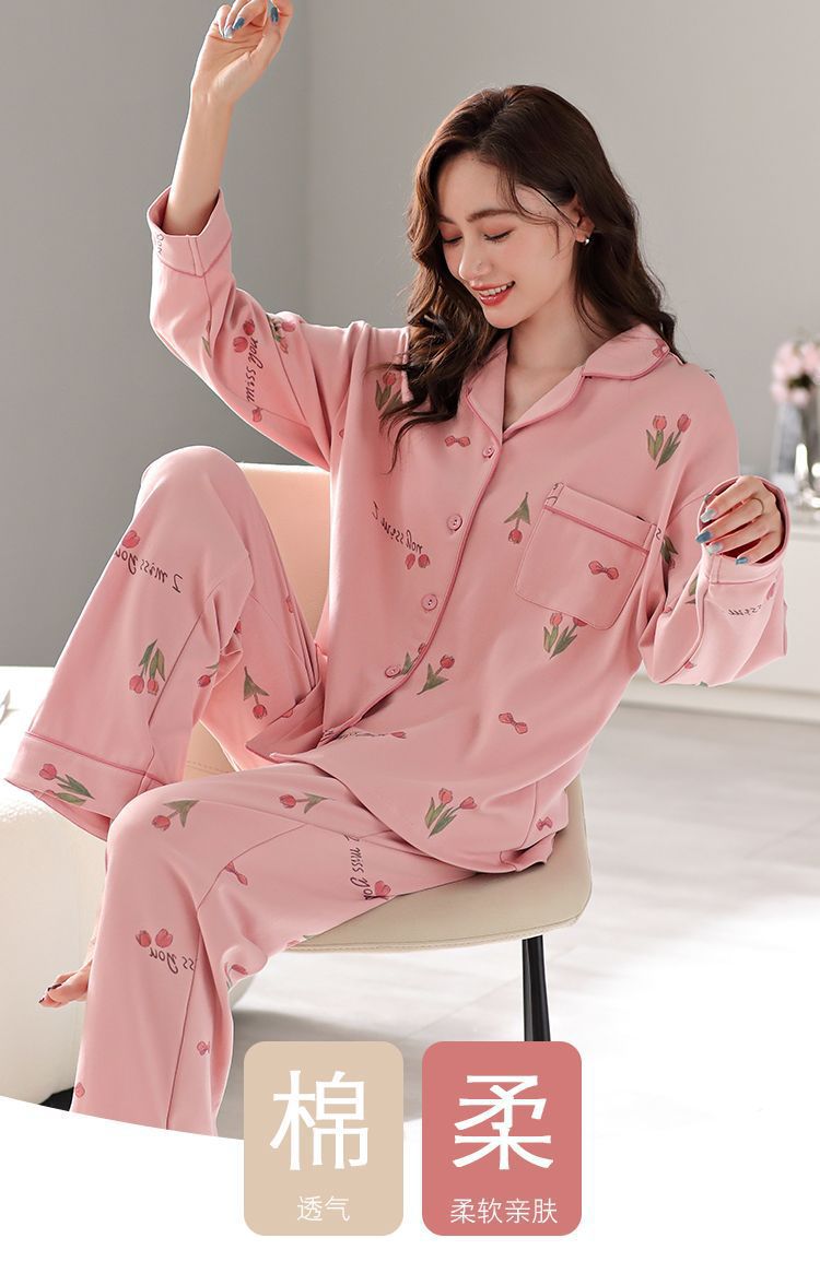 Pijamas de mujer 100% algodón primavera y otoño ropa de abrigo de manga larga ropa de hogar Verano de gran tamaño dulce traje de mamá de mediana edad