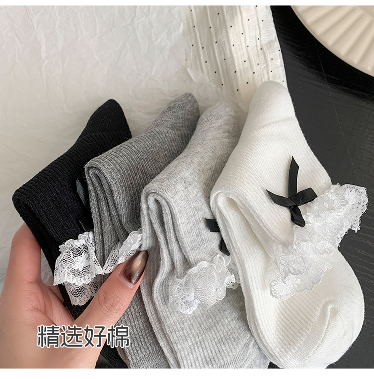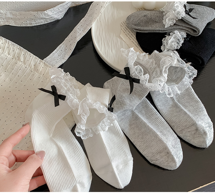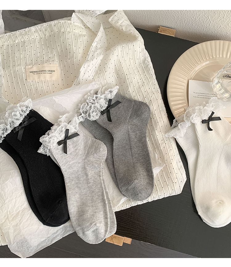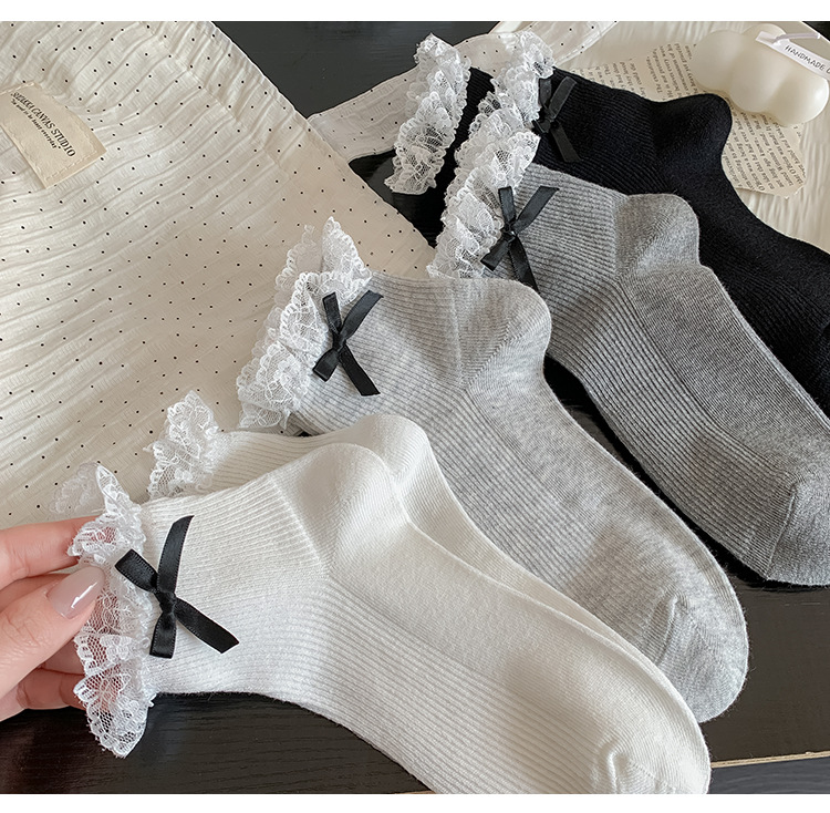 Calcetines de primavera y verano de algodón sólido, calcetines de ballet de arco, calcetines de verano delgadas y dulces al por mayor