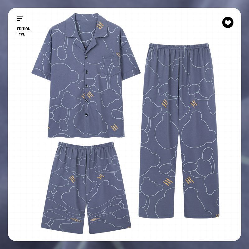 Pijamas 100% algodón de los hombres de verano Pantalones cortos de manga corta de los hombres delgados verano más tamaño homewear traje de tres piezas