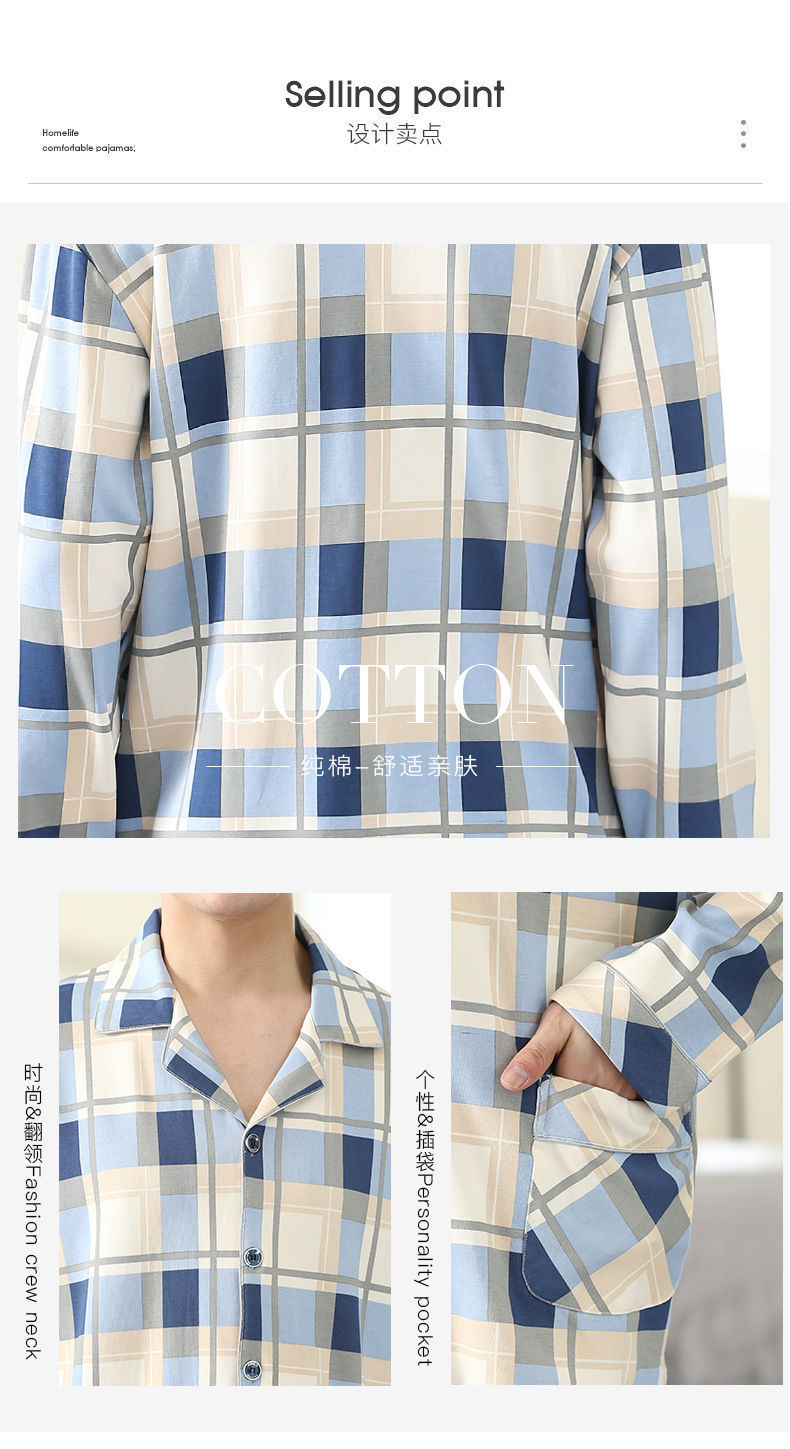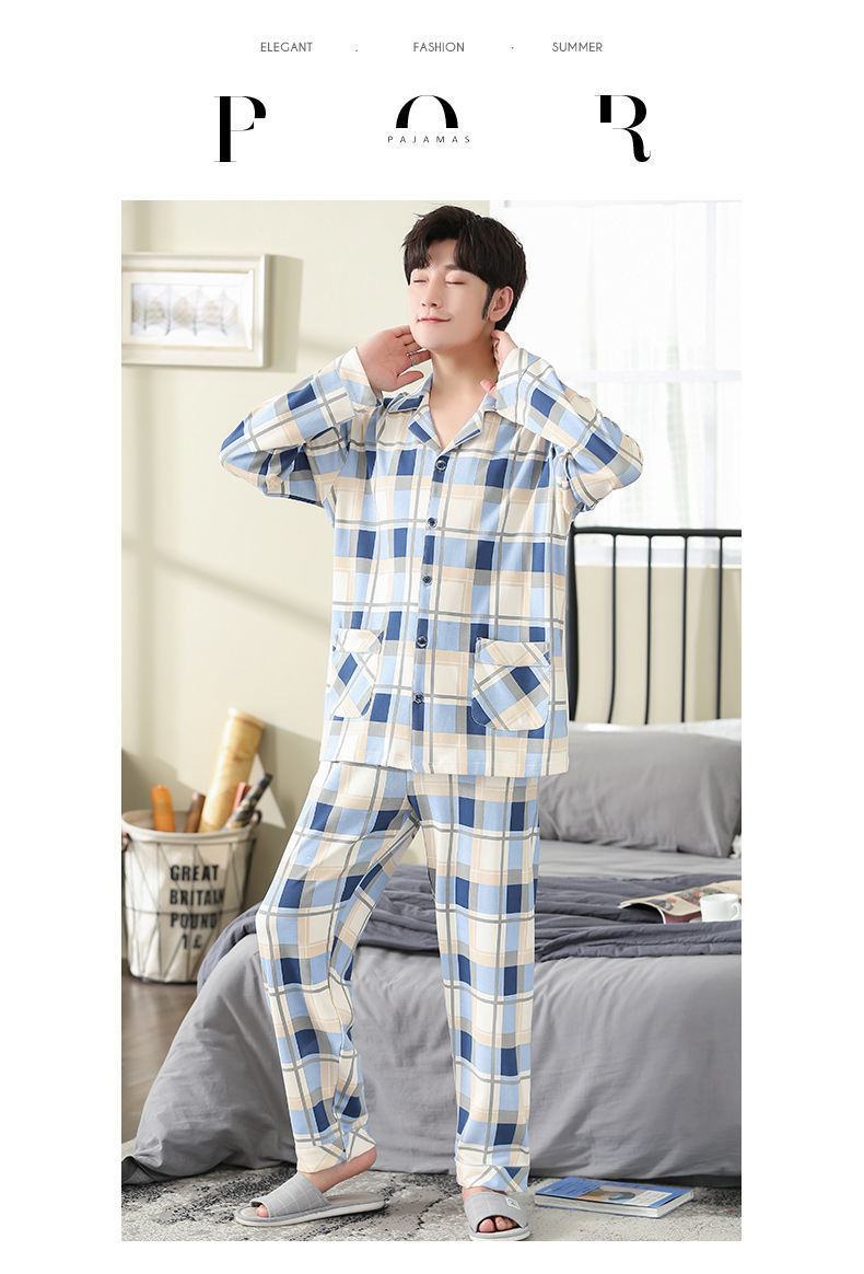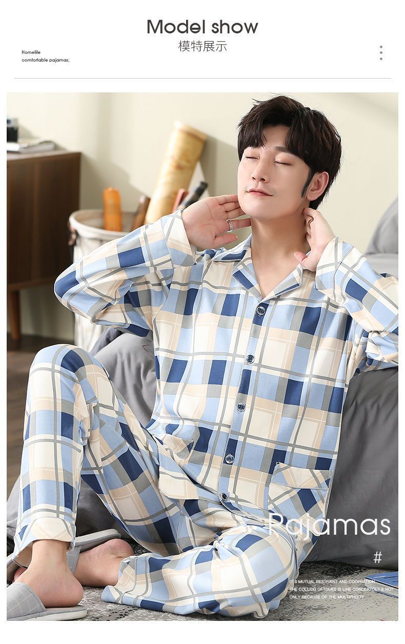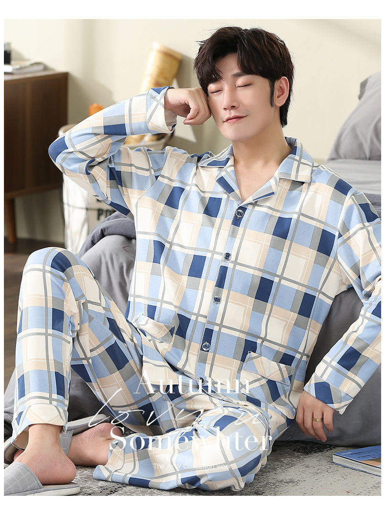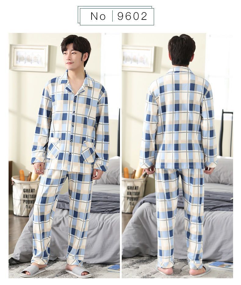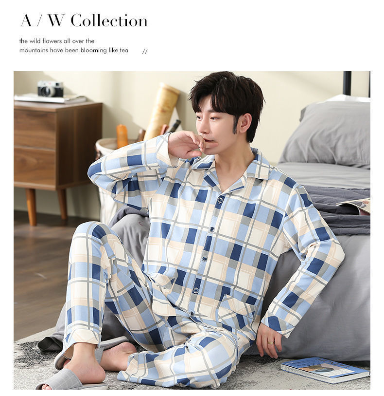 100% algodón de los hombres de doble capa pijamas de otoño e invierno de los hombres Chaqueta de punto traje ensanchado más tamaño suelto casual ropa para el hogar