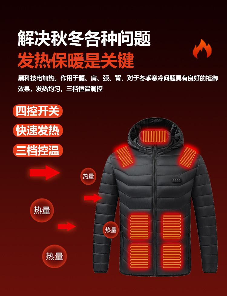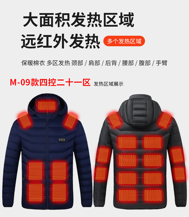 Transfronterizo de cuatro controles de calefacción ropa acolchada de algodón zona inteligente 21 calefacción chaqueta acolchada de algodón más tamaño chaqueta de calefacción ventas directas de fábrica