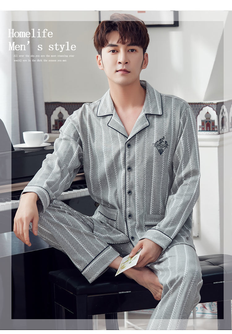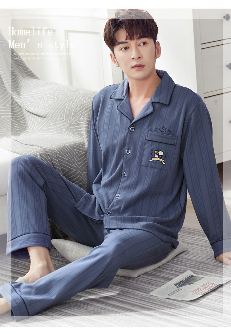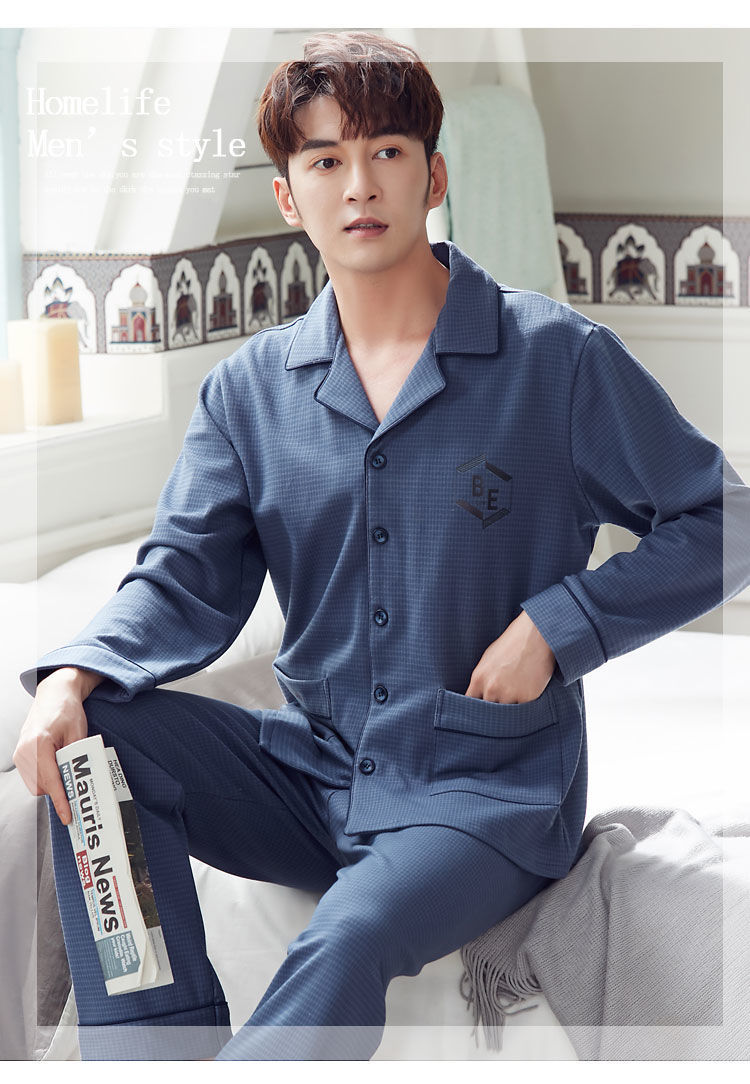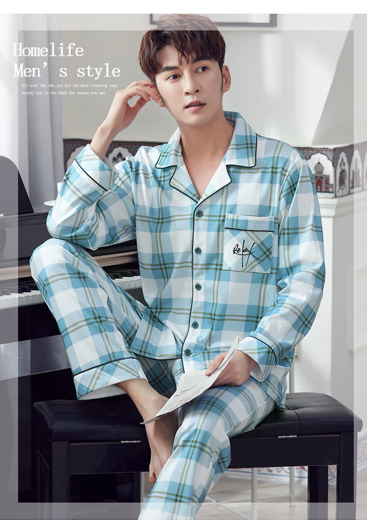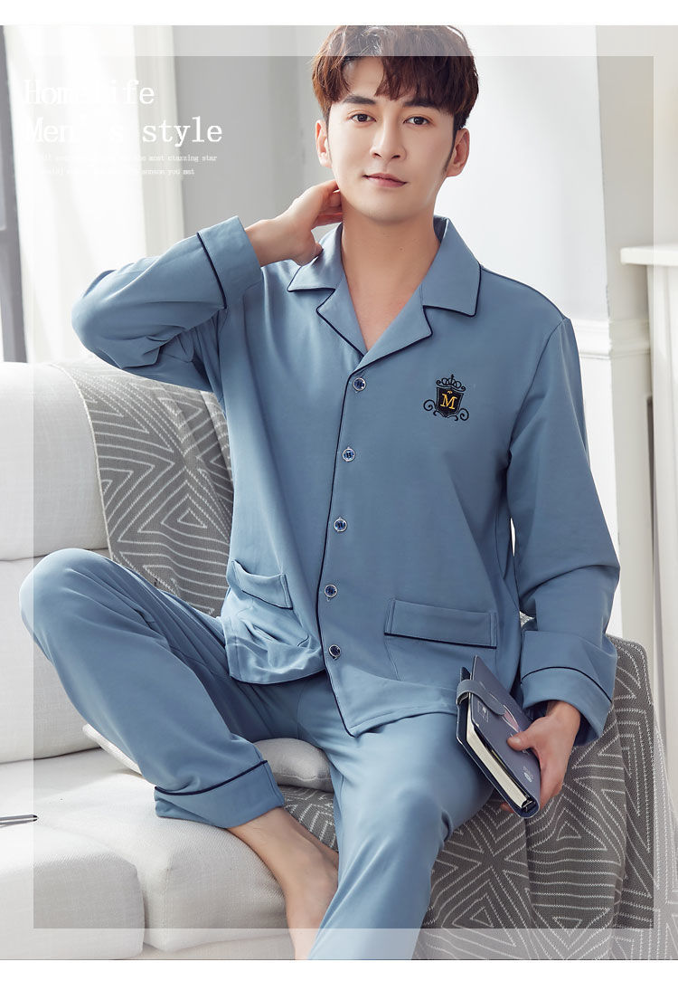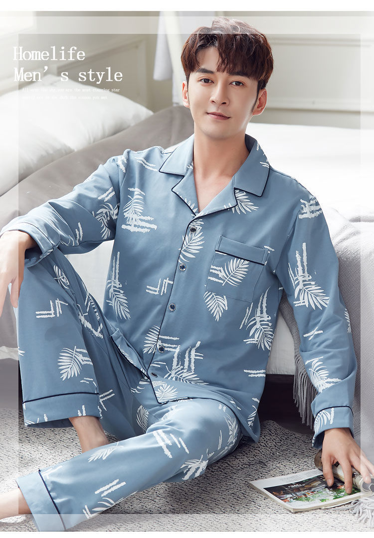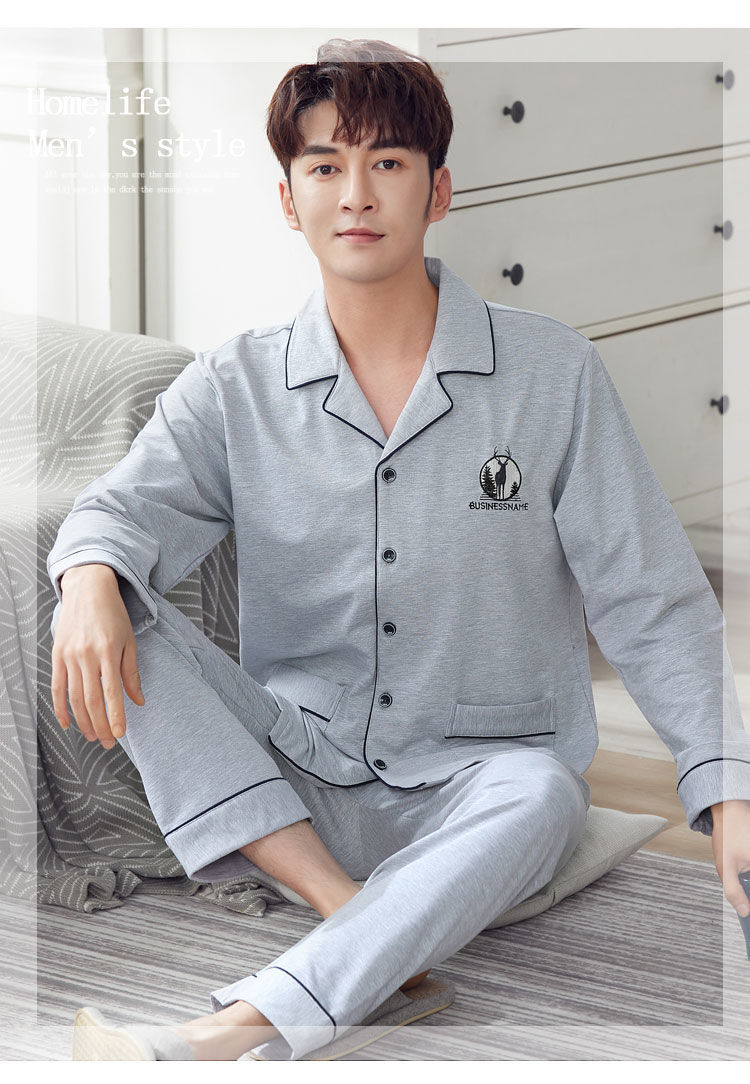 Pijamas de hombre 100% algodón de manga larga primavera y otoño pijamas de hombre joven Otoño e Invierno traje de homewear de mediados de verano