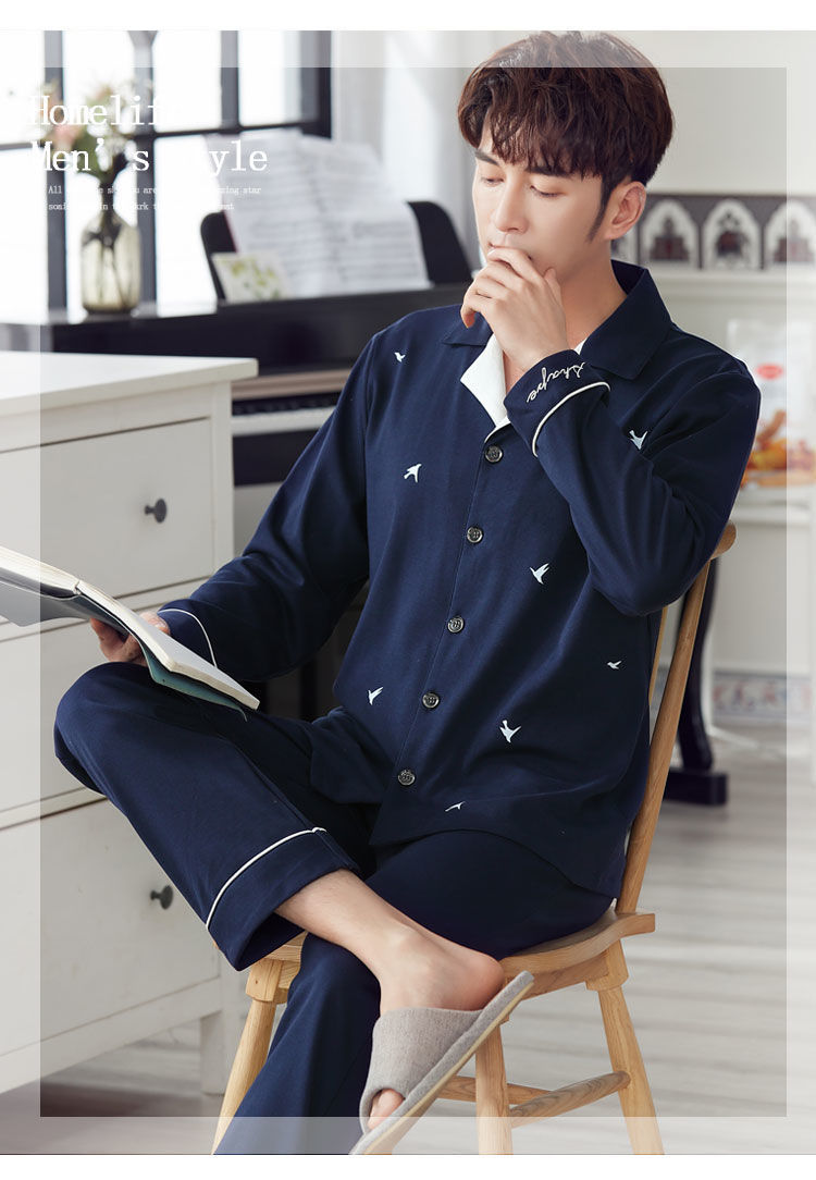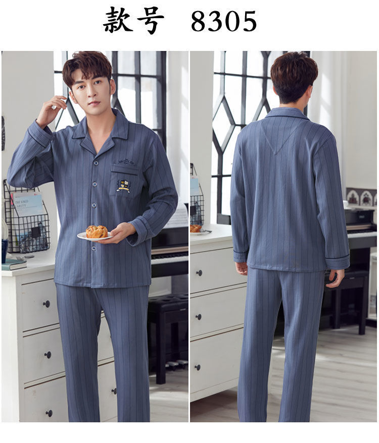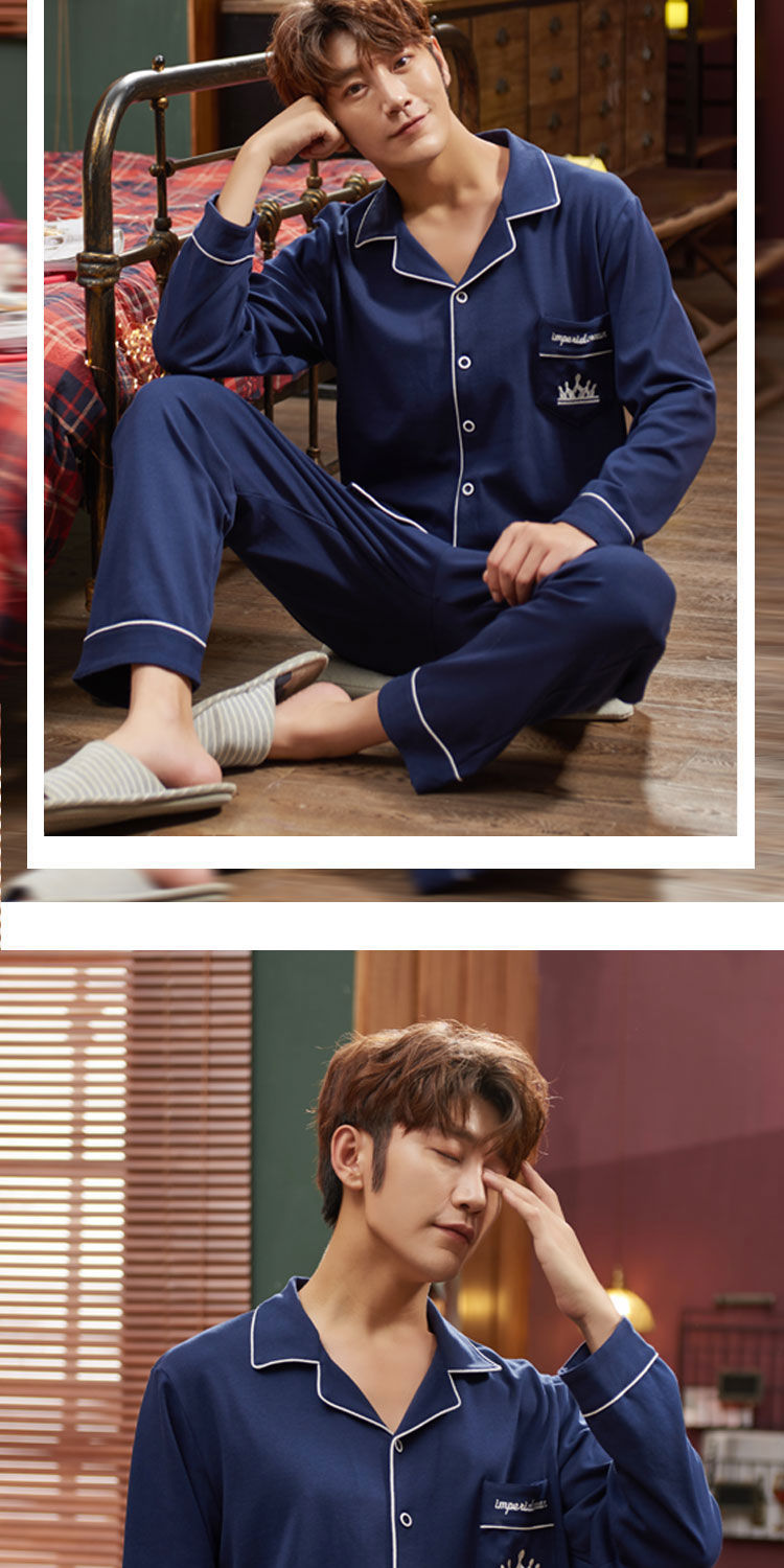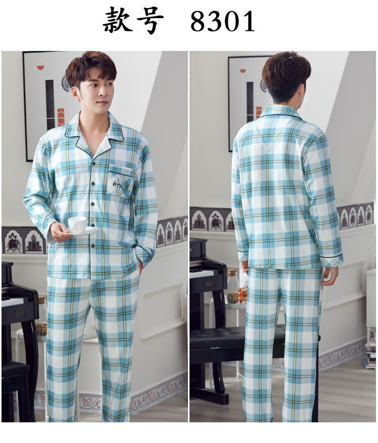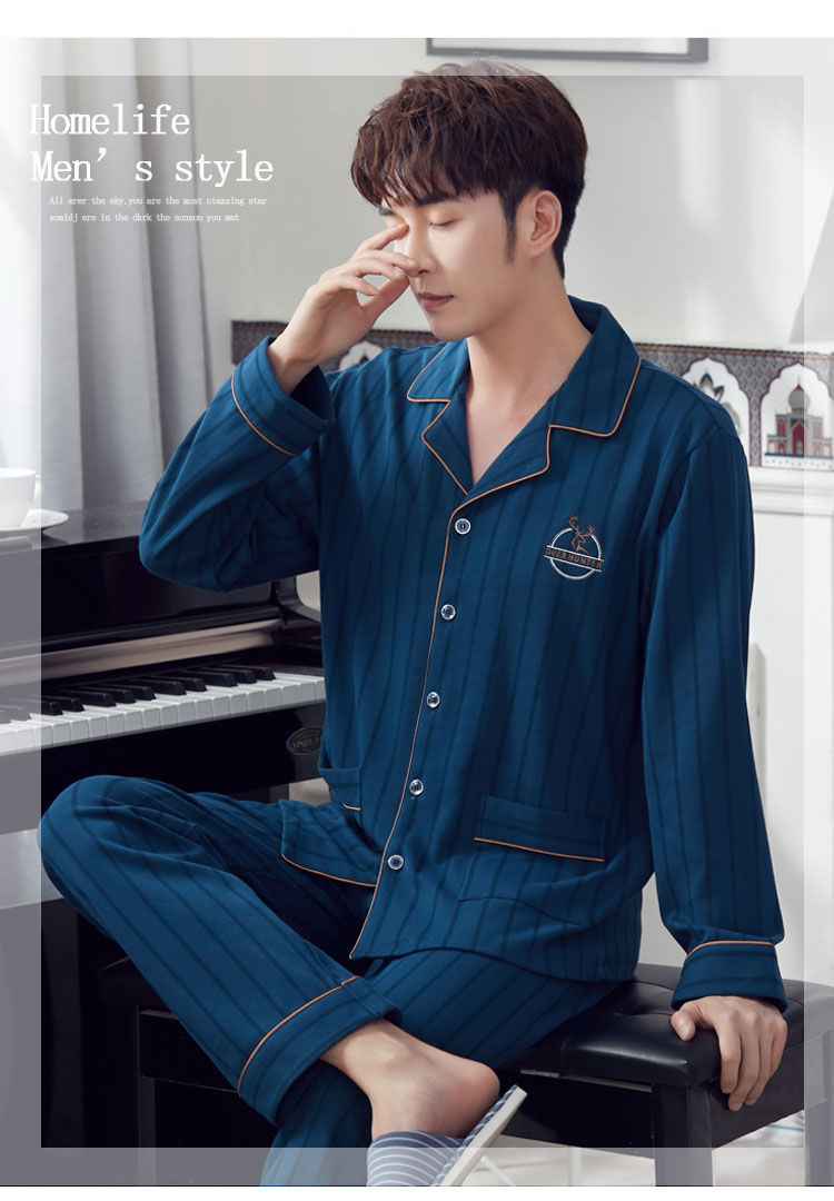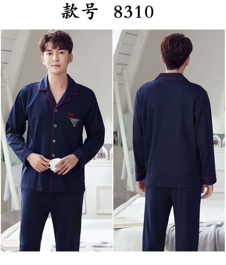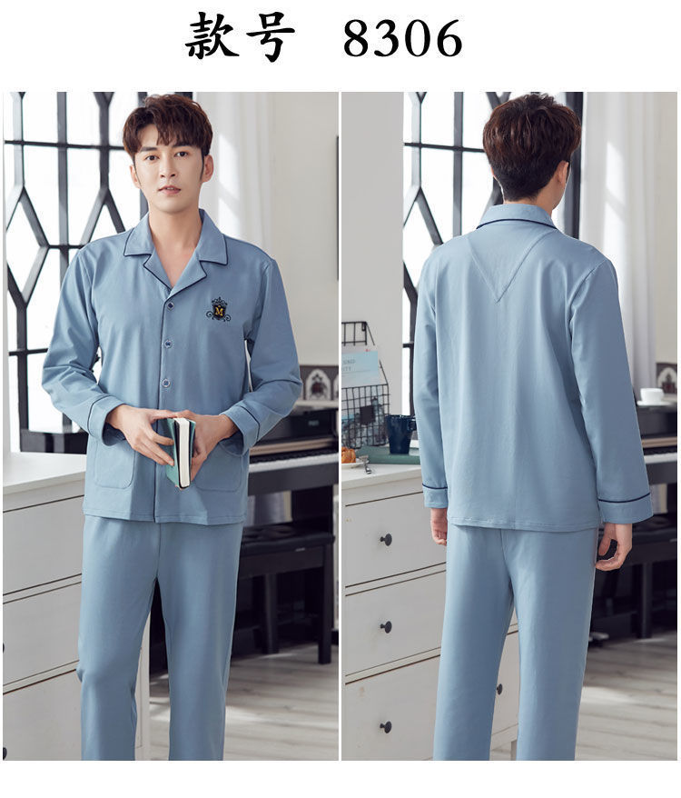 Pijamas de hombre 100% algodón de manga larga primavera y otoño pijamas de hombre joven Otoño e Invierno traje de homewear de mediados de verano