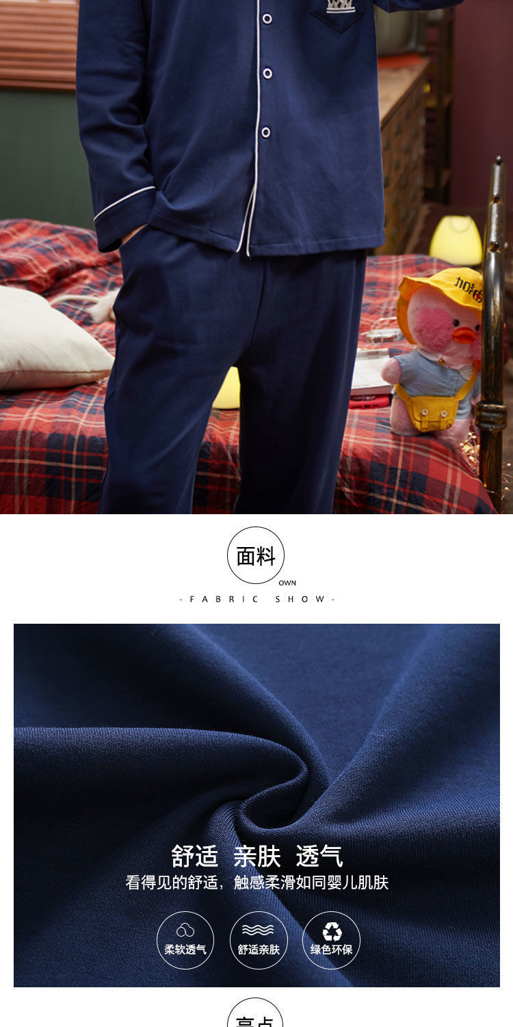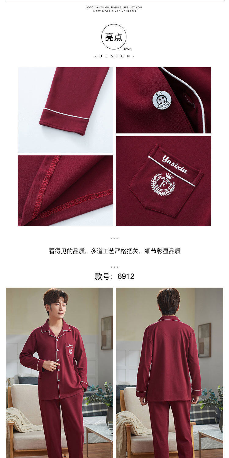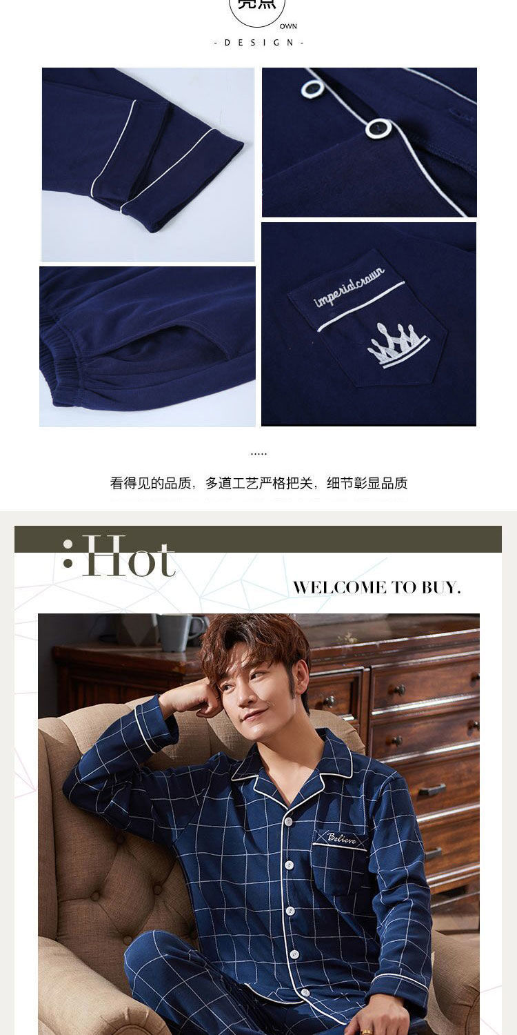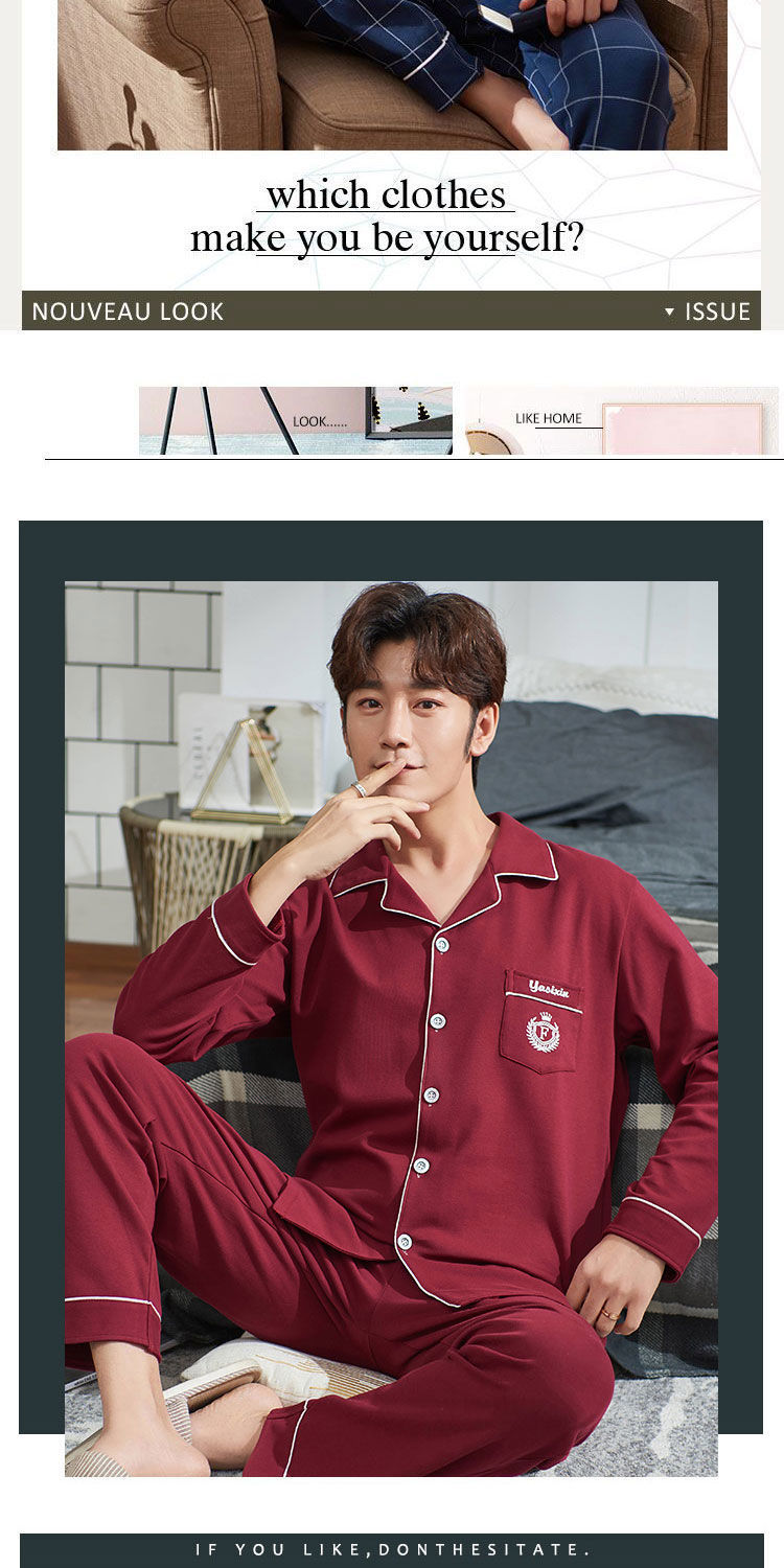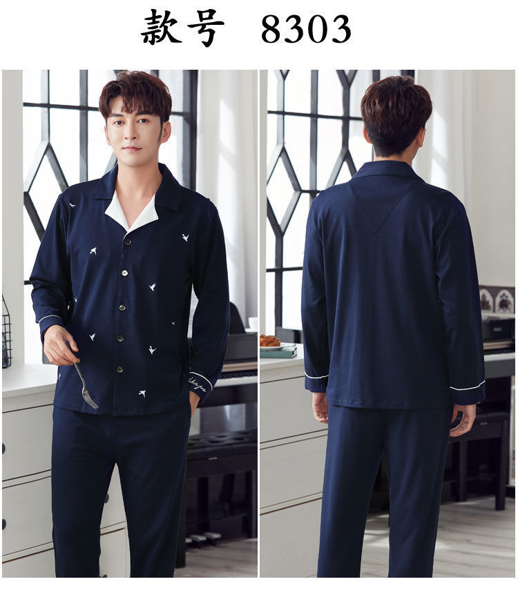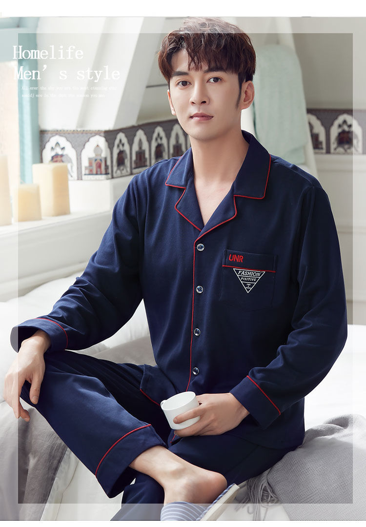 Pijamas de hombre 100% algodón de manga larga primavera y otoño pijamas de hombre joven Otoño e Invierno traje de homewear de mediados de verano