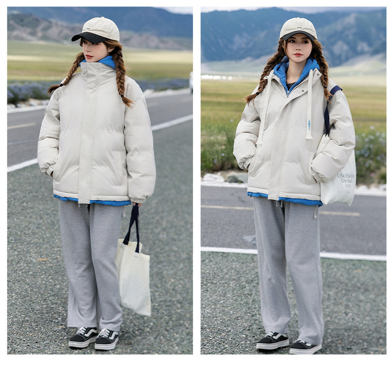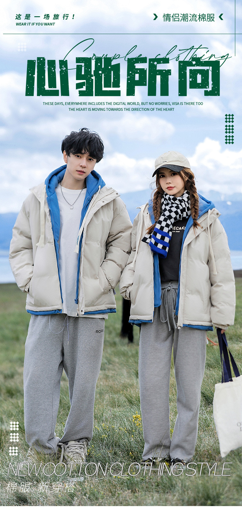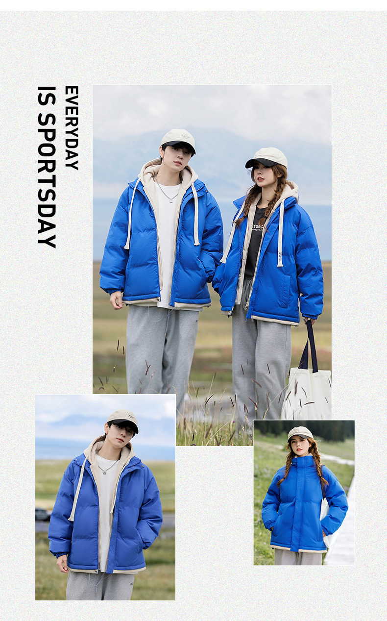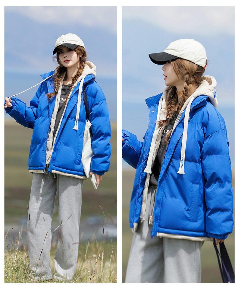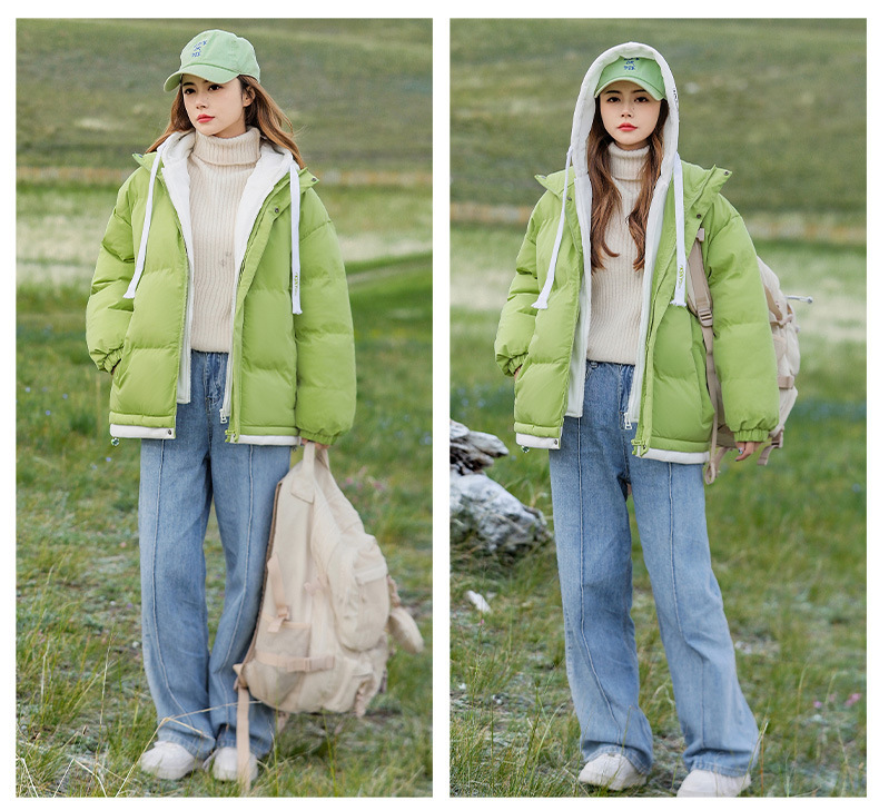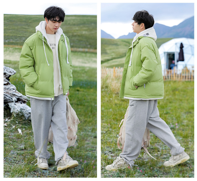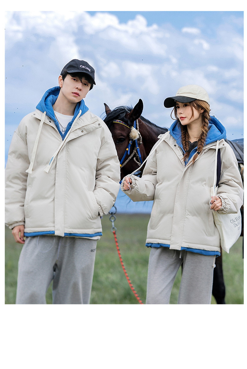 Abrigo acolchado de algodón para hombres invierno 2023 nuevo abrigo de pan con capucha de color sólido suelta pareja de moda falso Abrigo acolchado de algodón de dos piezas