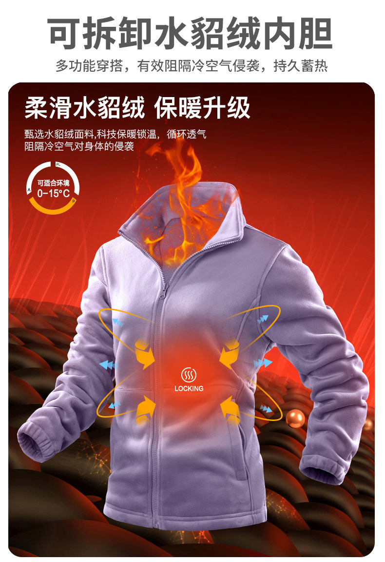Chaqueta de pareja al aire libre de los hombres y las mujeres forrado de lana tres en uno desmontable de dos piezas a prueba de frío traje de Montañismo