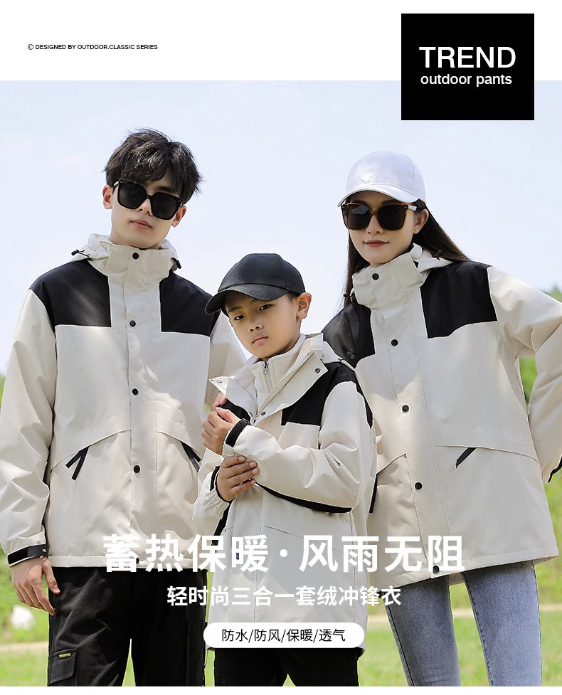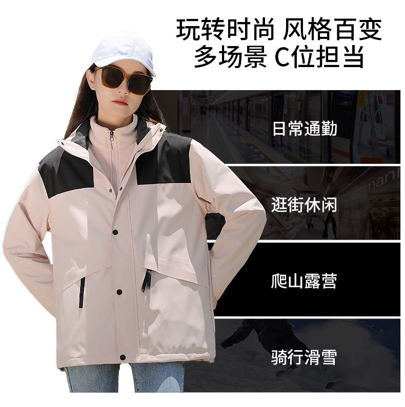 Chaqueta al aire libre para hombres y mujeres tres en uno desmontable de dos piezas impermeable y transpirable forrado de vellón engrosado traje de Montañismo senderismo